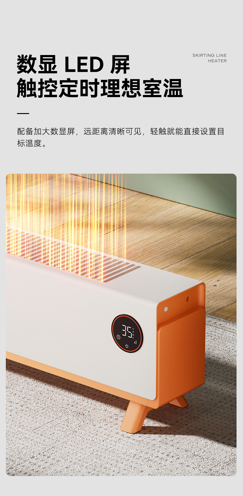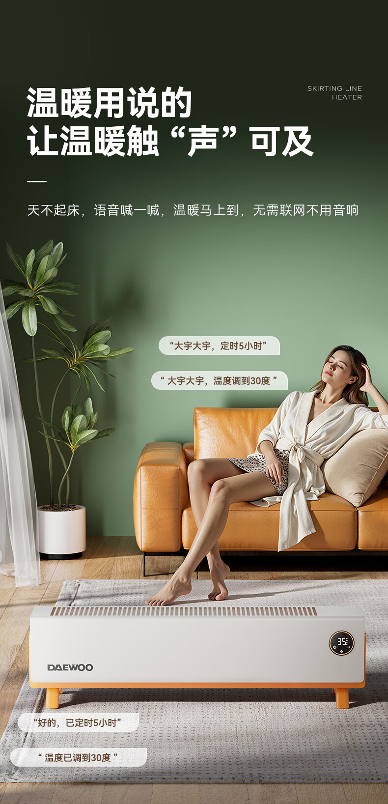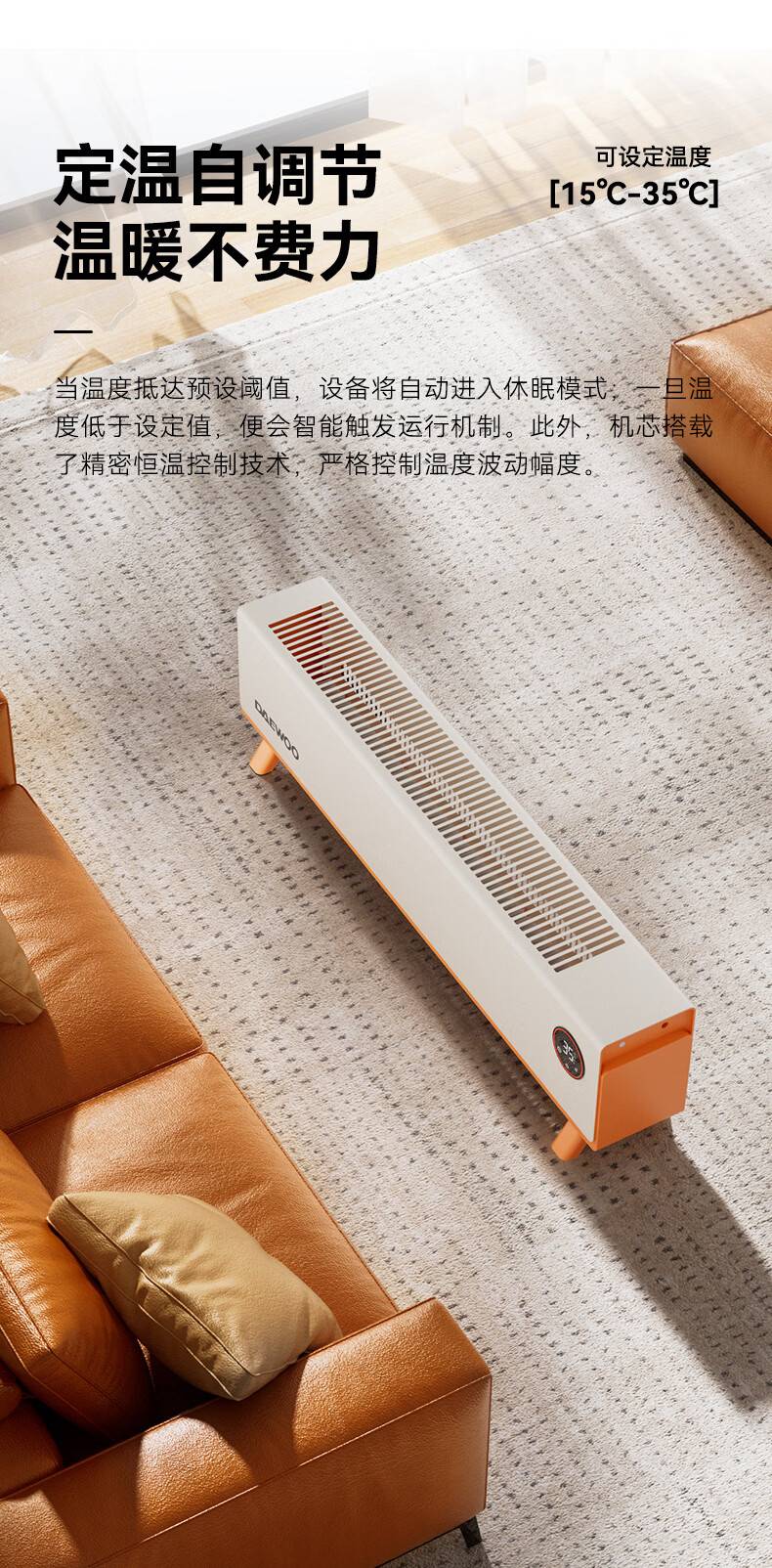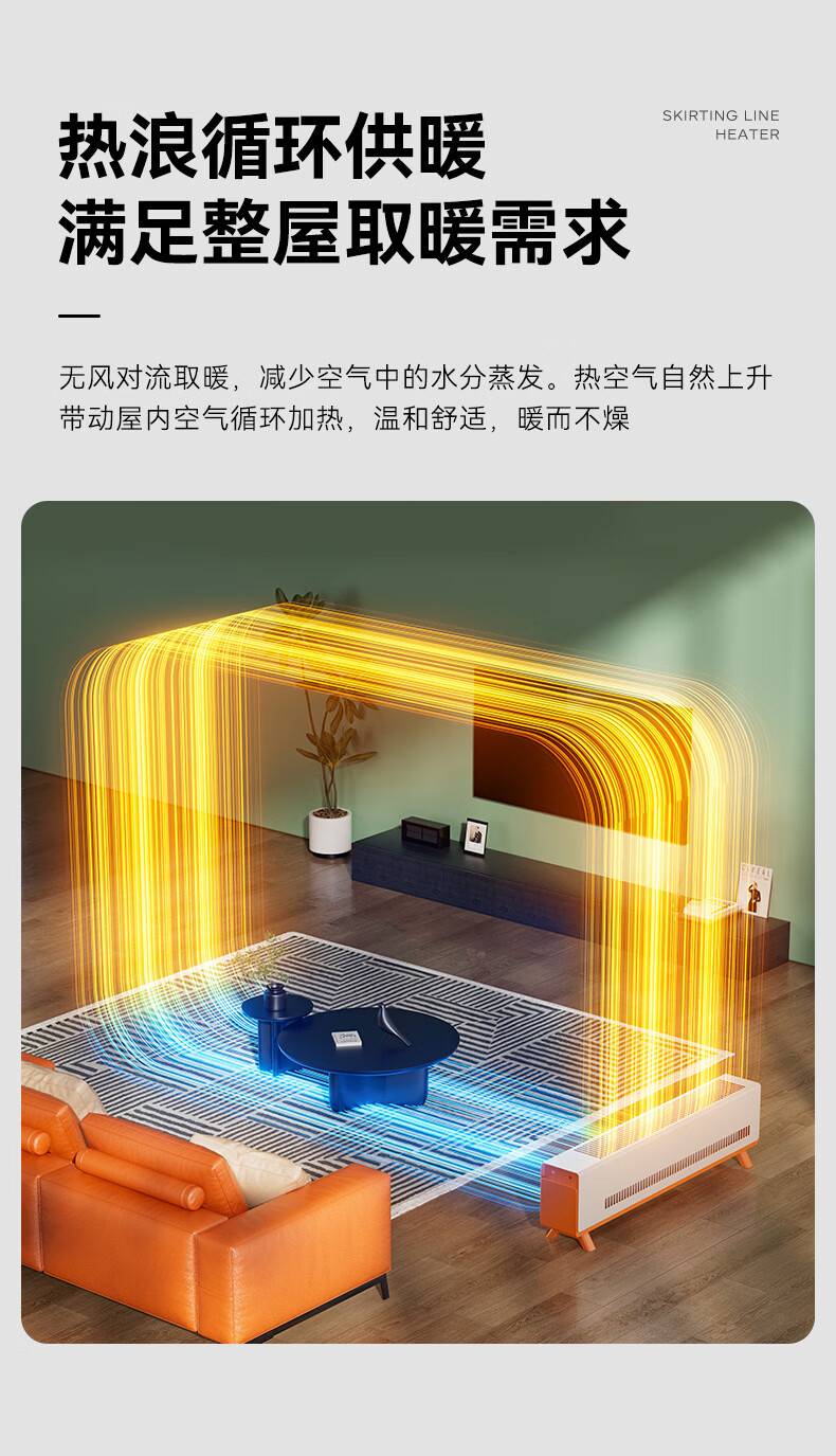 DAEWOO大宇踢脚线取暖器电热家用电暖气大面积速热暖风取暖炉石墨烯升温地暖智能恒温浴室卧室防水50平 【年度新品】石墨烯智能温控,轻音节能