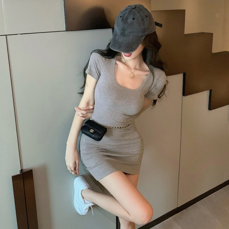 【优选好物】纯欲性感紧身辣妹连衣裙女装夏季2024年新款短裙粉色 灰色 (1条装) 均码