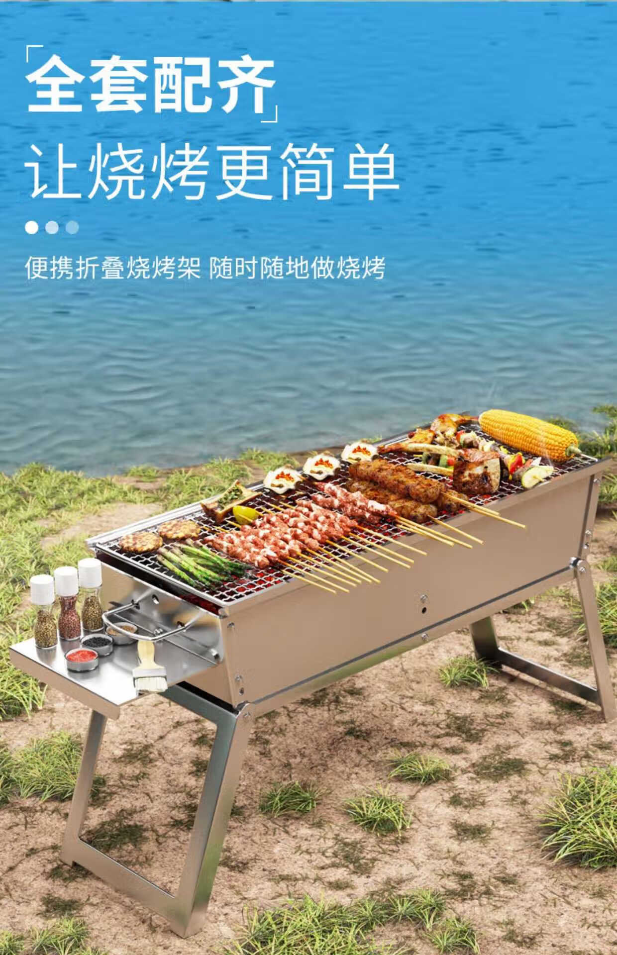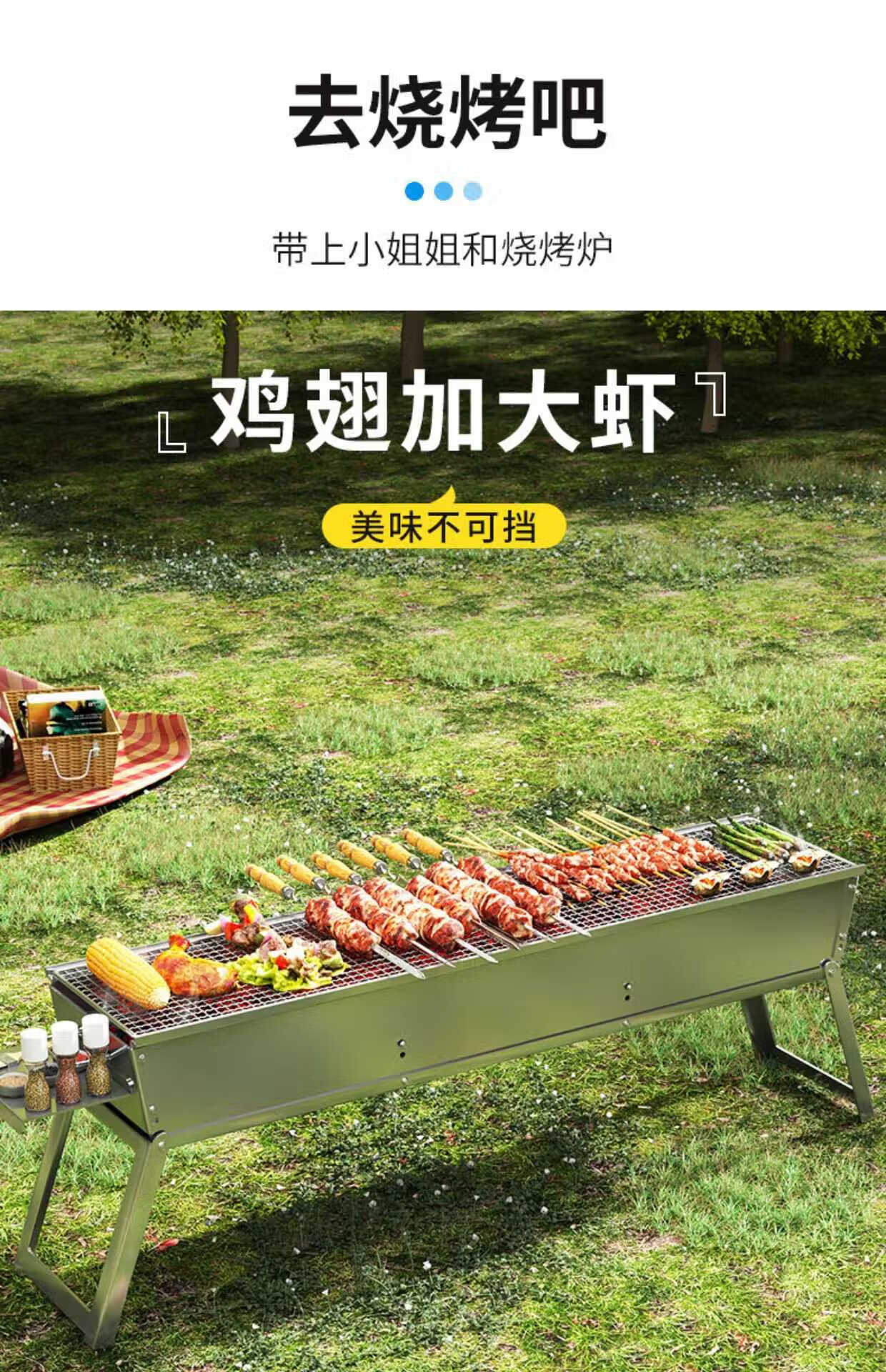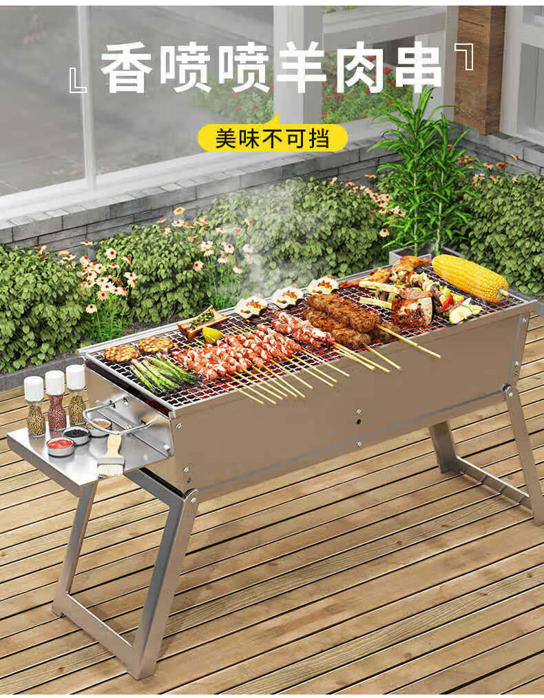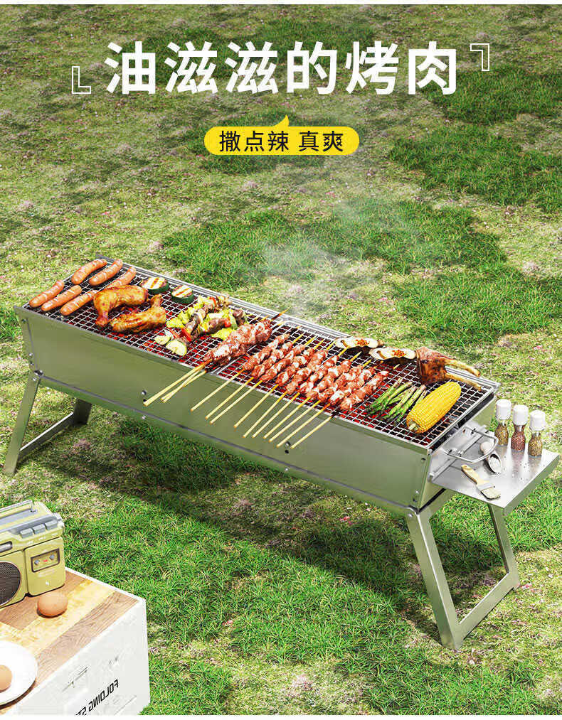 宰搂烧烤架户外折叠烧烤炉便携木炭烤肉架户外多功能烧 款120*18烤炉+8件套