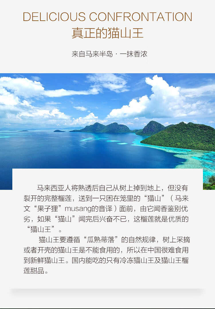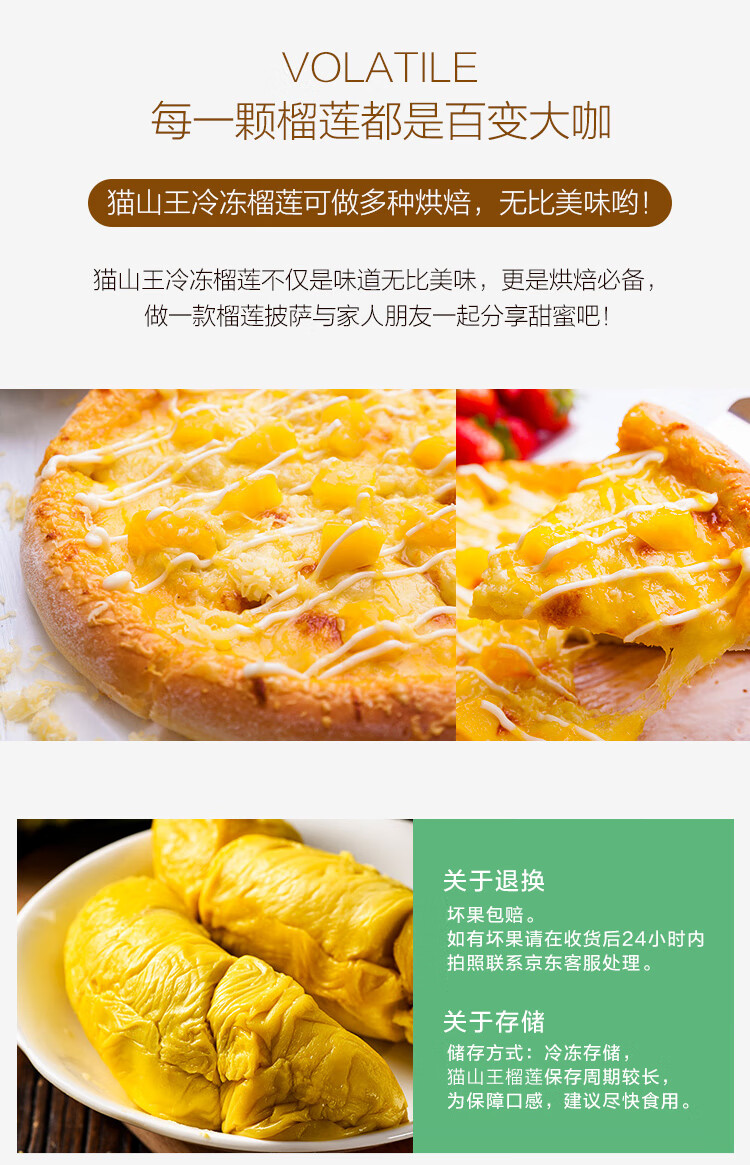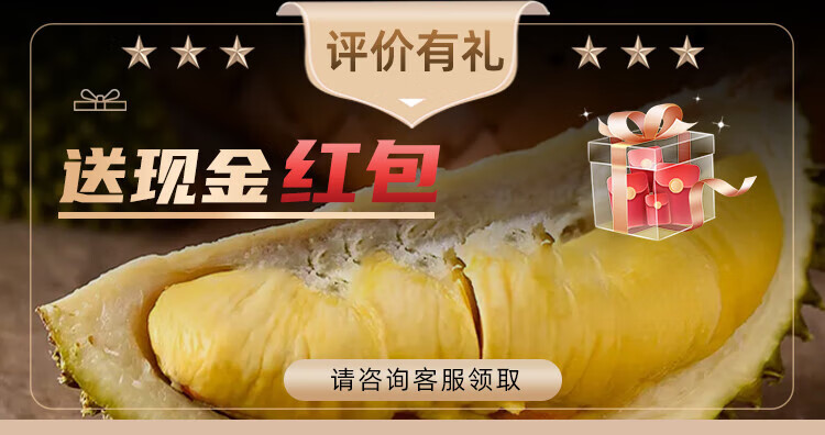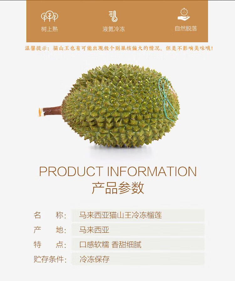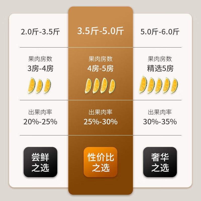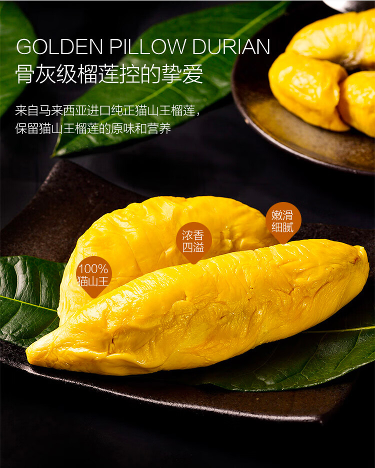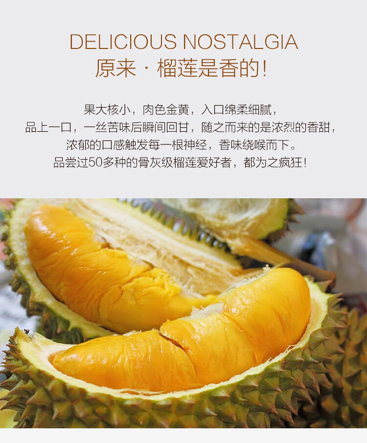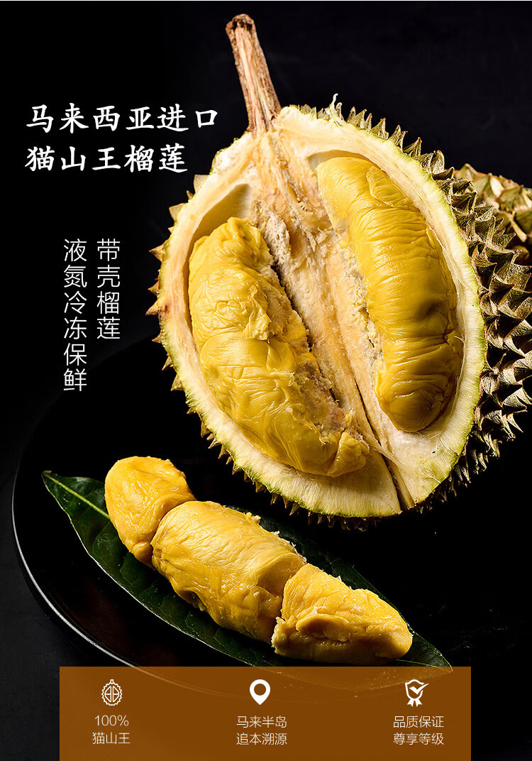 至尚云巅猫山王榴莲冷冻生鲜水果D197 甄选果 5.0-5.5斤【保4房】