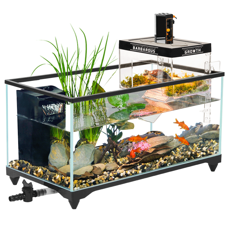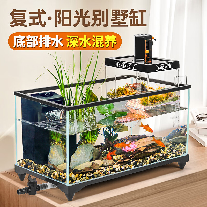 爬将军超白玻璃乌龟缸生态饲养缸鱼龟混养生态一体缸复式阳光别墅缸鱼缸 50缸【阳光房+造景+暖灯+过滤套餐】