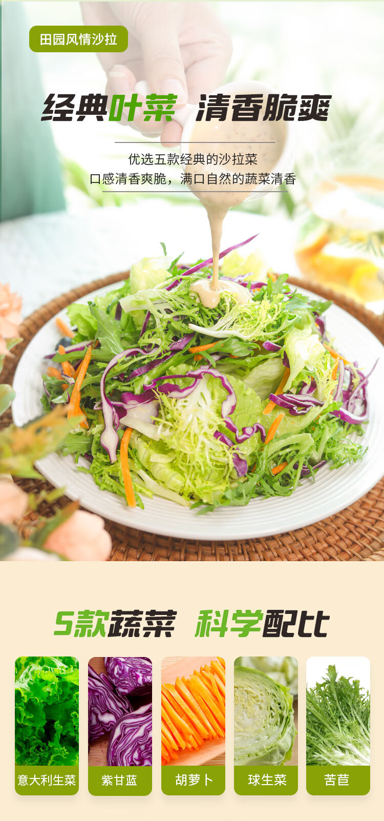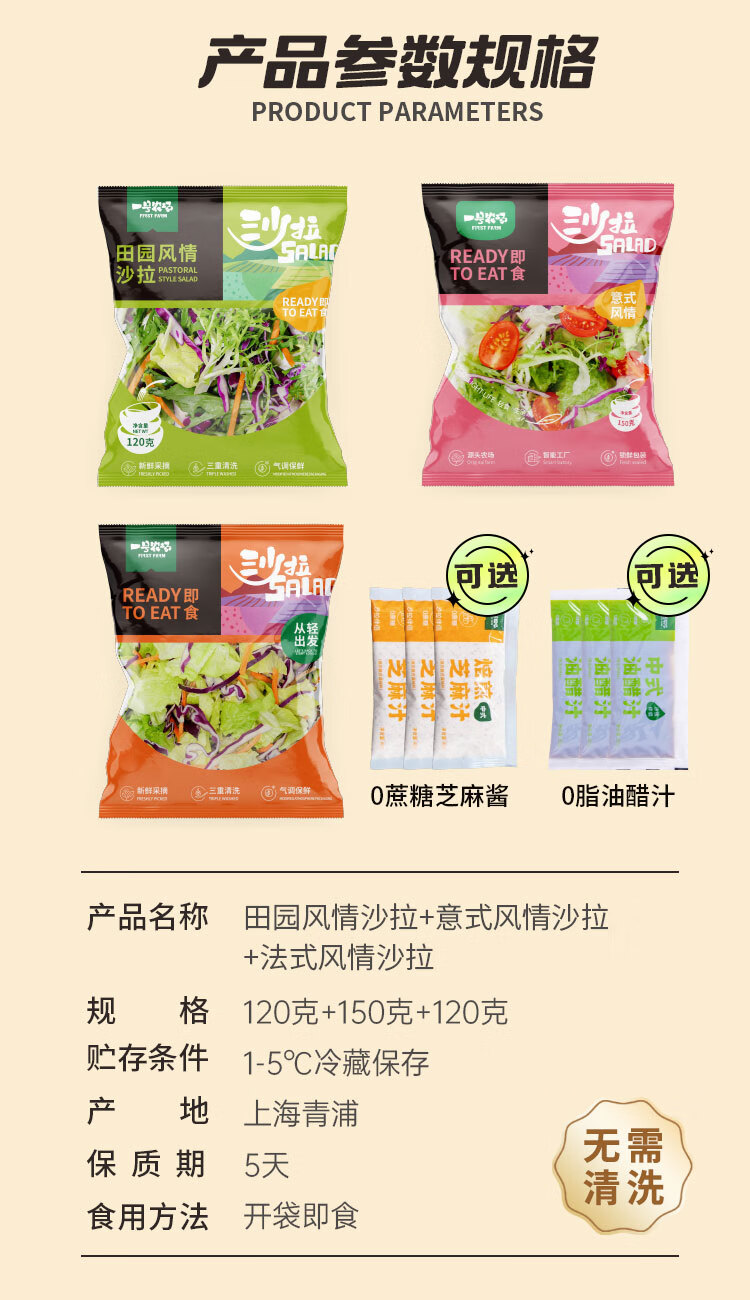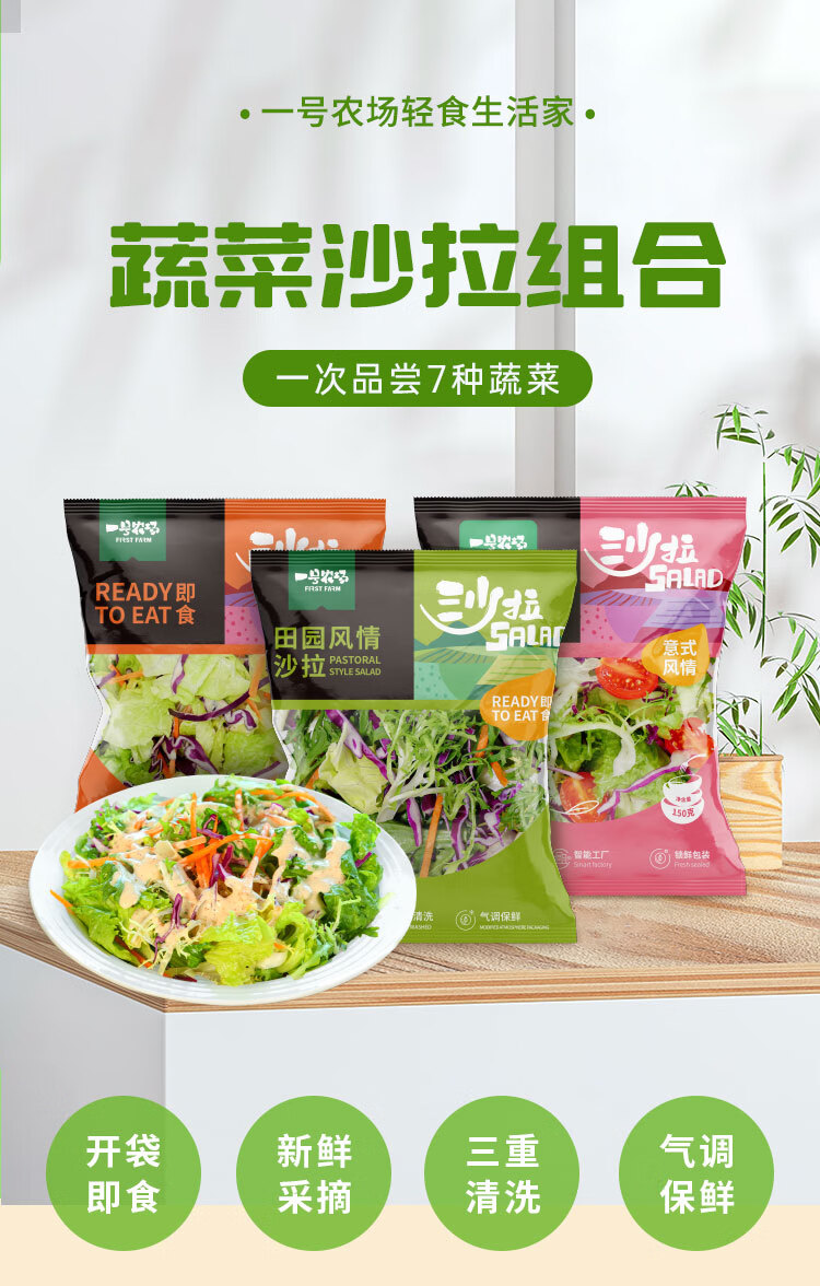 一号农场开袋即食沙拉组合意式法式田园混合轻食代餐色拉生菜蔬菜沙拉健身 田园*1+法式*1+意式*1+无酱汁