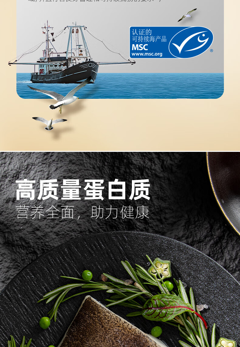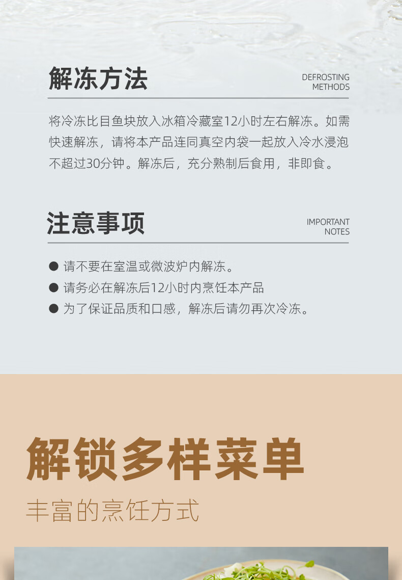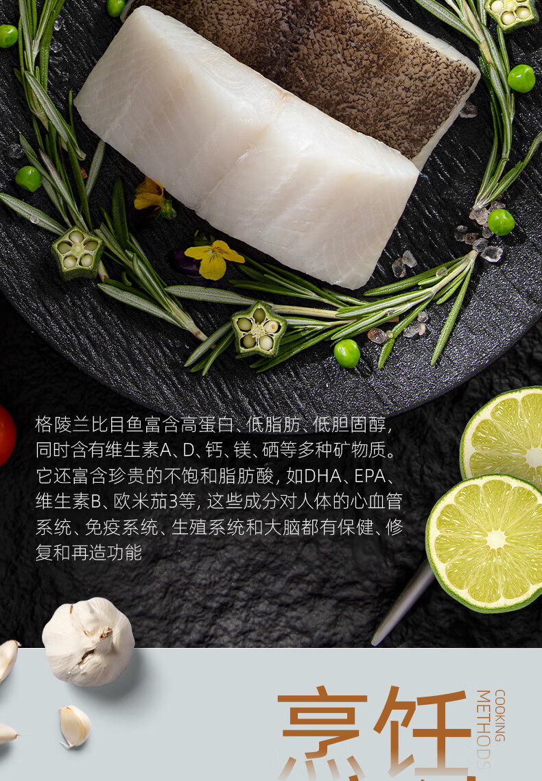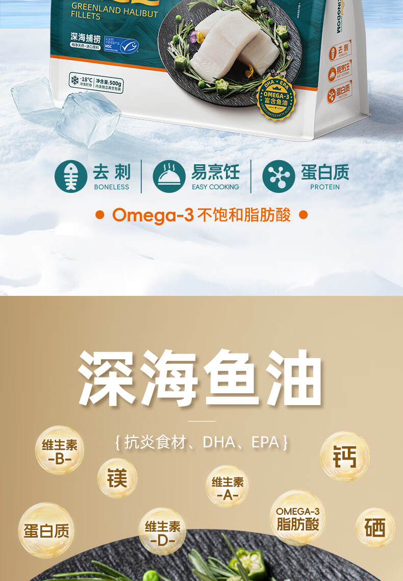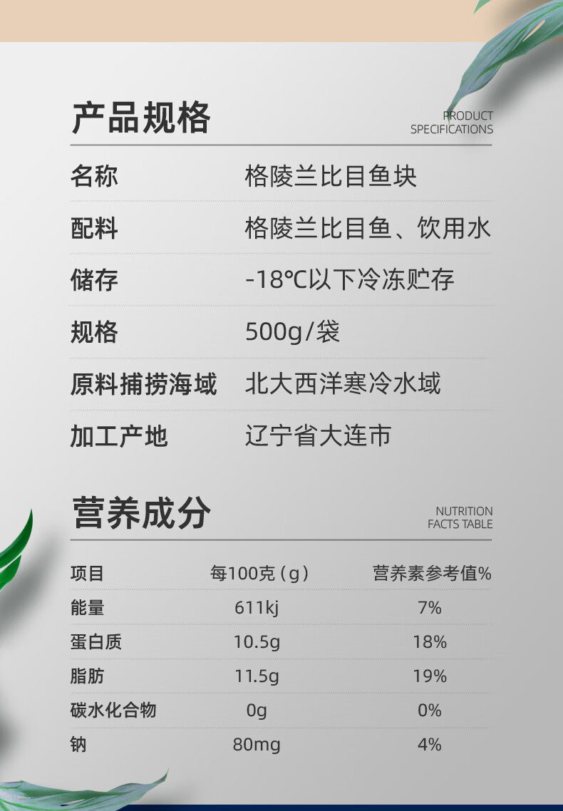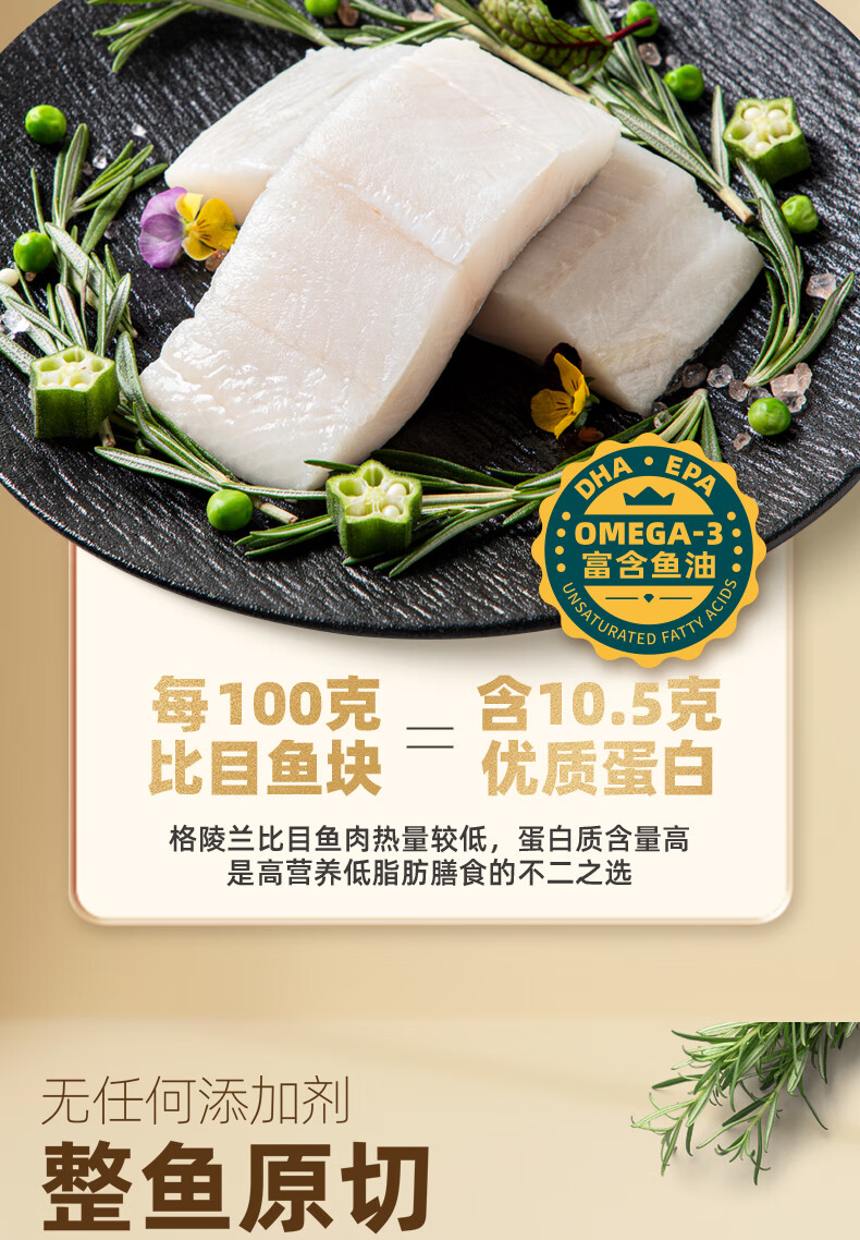 【海鲜国度】去刺进口野生格陵兰比目鱼块辅食独立包装MSC认证 去刺格陵兰比目鱼块1包 500g