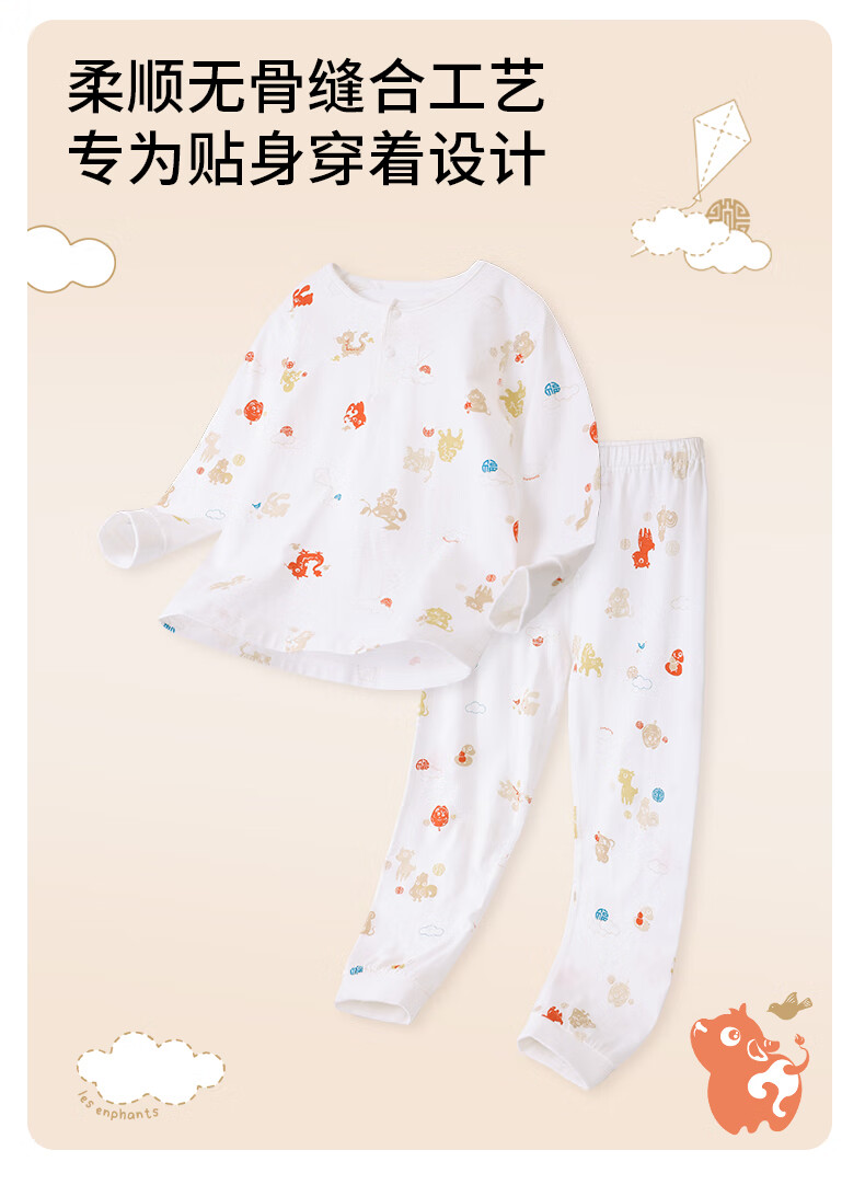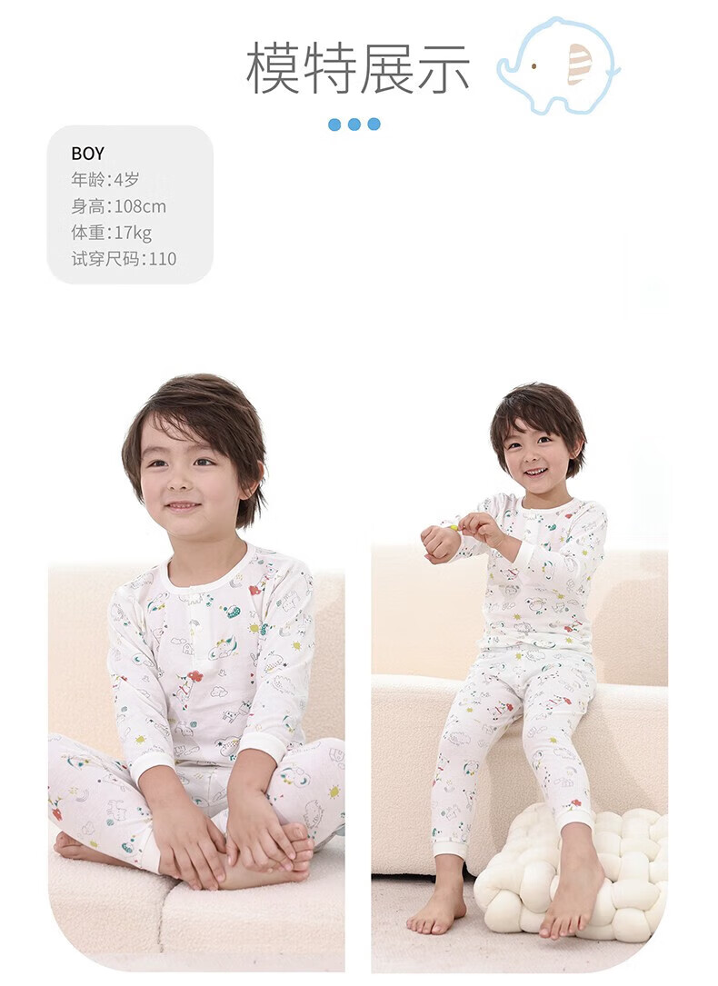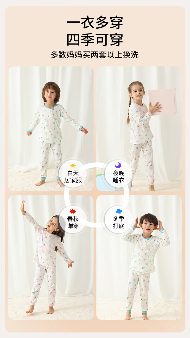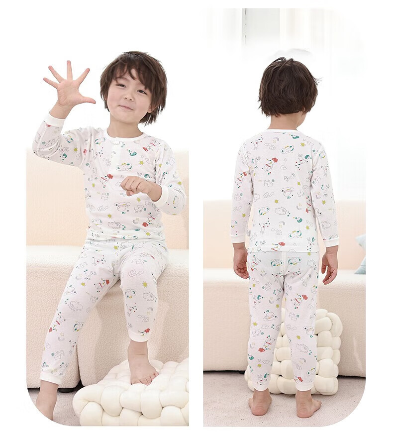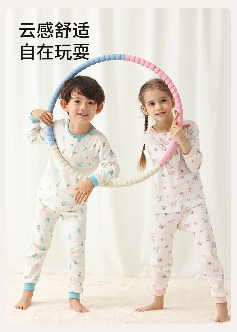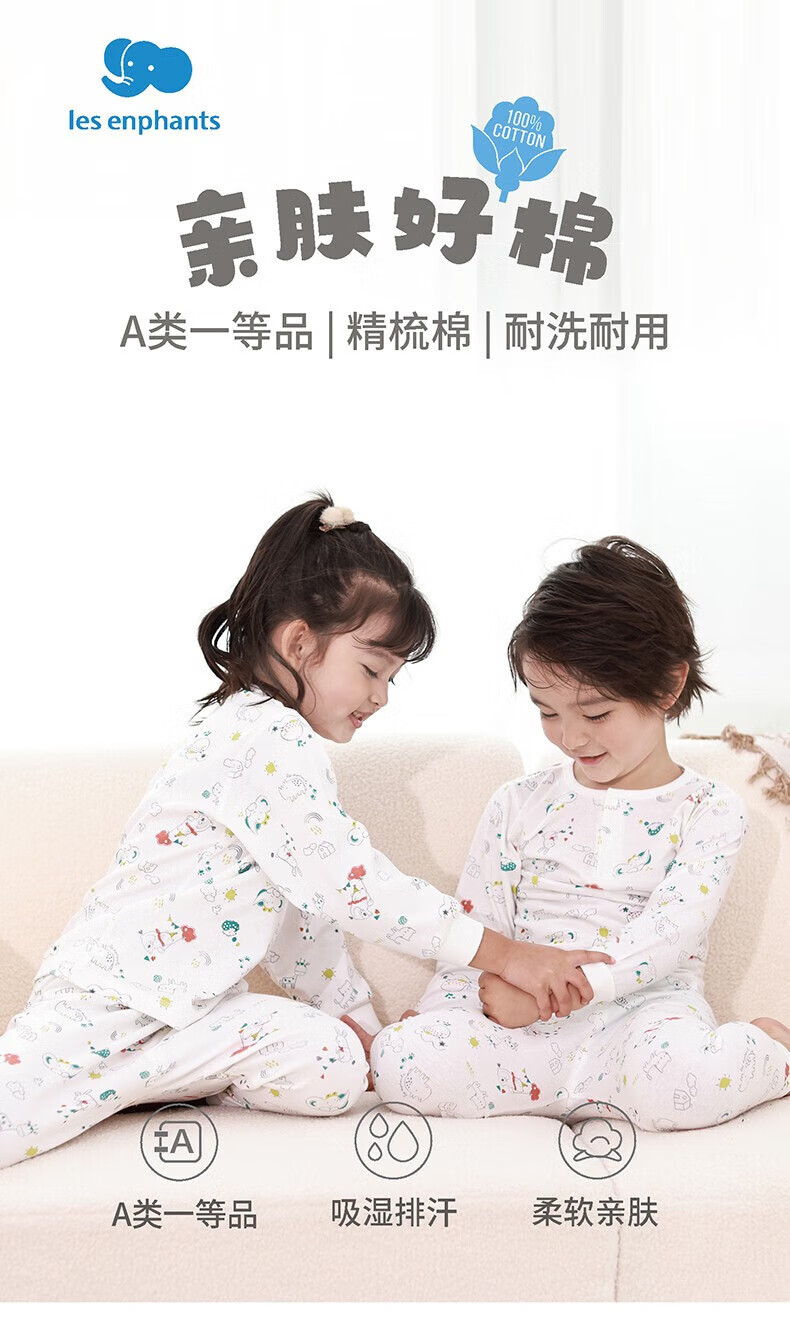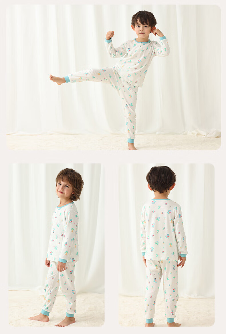 丽婴房(Les enphants)丽婴房儿童A类纯棉内衣套装男童女童夏季睡衣打底长袖空调家居服 奇想天蓝 140 CM/10岁