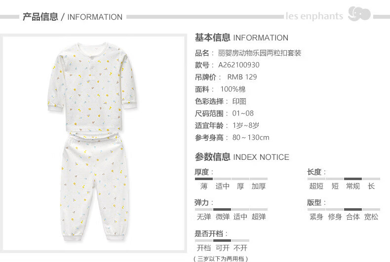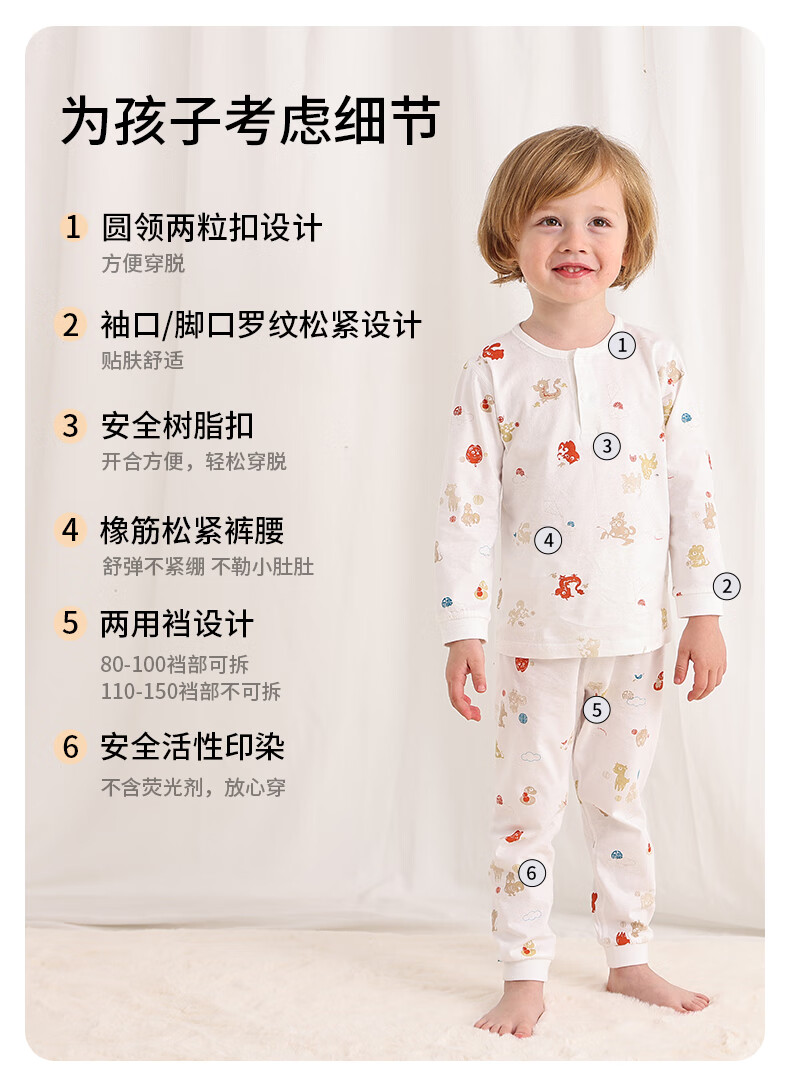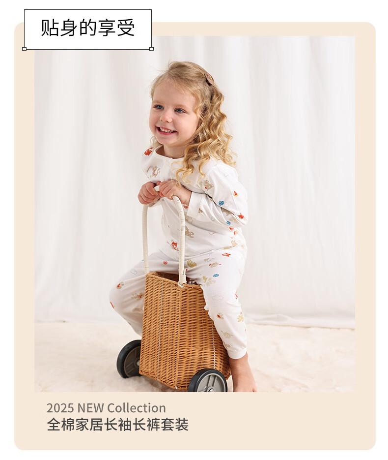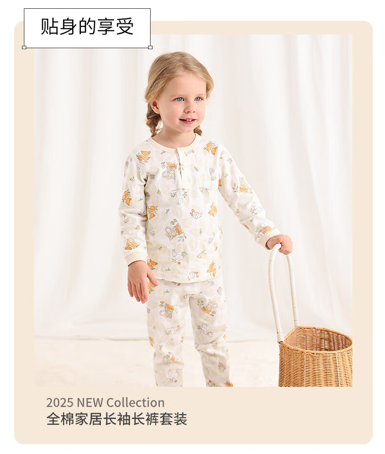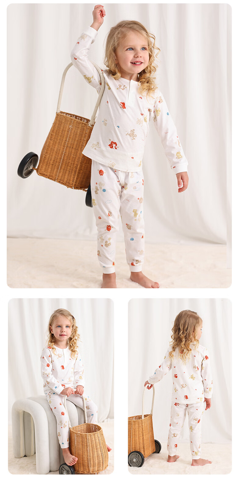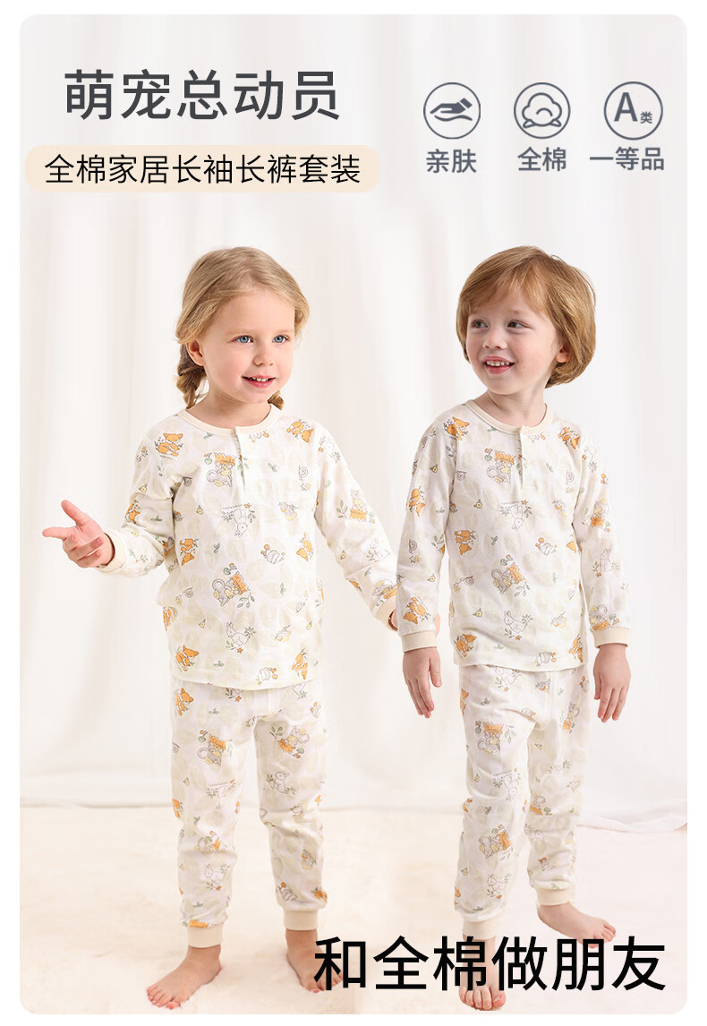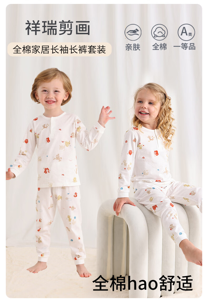丽婴房(Les enphants)丽婴房儿童A类纯棉内衣套装男童女童夏季睡衣打底长袖空调家居服 奇想天蓝 140 CM/10岁