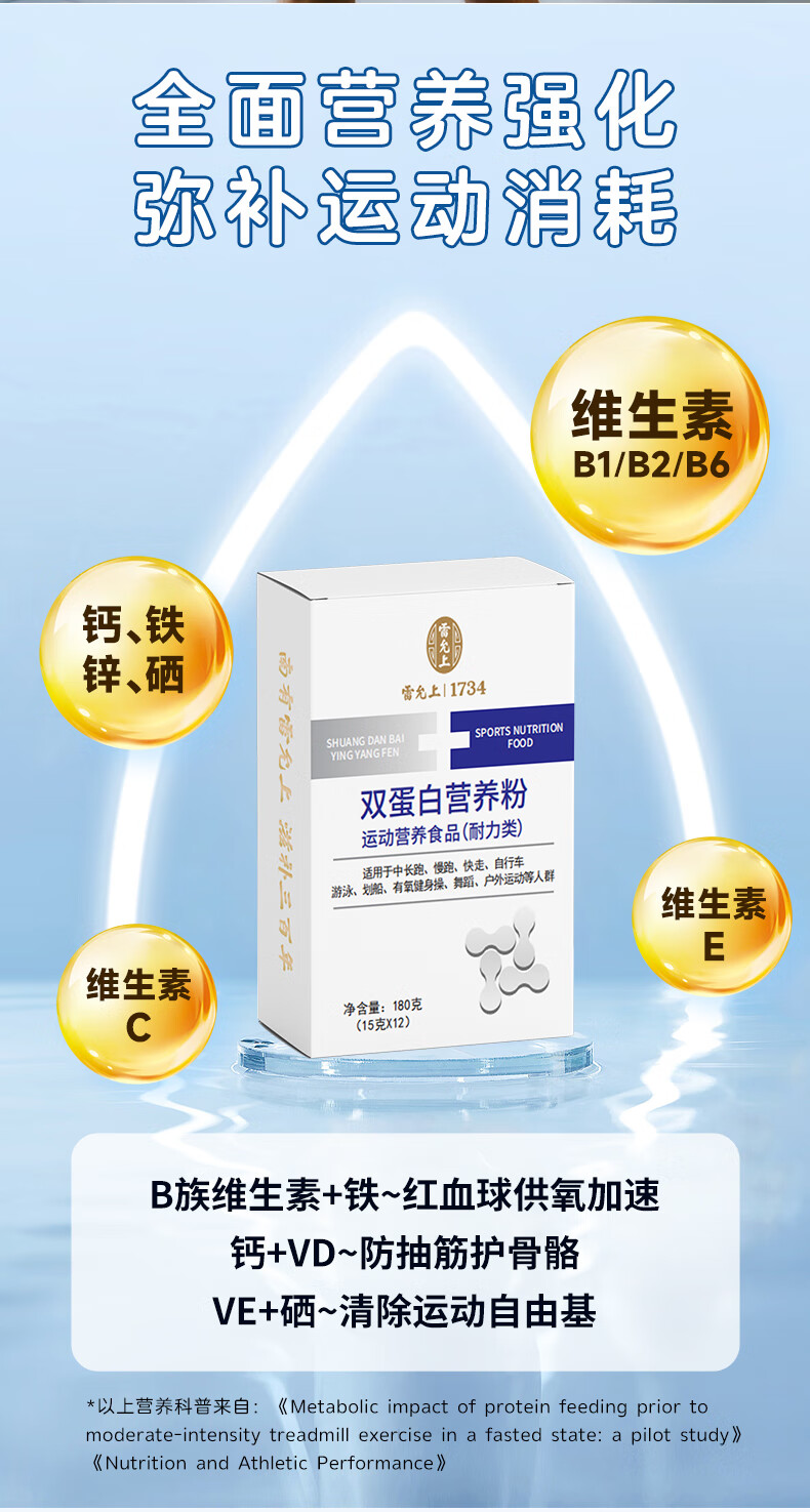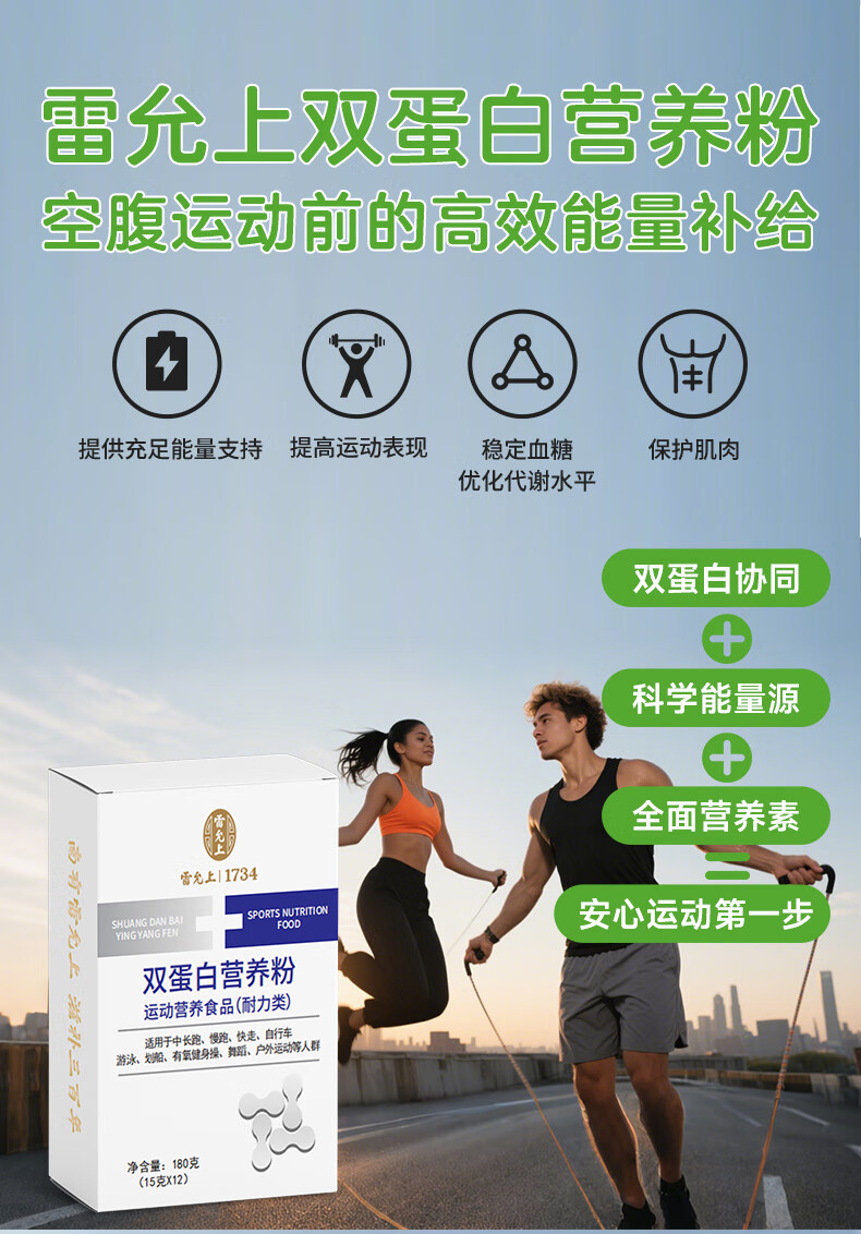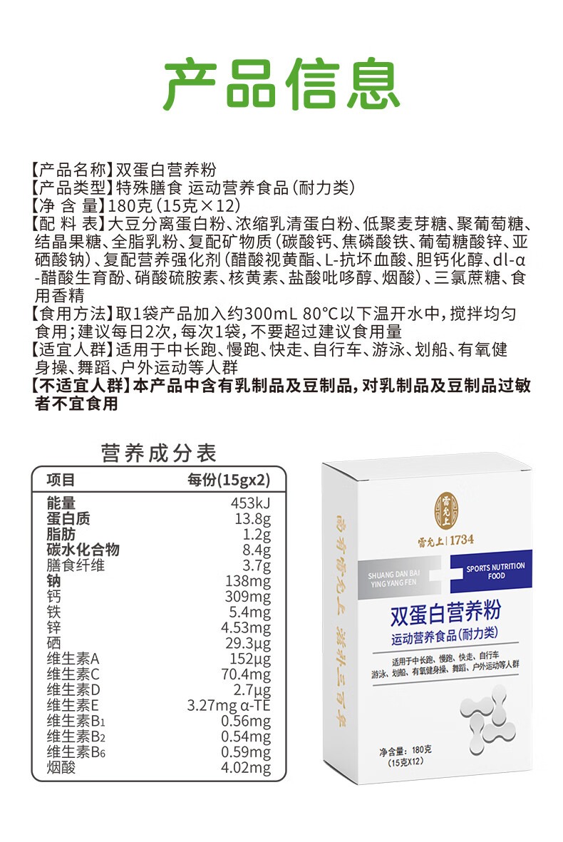雷允上双蛋白营养粉180g复合动植物浓缩乳清蛋白粉免疫力成人运动 180g*1盒装