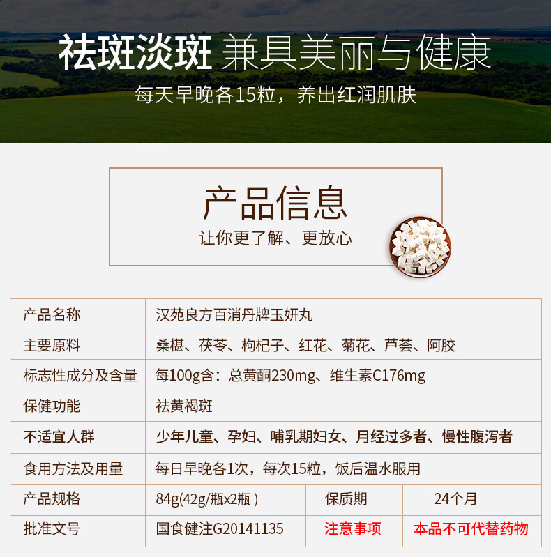 汉苑良方 百消丹玉妍丸内调淡斑祛黄褐斑养颜女成分温和口服祛斑淡斑 【周期装】4盒【推荐】