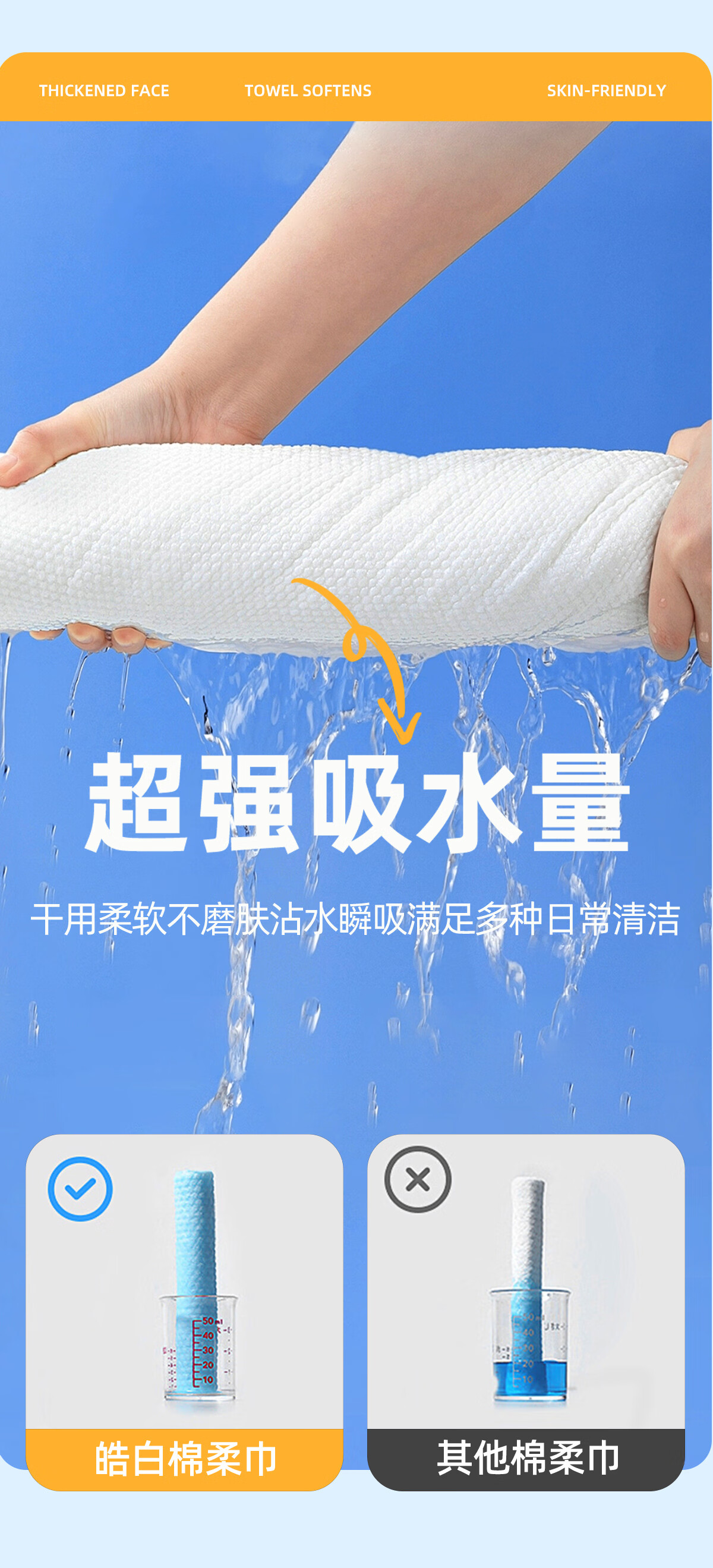 皓白美容店洗脸巾大卷一次性加大加厚棉柔巾擦脸学生宿舍洗面巾悬挂式 510抽 3包 美容院专供3.6斤
