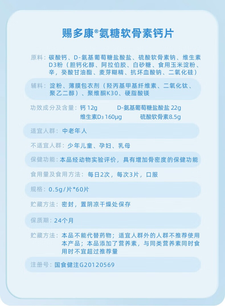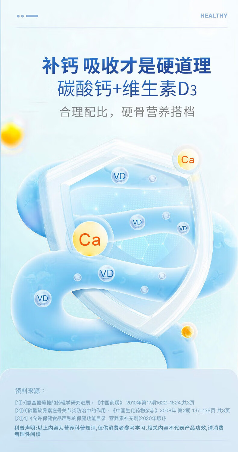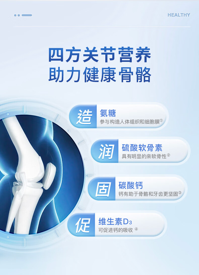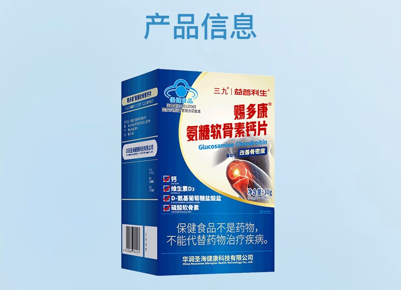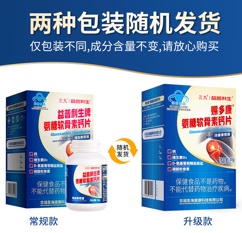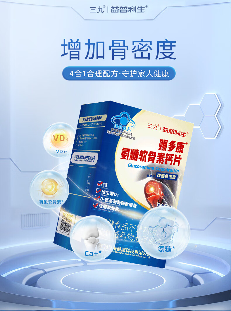 益普利生三九氨糖软骨素钙片成人中老年关节疼痛腿抽筋骨质疏松骨骼补钙片 氨糖60片/瓶【尝鲜装60片】
