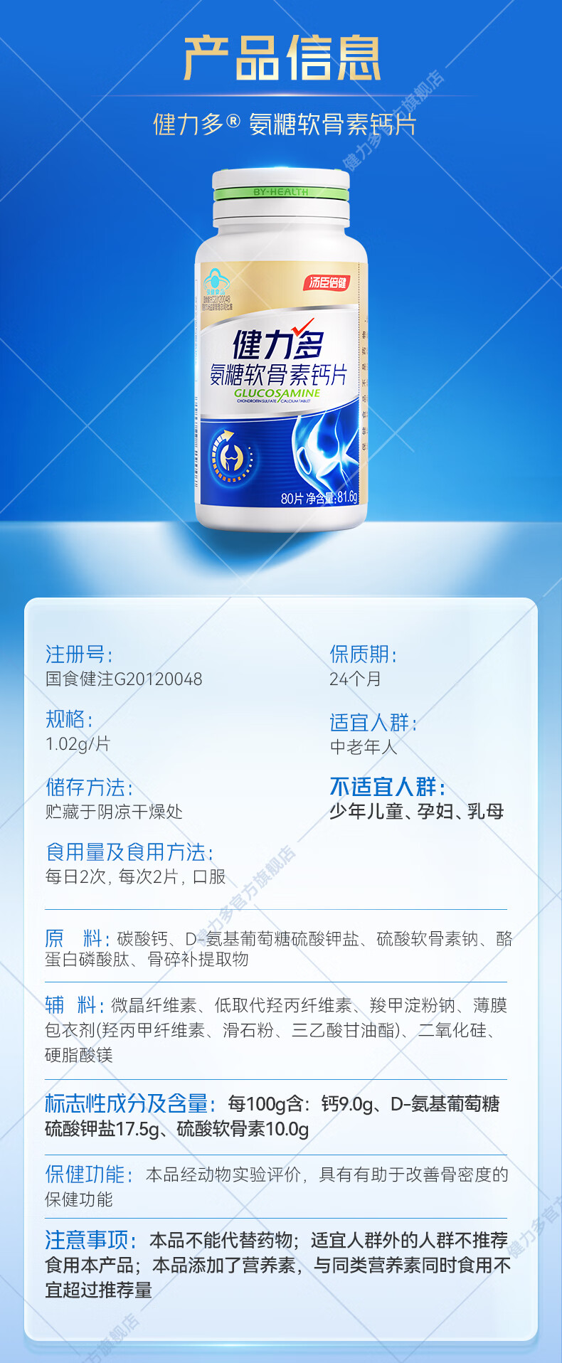 健力多汤臣倍健氨糖软骨素钙片中老年成人钙片 养护关节增加密度 【囤货礼赠】温和草本氨糖礼盒装240片