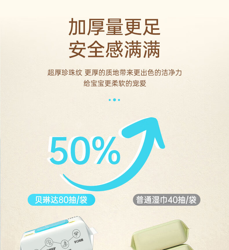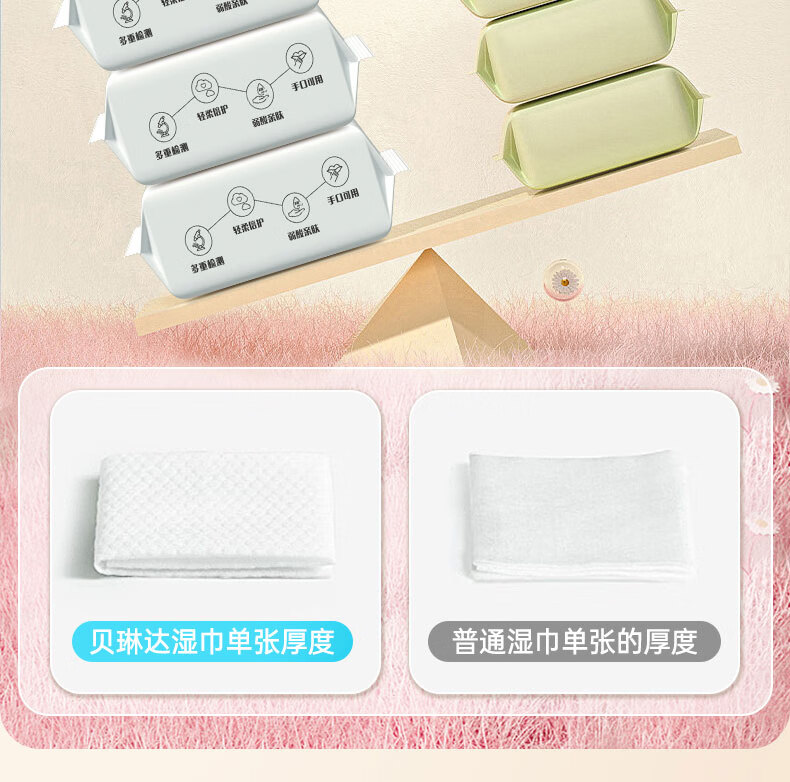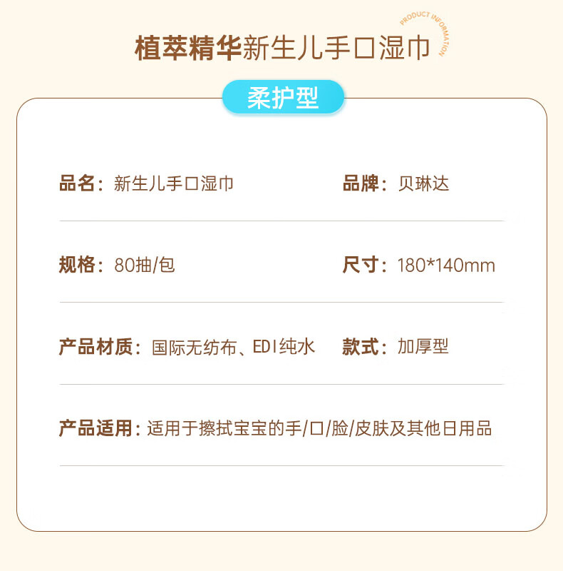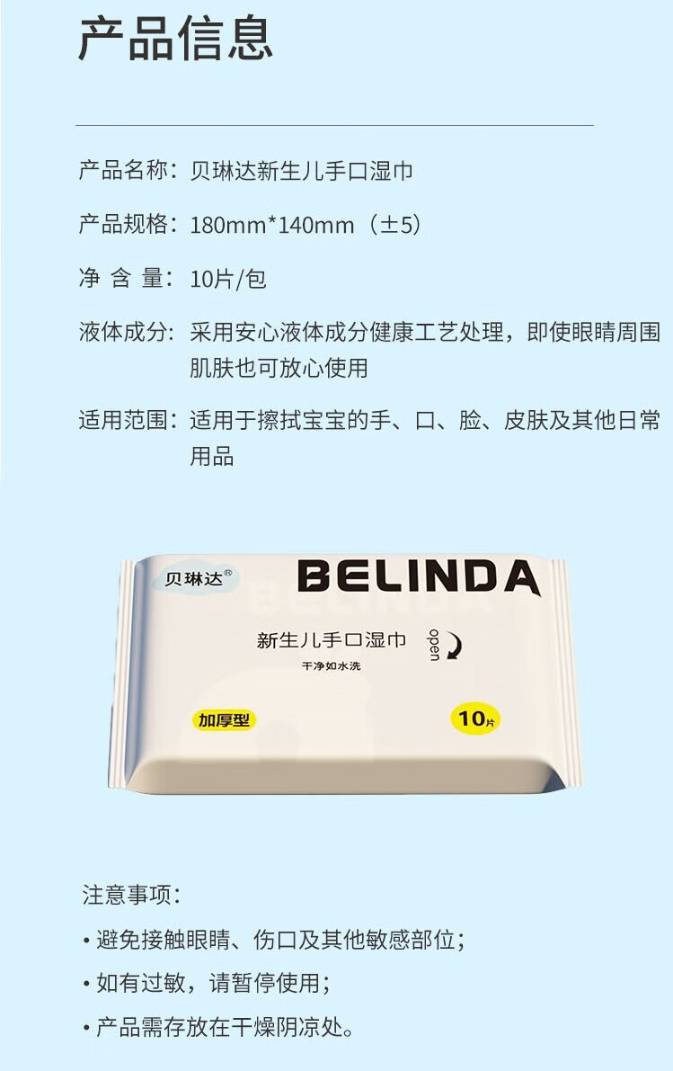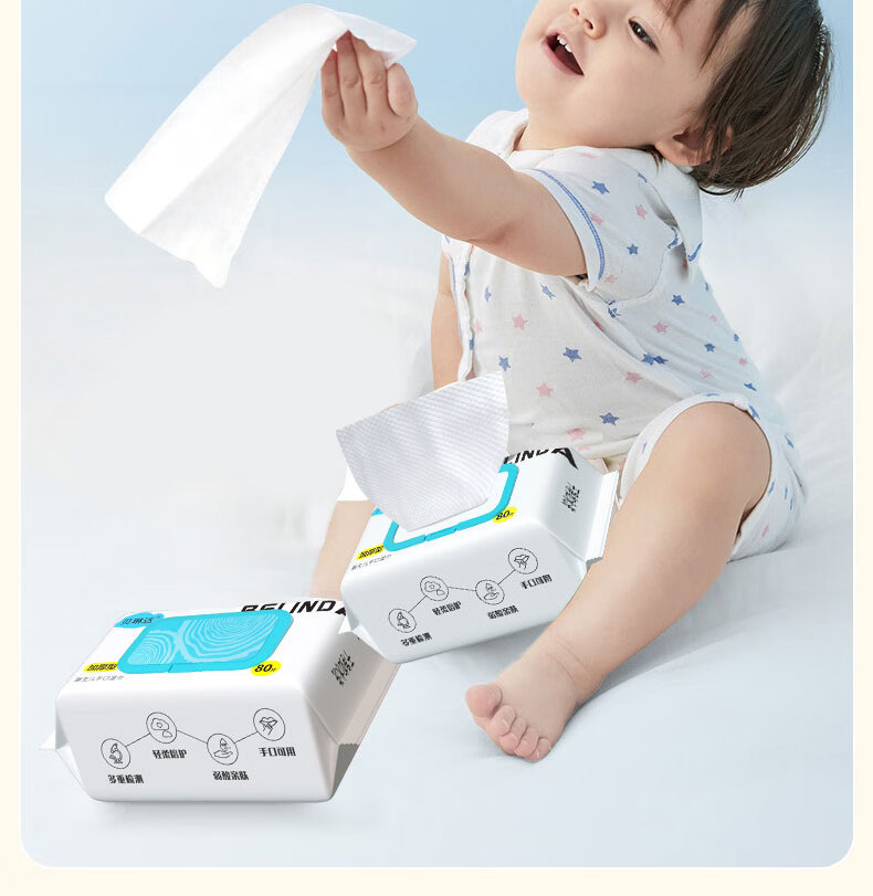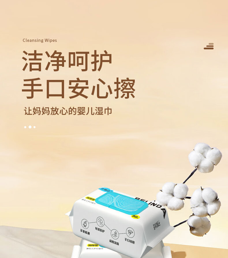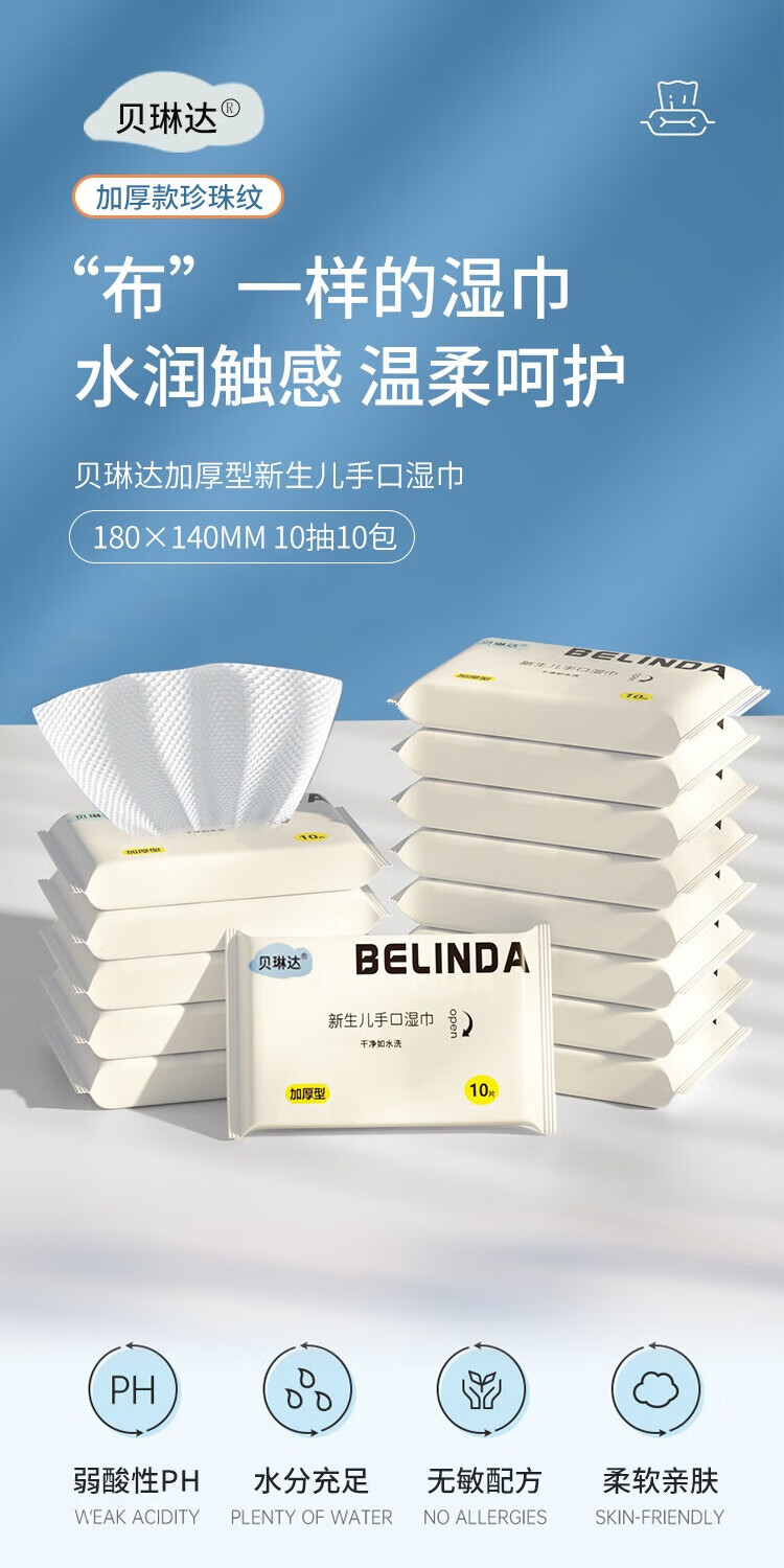 贝琳达湿巾婴儿湿巾手口湿纸巾宝宝手口屁屁专用儿童湿巾加厚加大便携 80抽 5包 带盖婴儿手口湿巾