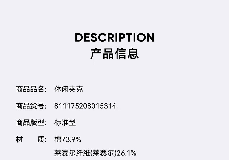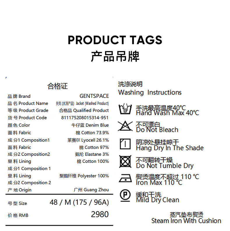 GENTSPACEGENTSPACE 2025秋季新品牛仔蓝牛仔外套男夹克 尺码表 3XL 195/112A 56 XXXL