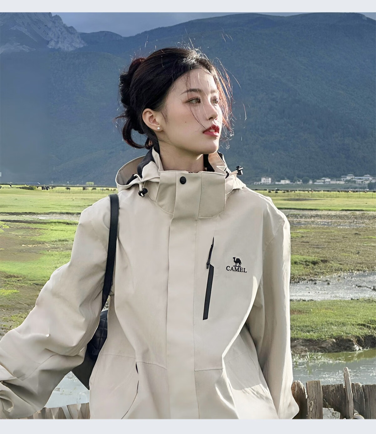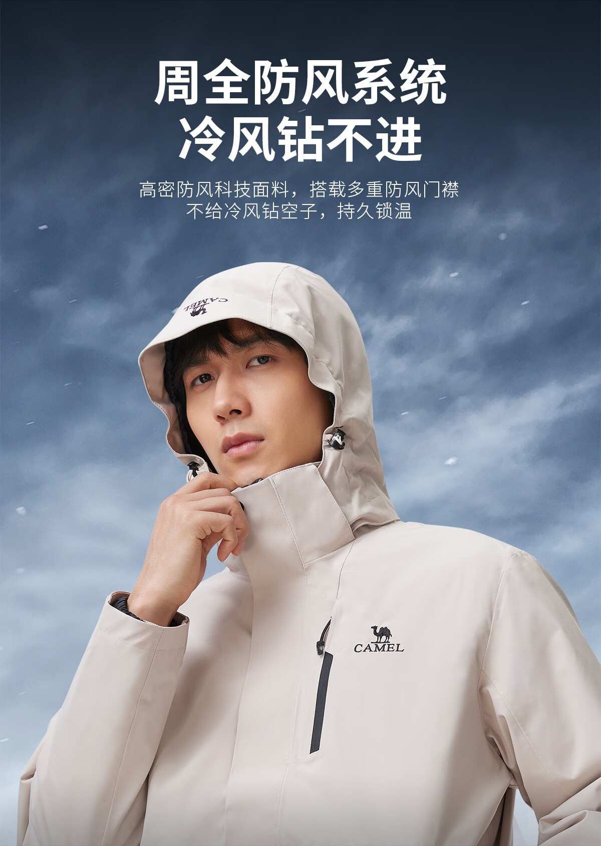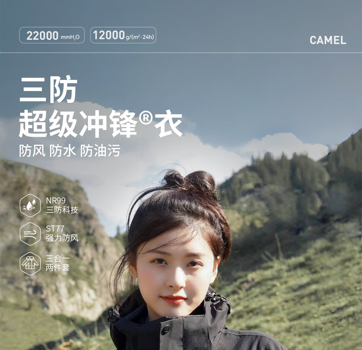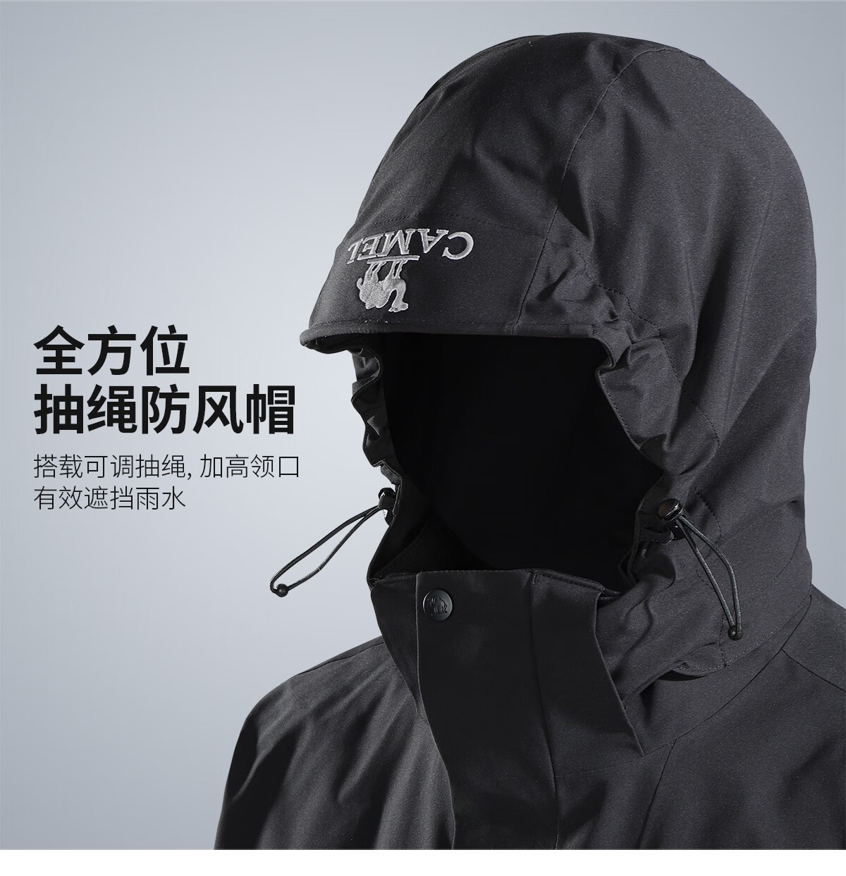 骆驼(camel)户外冲锋衣男女款三合一加绒羽绒可拆卸幻影黑3514 幻影黑【羽绒内胆】三合一 XL(110-130)