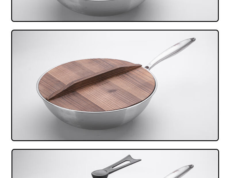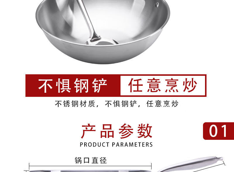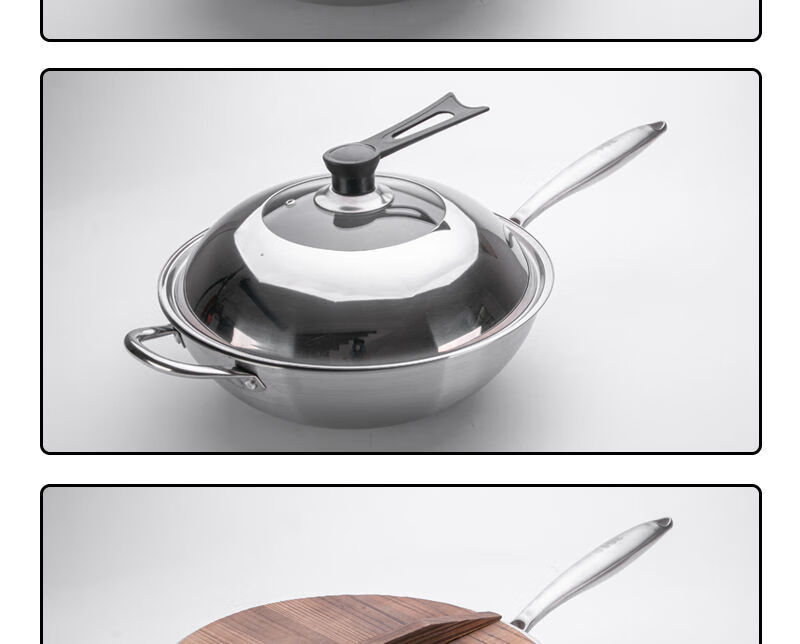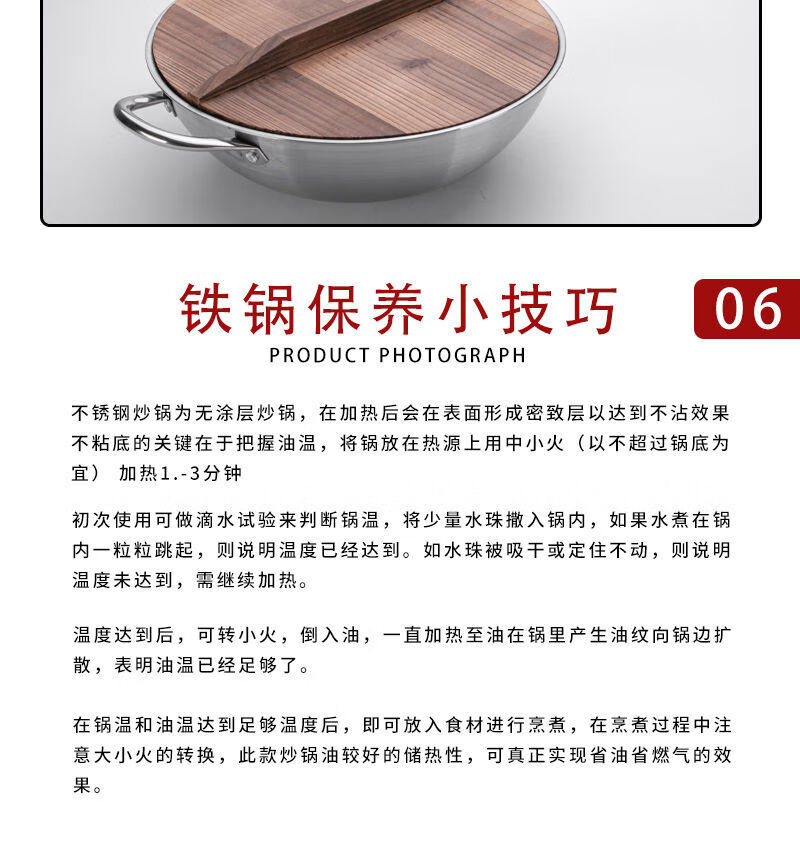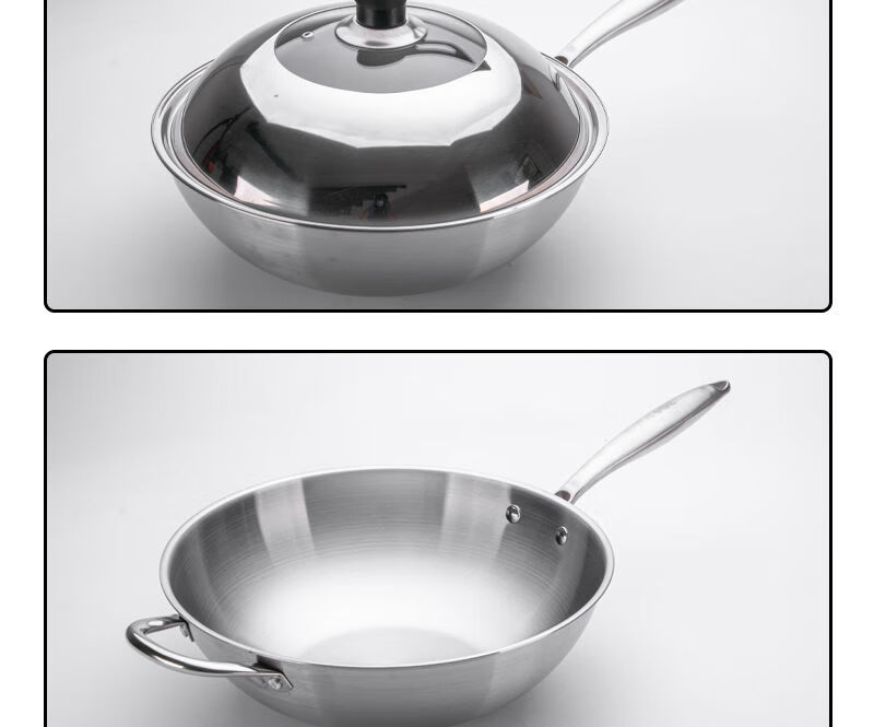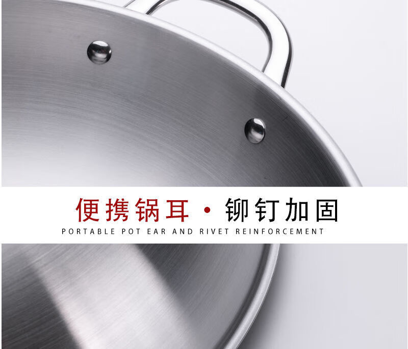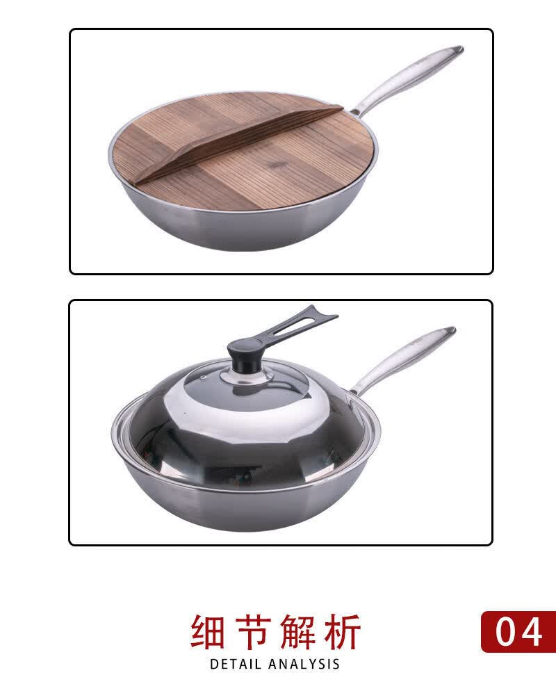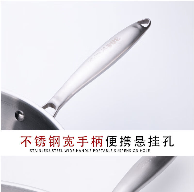 PJ6302次回购厨师无油烟不锈钢炒锅家用无涂层炒菜锅电磁炉燃 1寸 升级款五层钢+可立盖1寸 内径34厘米有耳