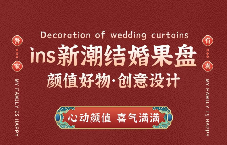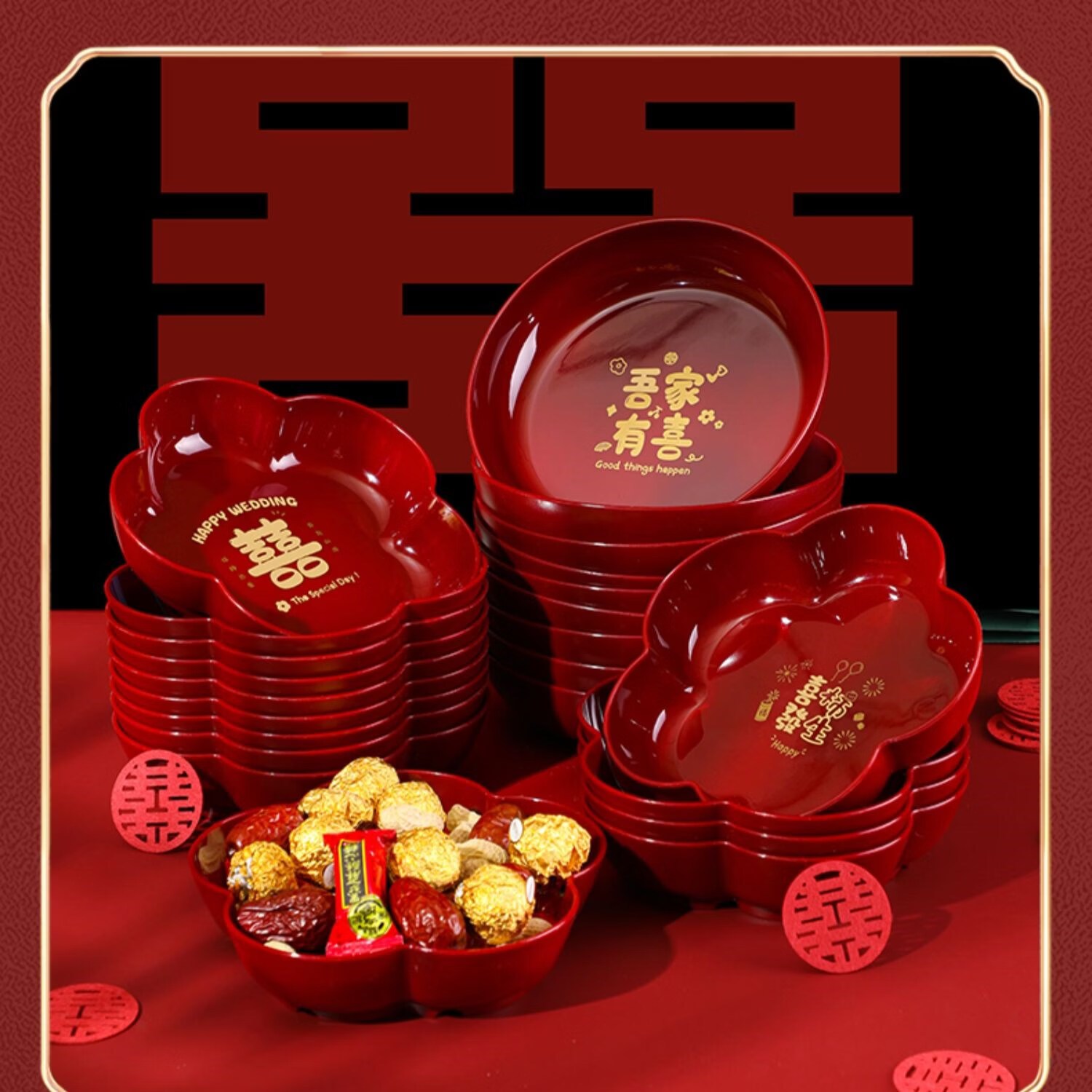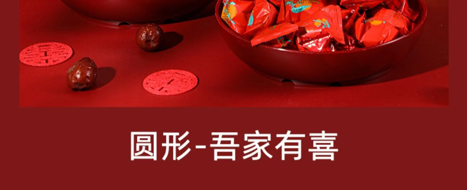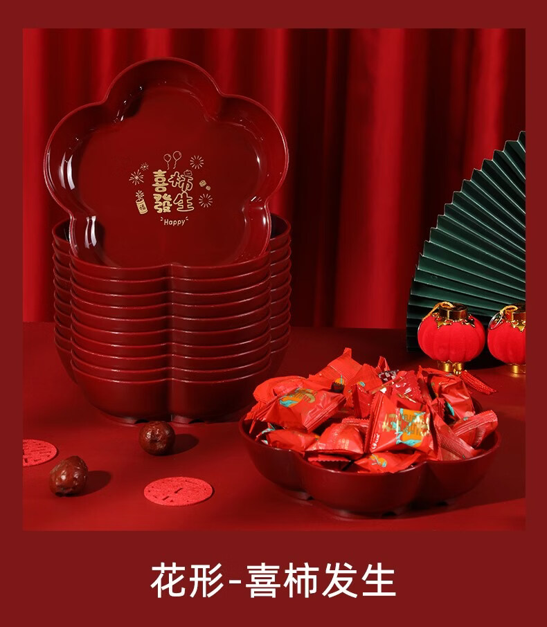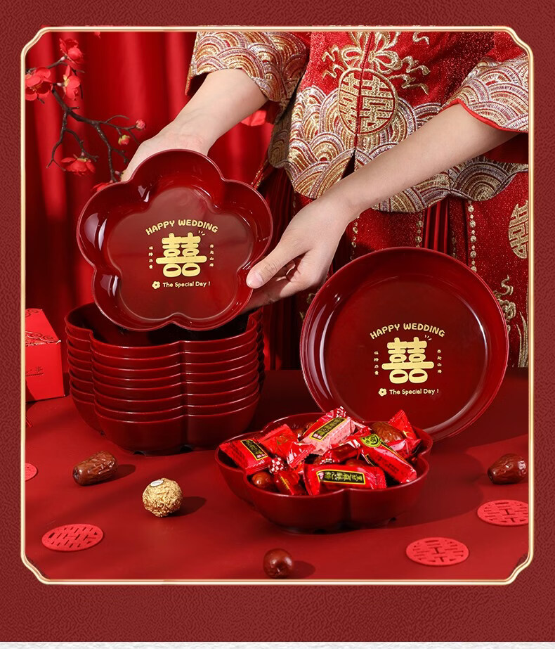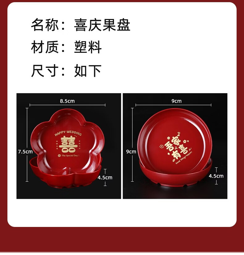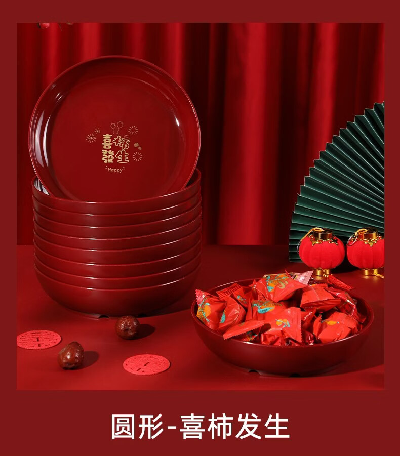 科鹿结婚果盘红色客厅喜糖盘订婚摆件喜盘子干果盘网红婚庆用品大全盘 【喜柿发生-4个】圆形