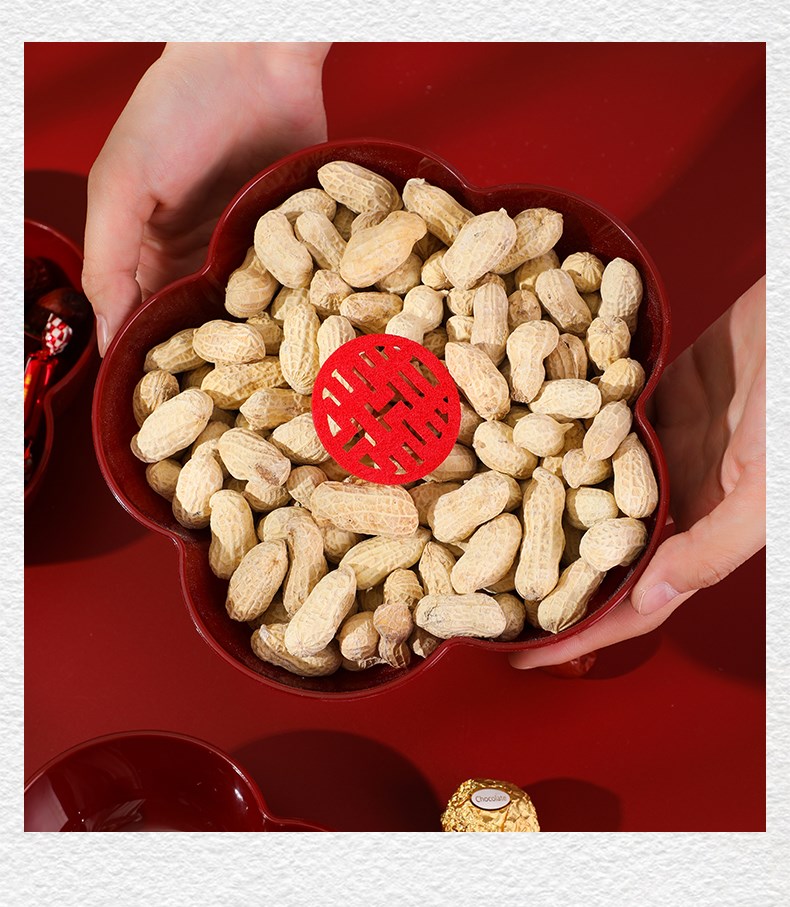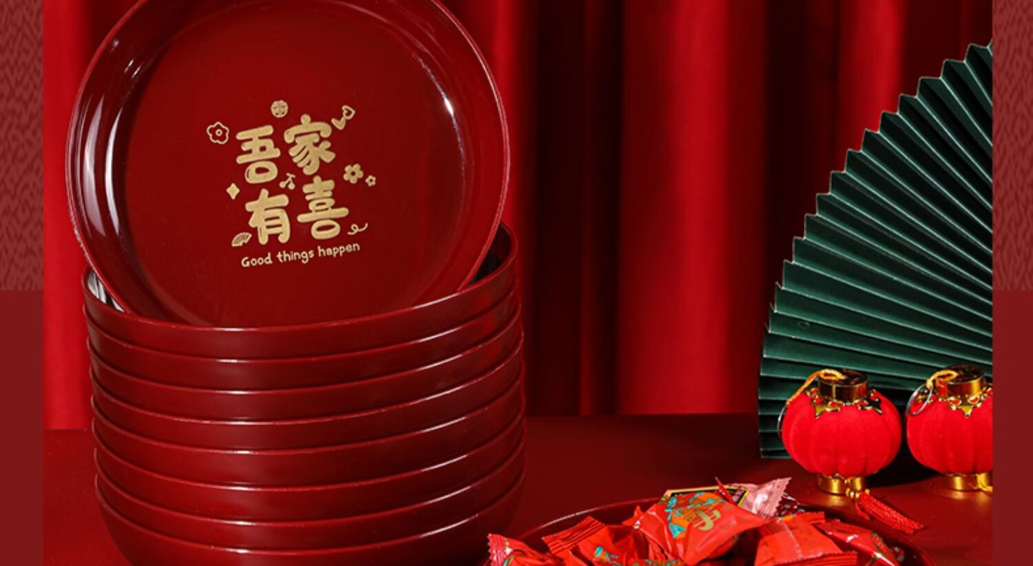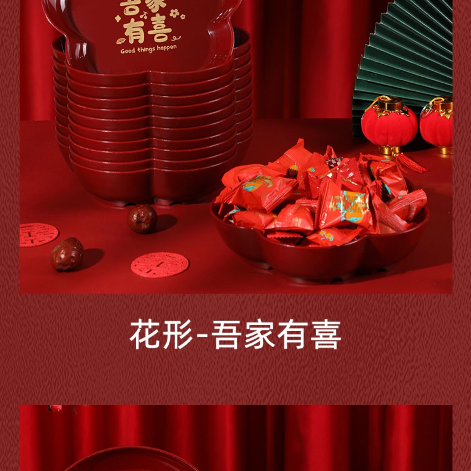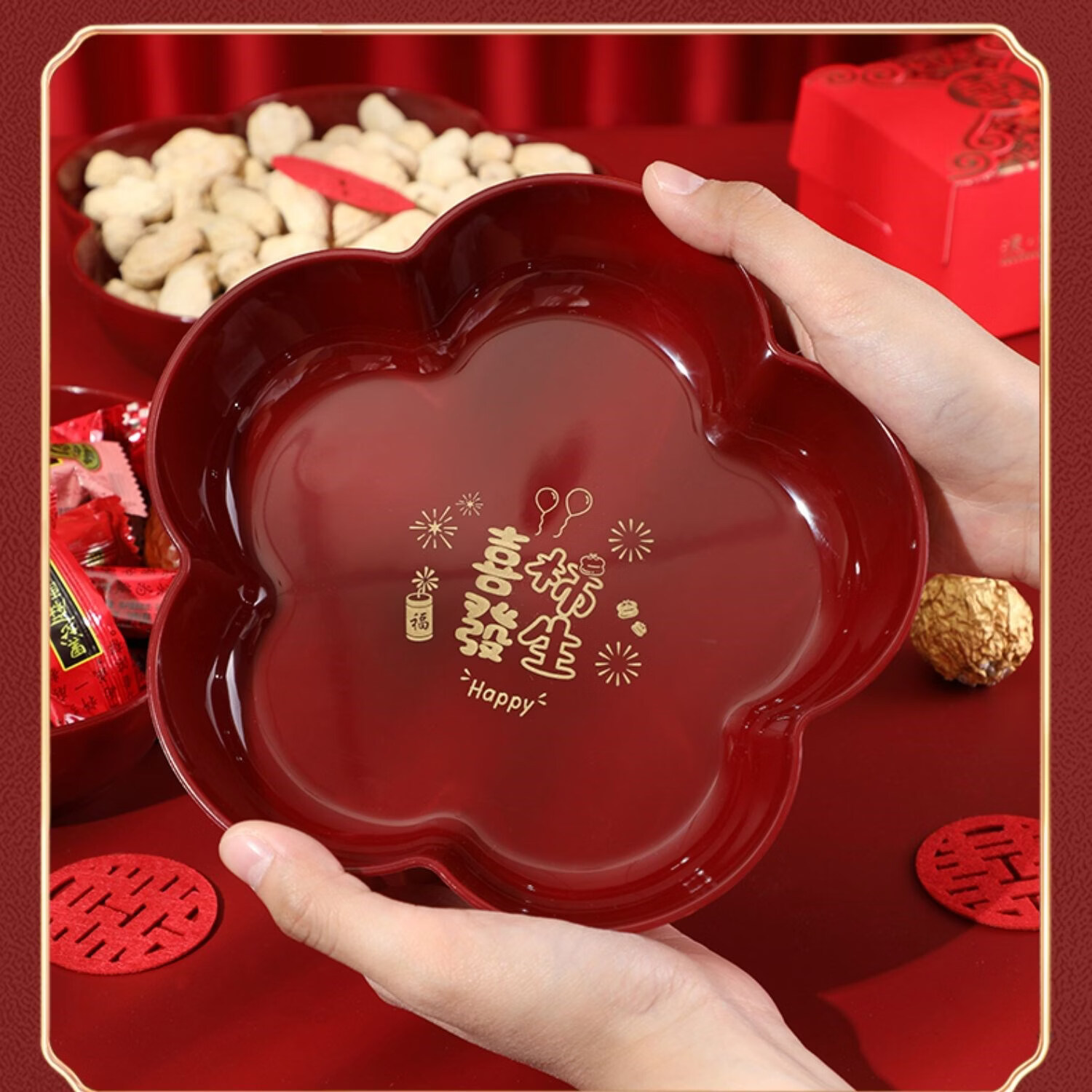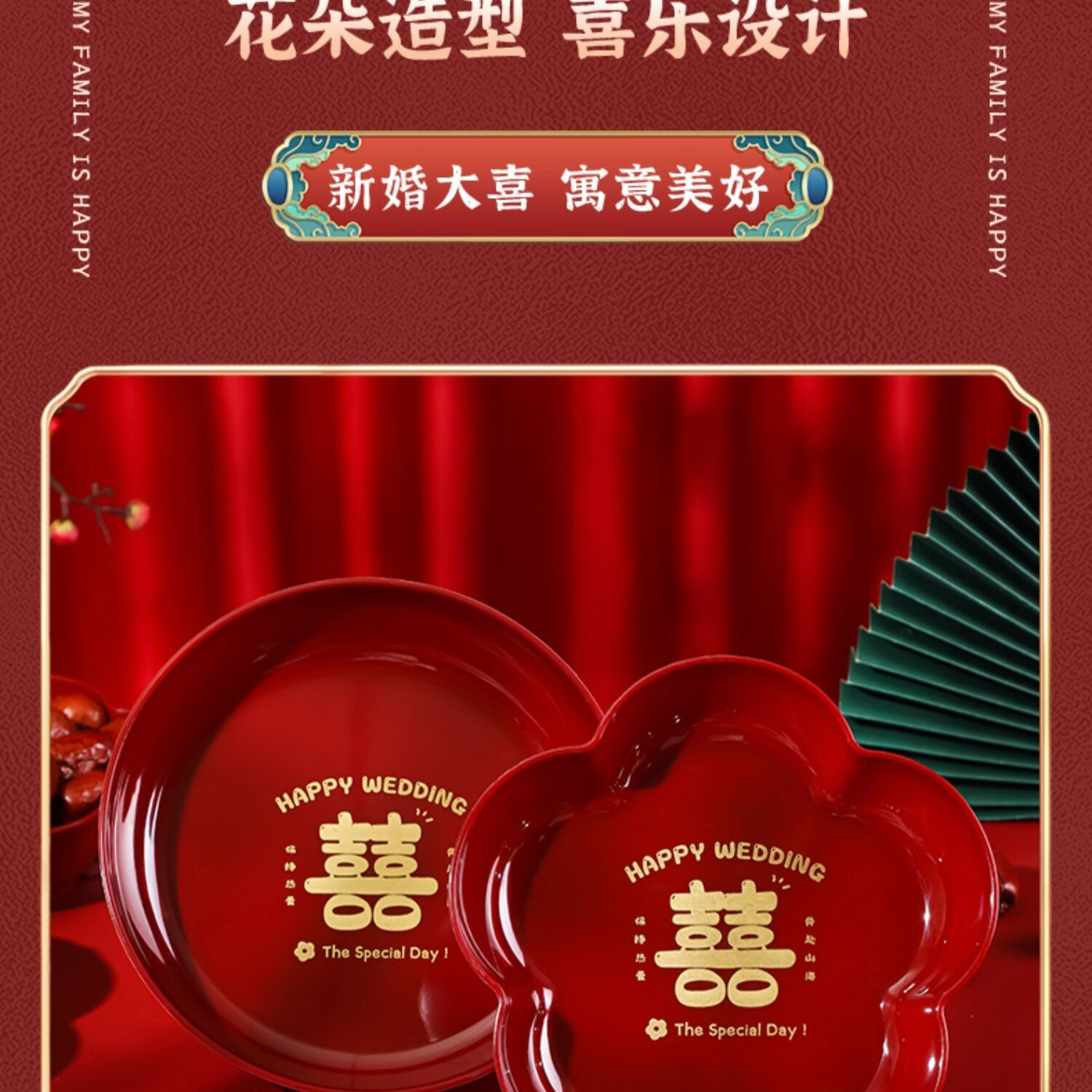 科鹿结婚果盘红色客厅喜糖盘订婚摆件喜盘子干果盘网红婚庆用品大全盘 【喜柿发生-4个】圆形