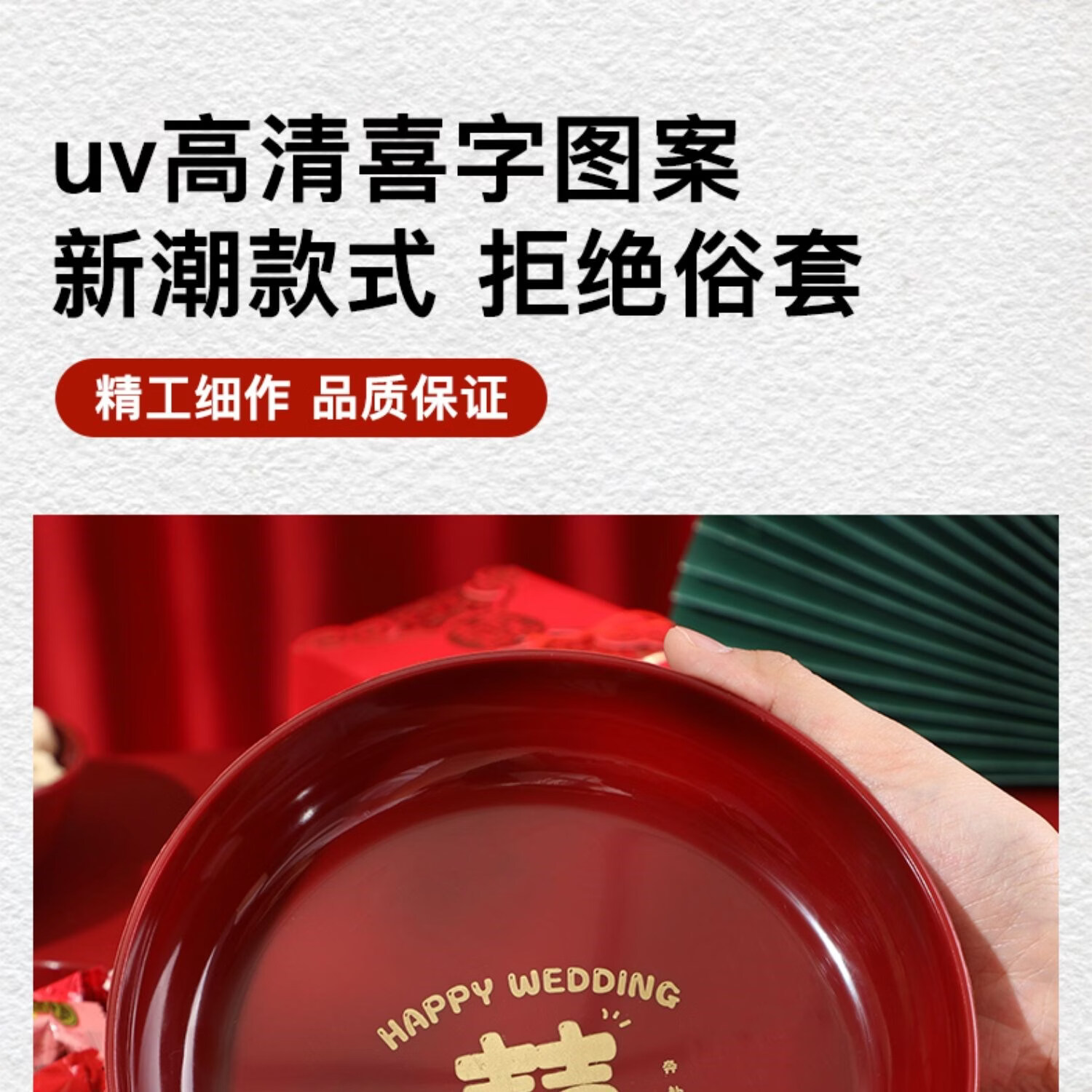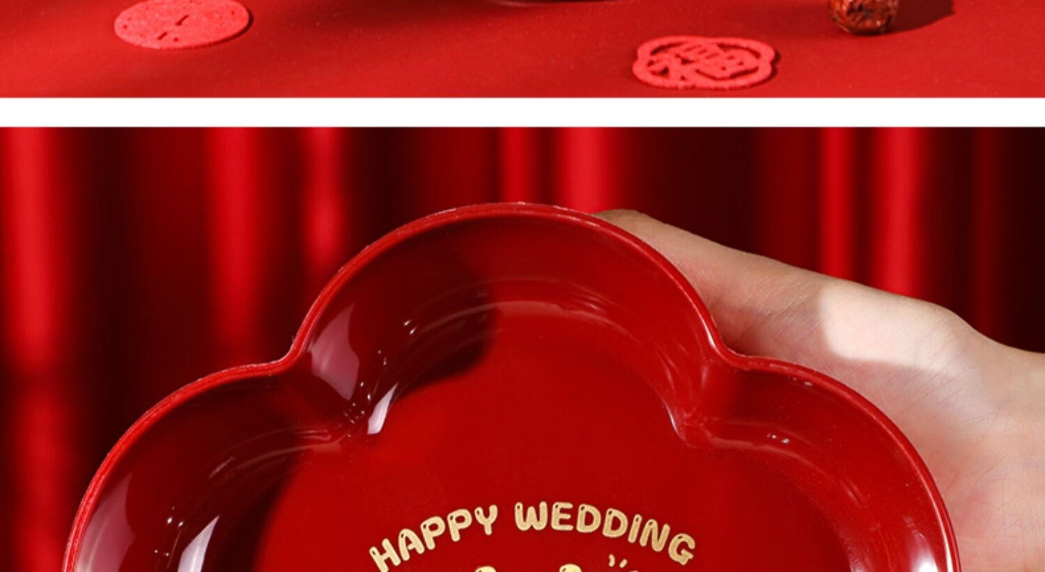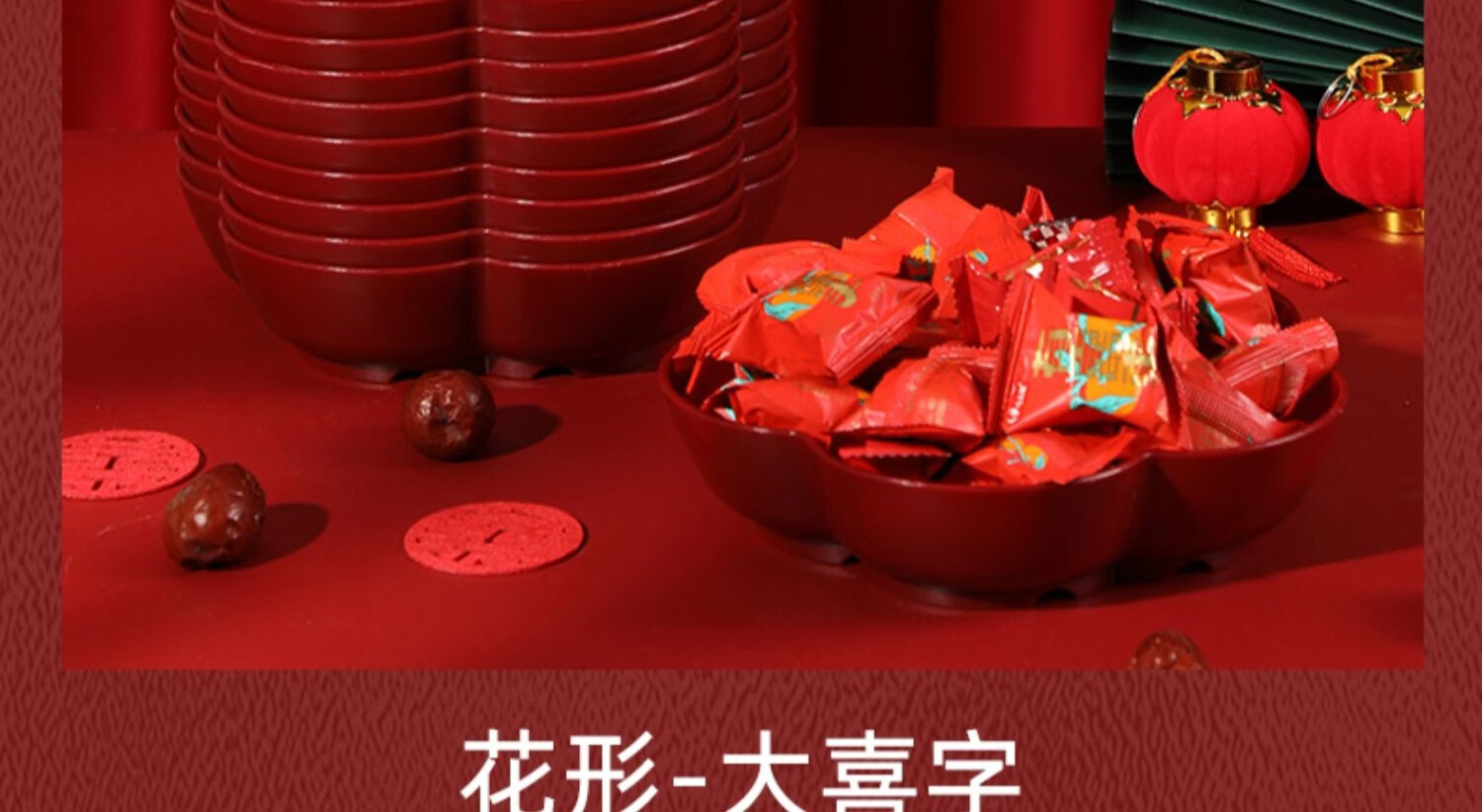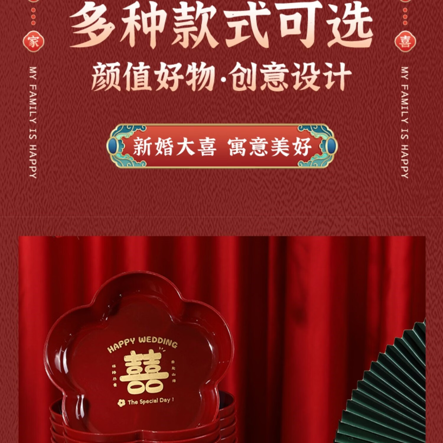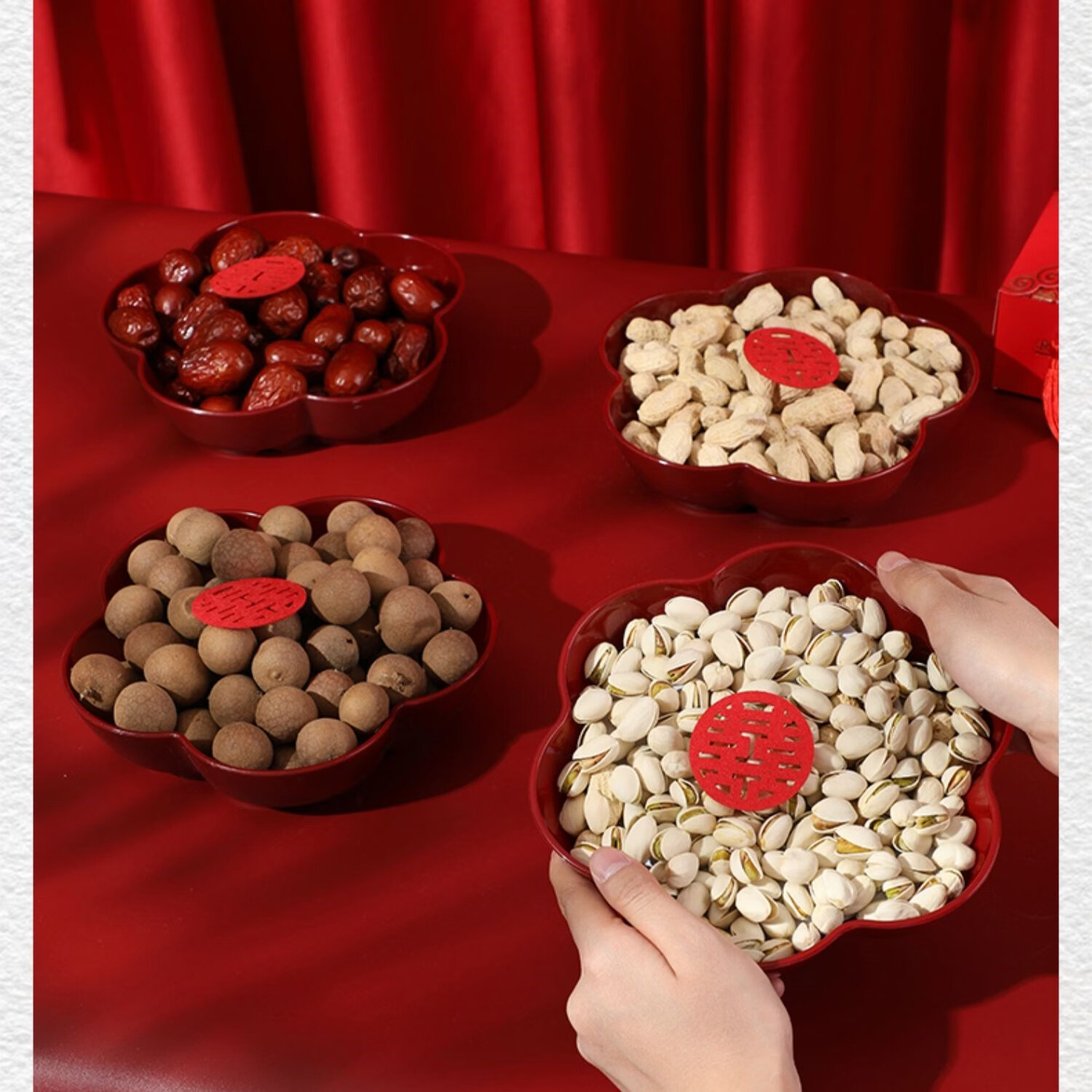 科鹿结婚果盘红色客厅喜糖盘订婚摆件喜盘子干果盘网红婚庆用品大全盘 【喜柿发生-4个】圆形