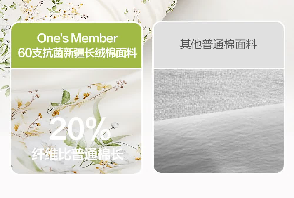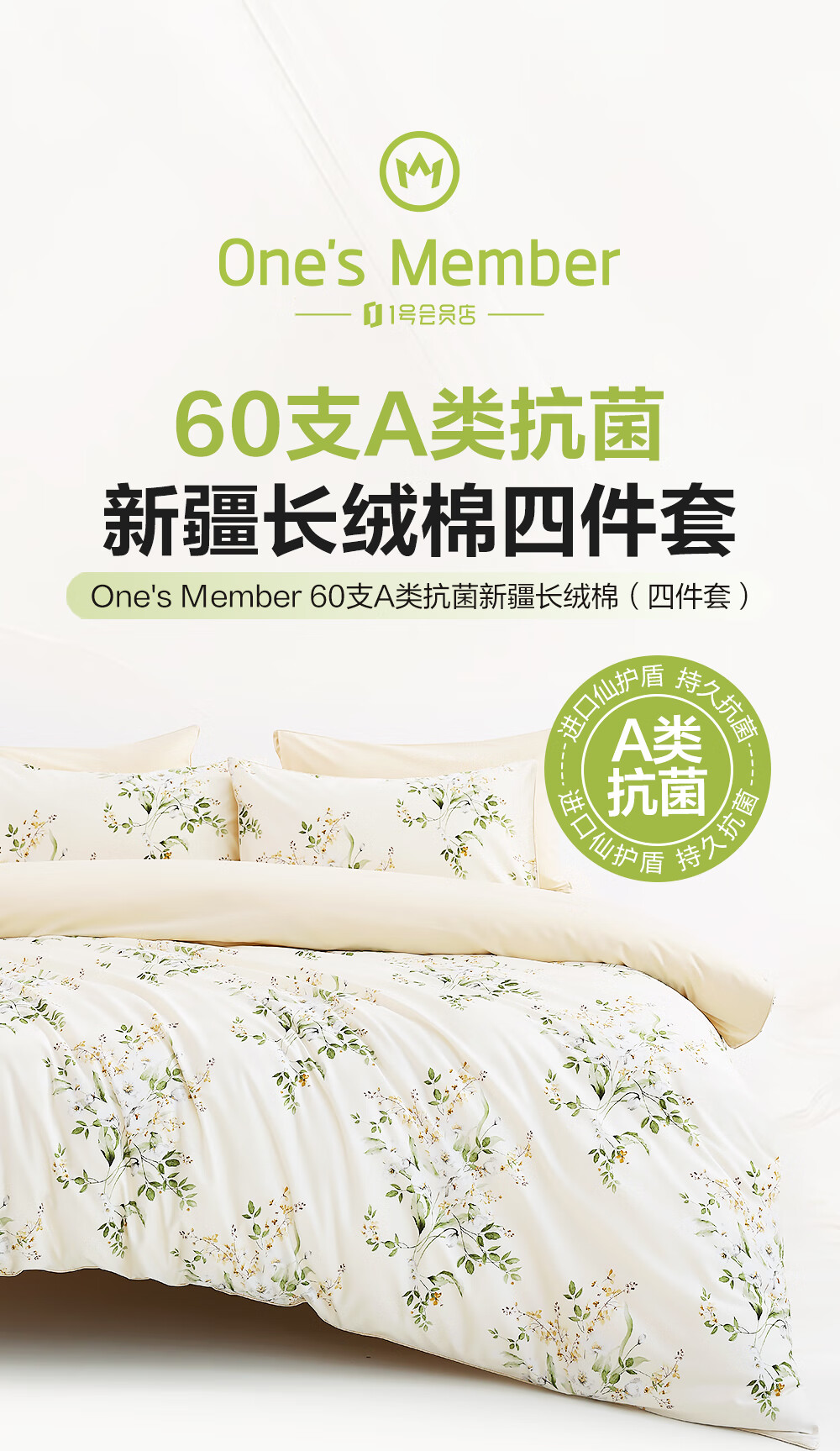 1号会员店(One's Member)60支A类抗菌新疆长绒棉四件套 丁香花间 1.8m床单款