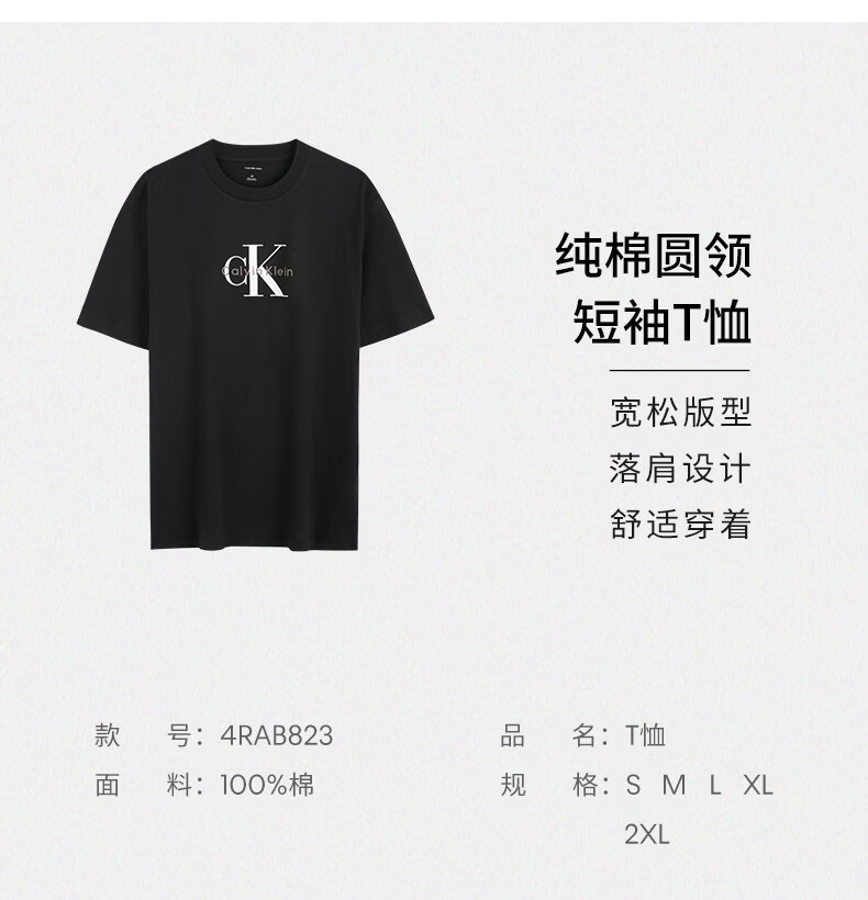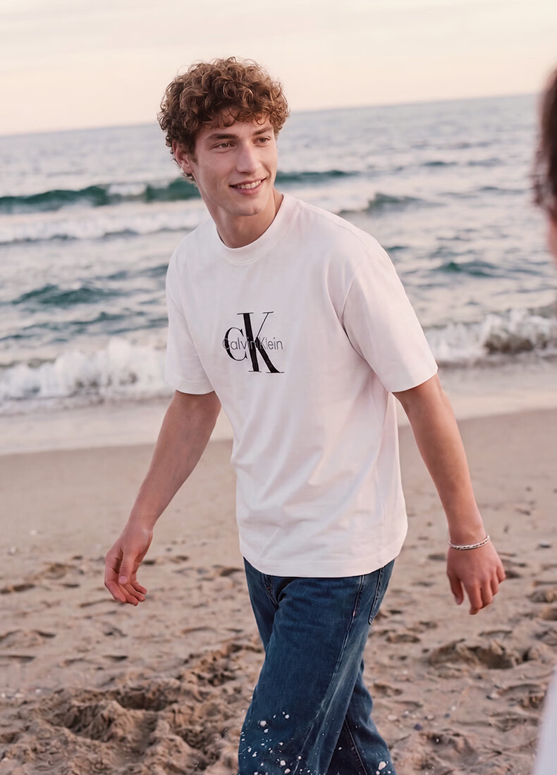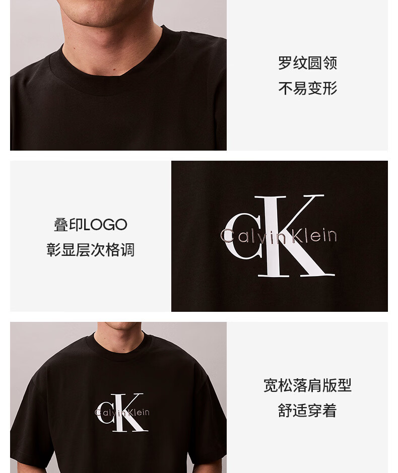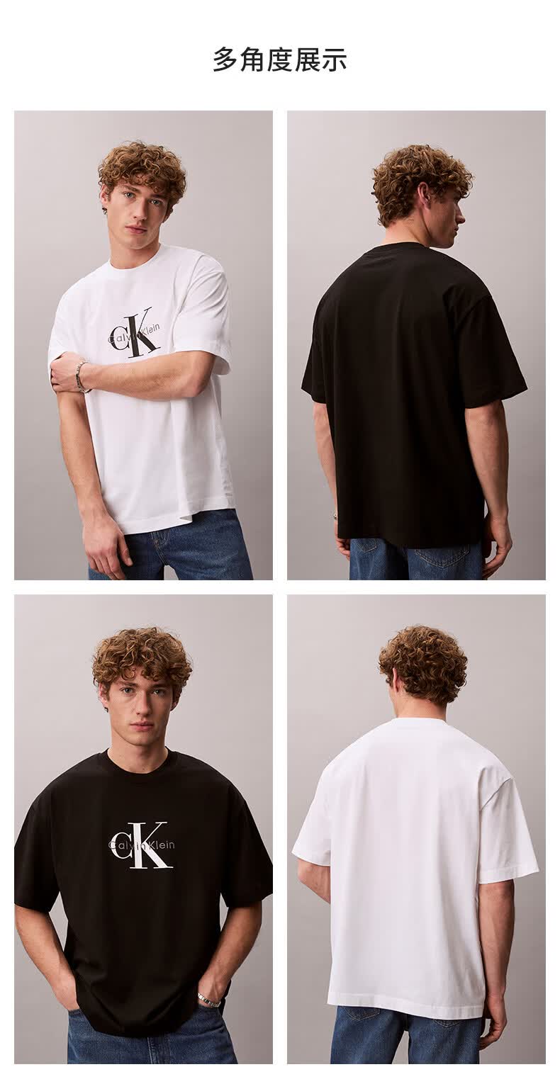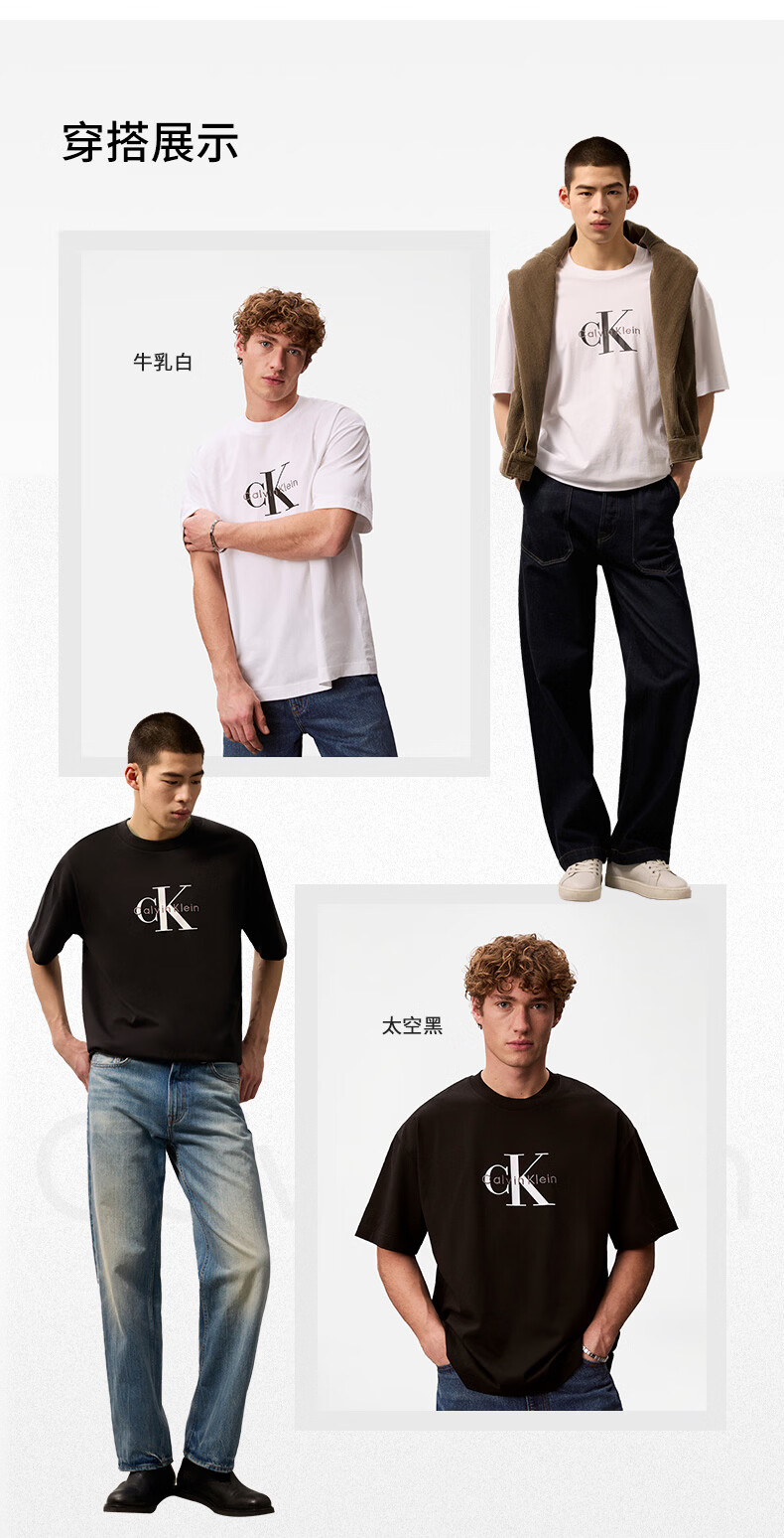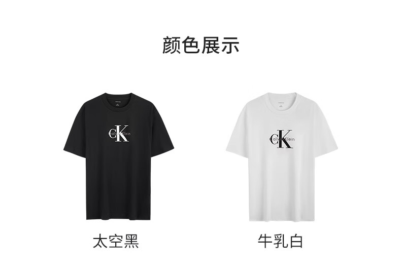 Calvin KleinJeans夏季男女情侣中性休闲通勤ck字母纯色纯棉宽松短袖T恤上衣 YAF-牛乳白 S