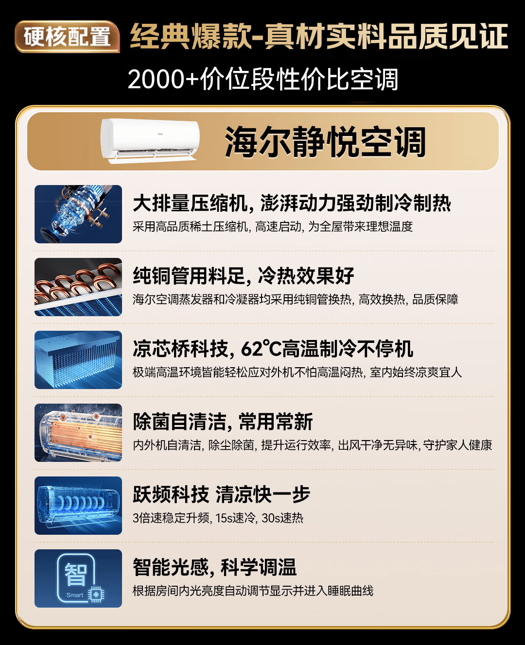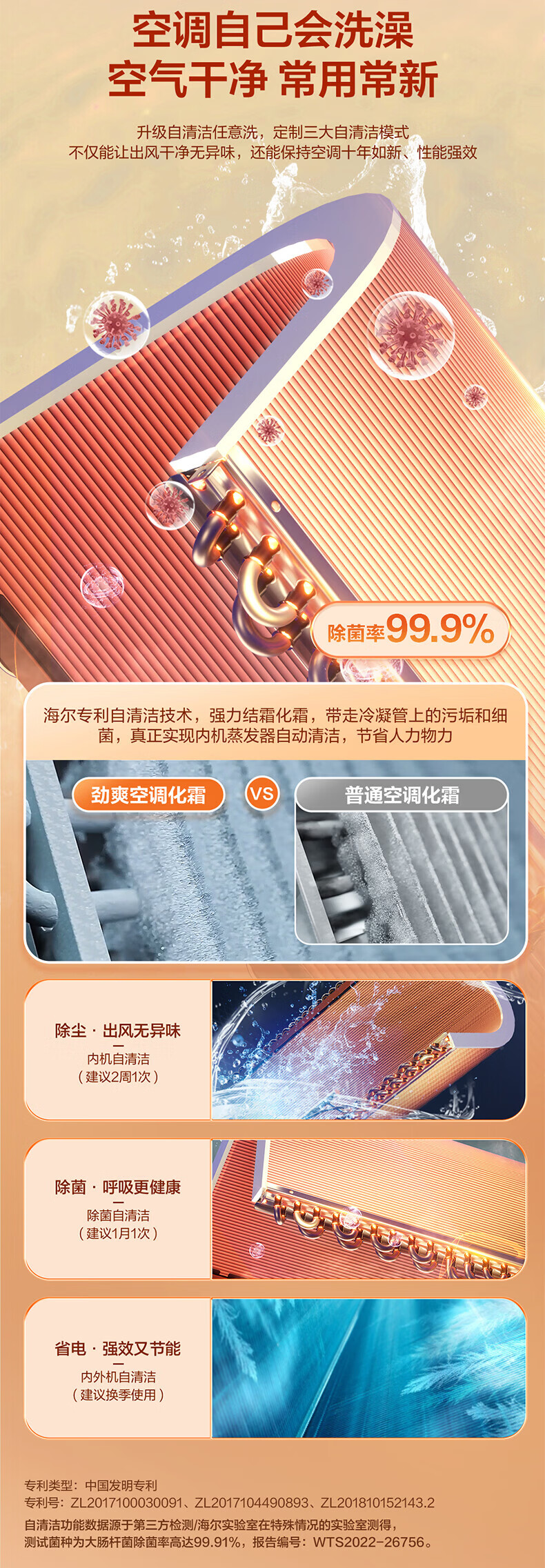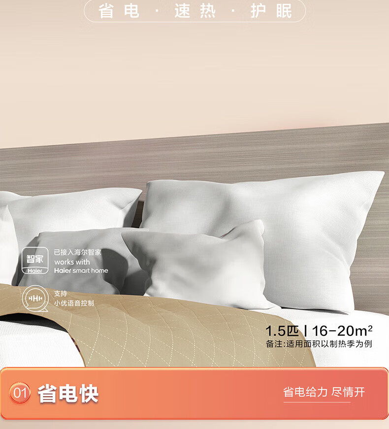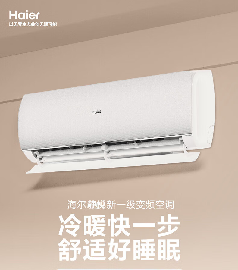 海尔空调1.5匹新一级能效变频省电循环大风量内外机健康自清洁防直吹壁挂式家用卧室出租屋挂机空调 1.5匹 【静悦系列省电机皇】15秒急速制冷
