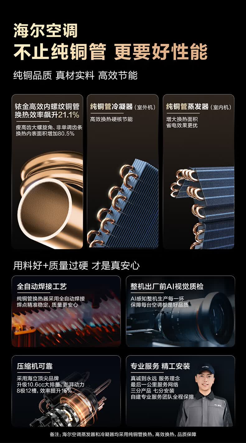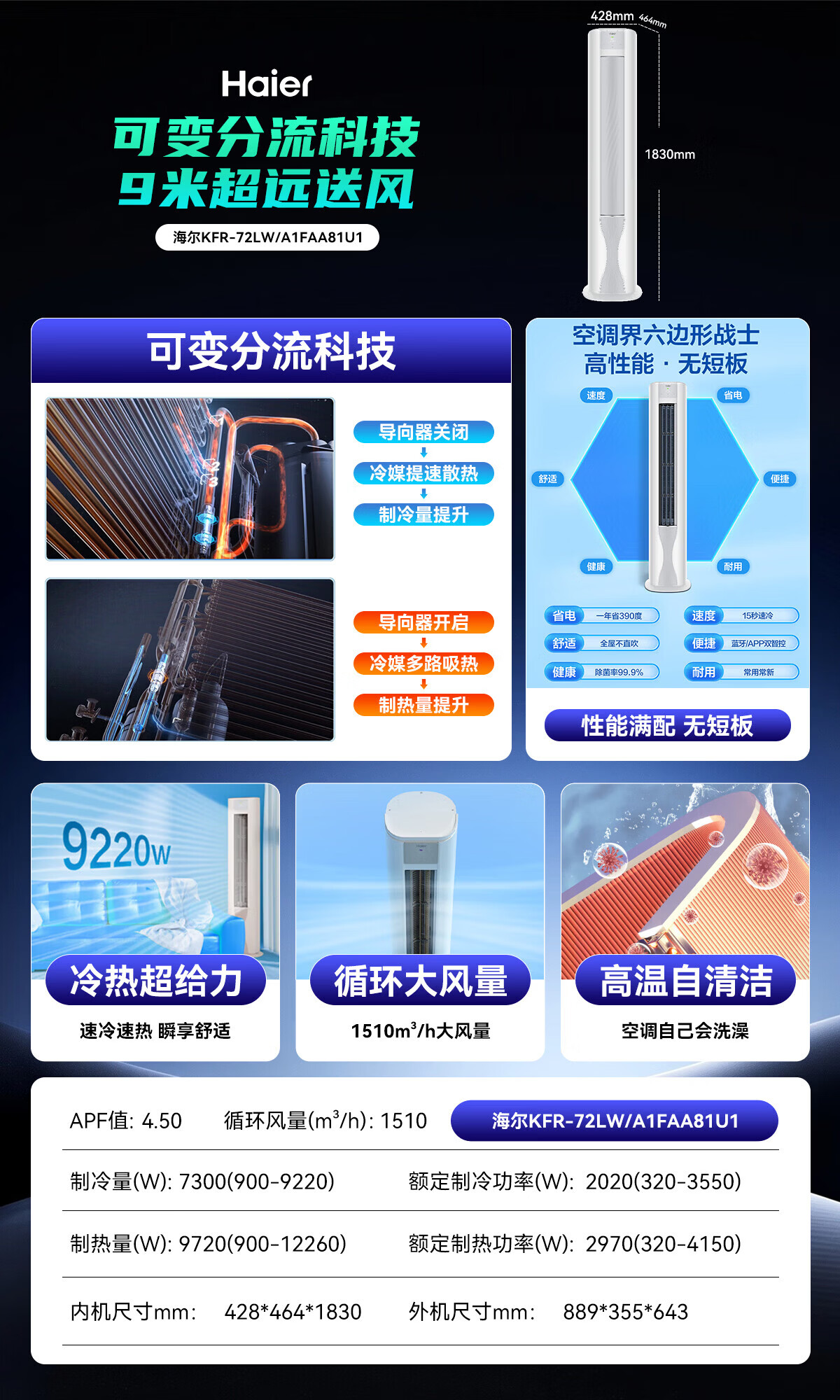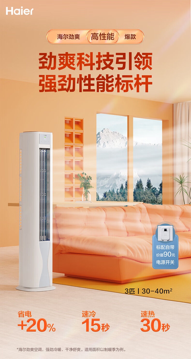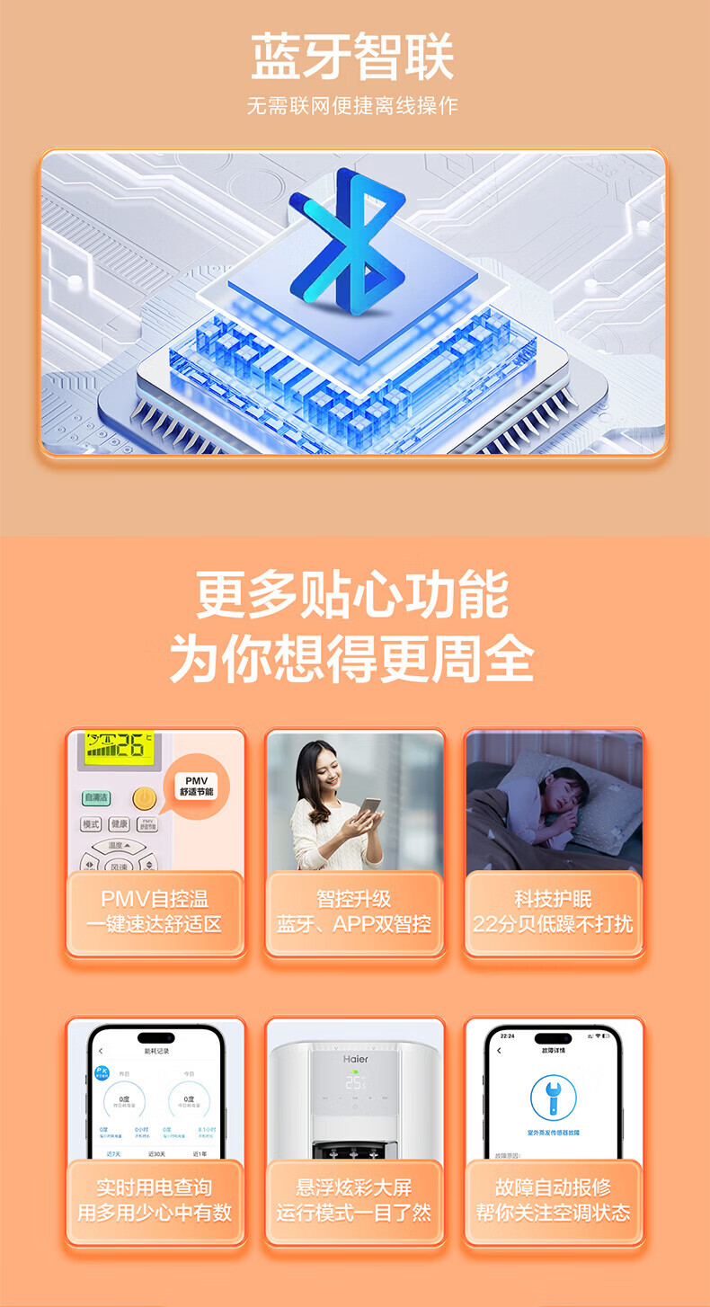 海尔空调1.5匹新一级能效变频省电循环大风量内外机健康自清洁防直吹壁挂式家用卧室出租屋挂机空调 1.5匹 【静悦系列省电机皇】15秒急速制冷