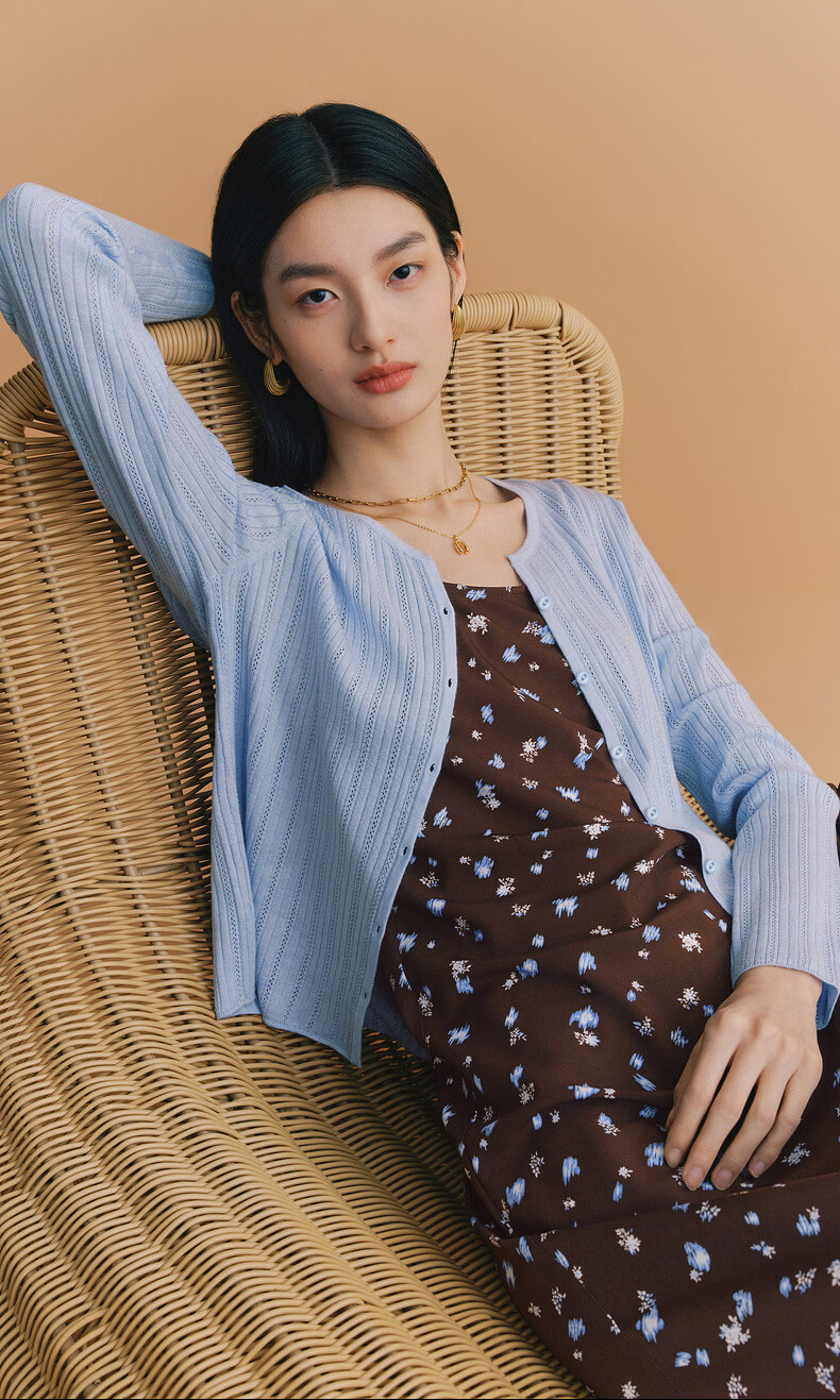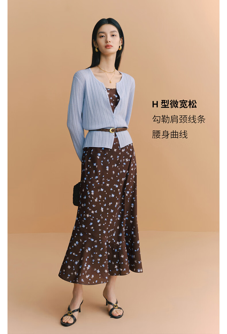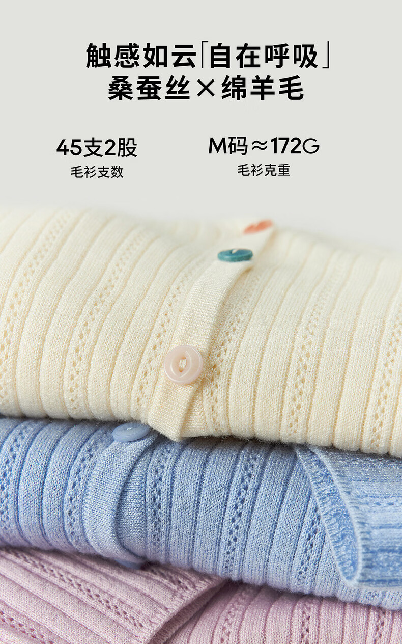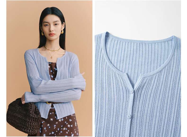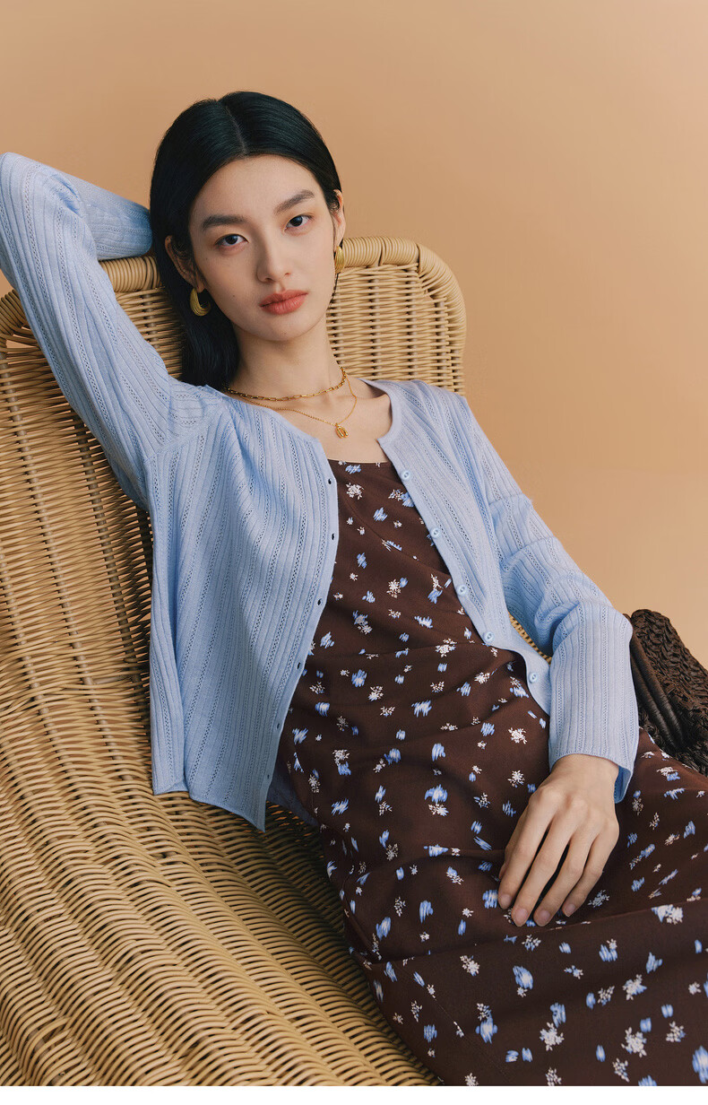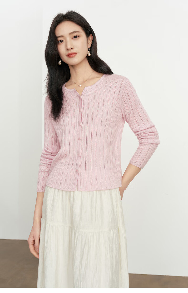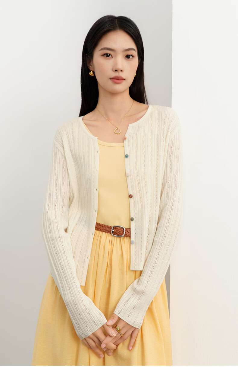伊芙丽(eifini)朱珠代言伊芙丽优雅镂空设计毛衫微宽松版型针织开衫26春季新款 米白 M