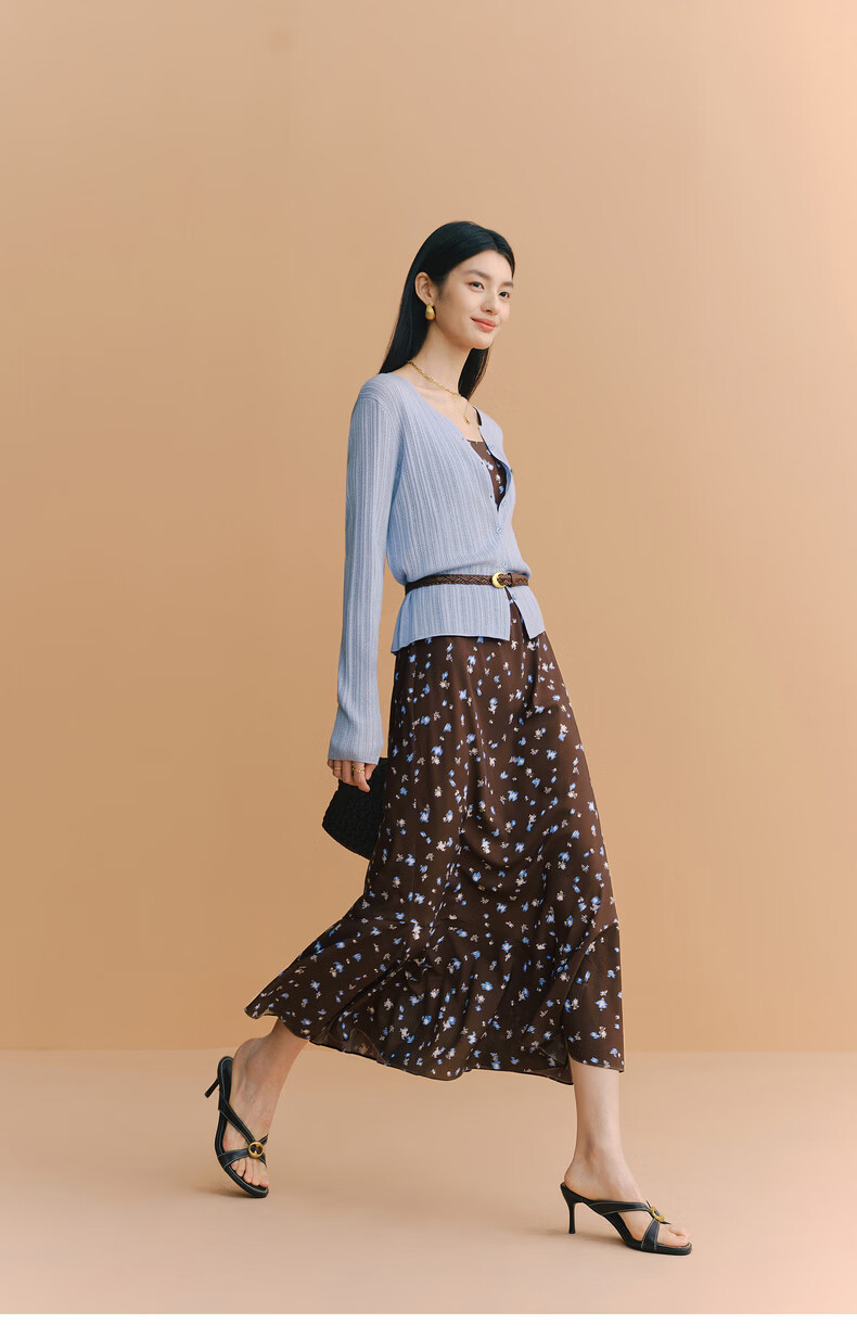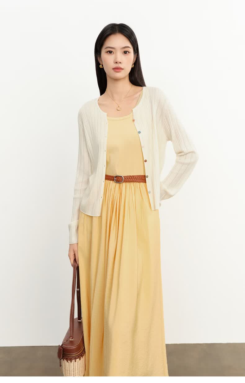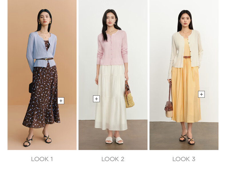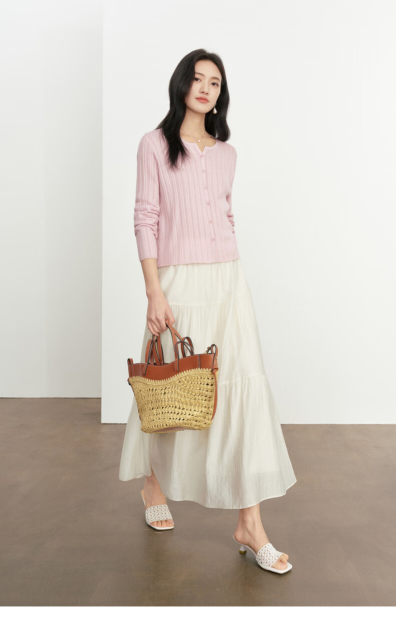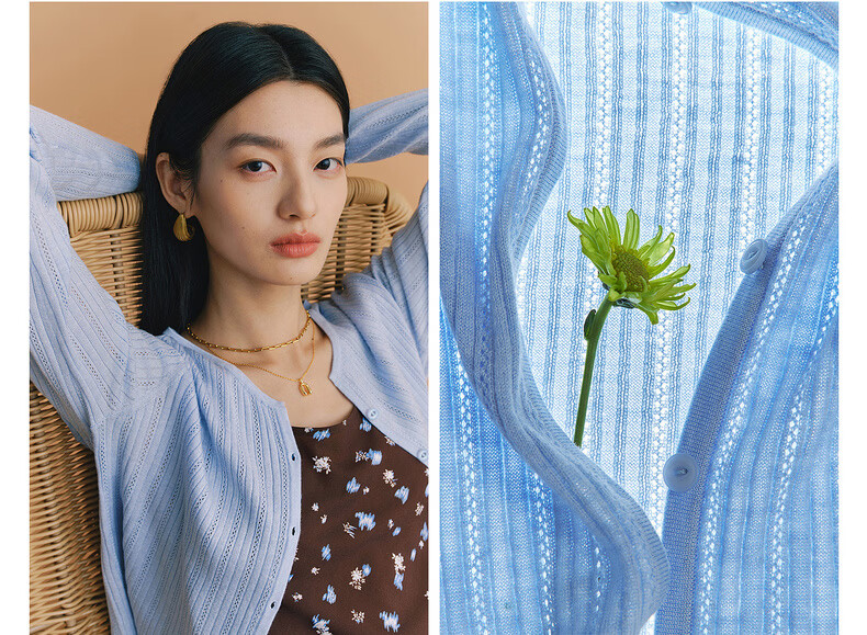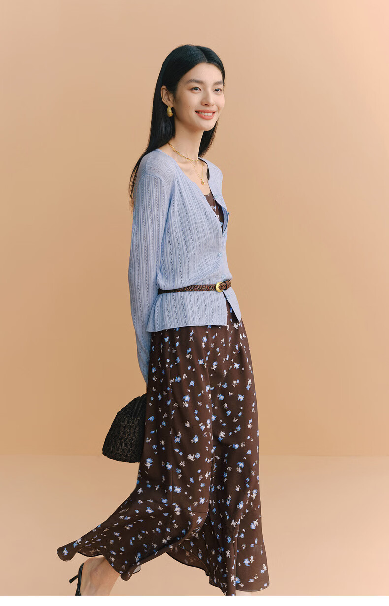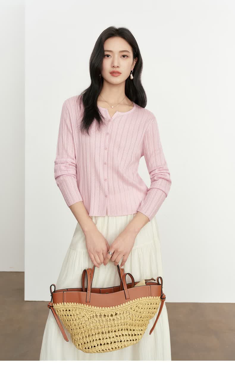 伊芙丽(eifini)朱珠代言伊芙丽优雅镂空设计毛衫微宽松版型针织开衫26春季新款 米白 M