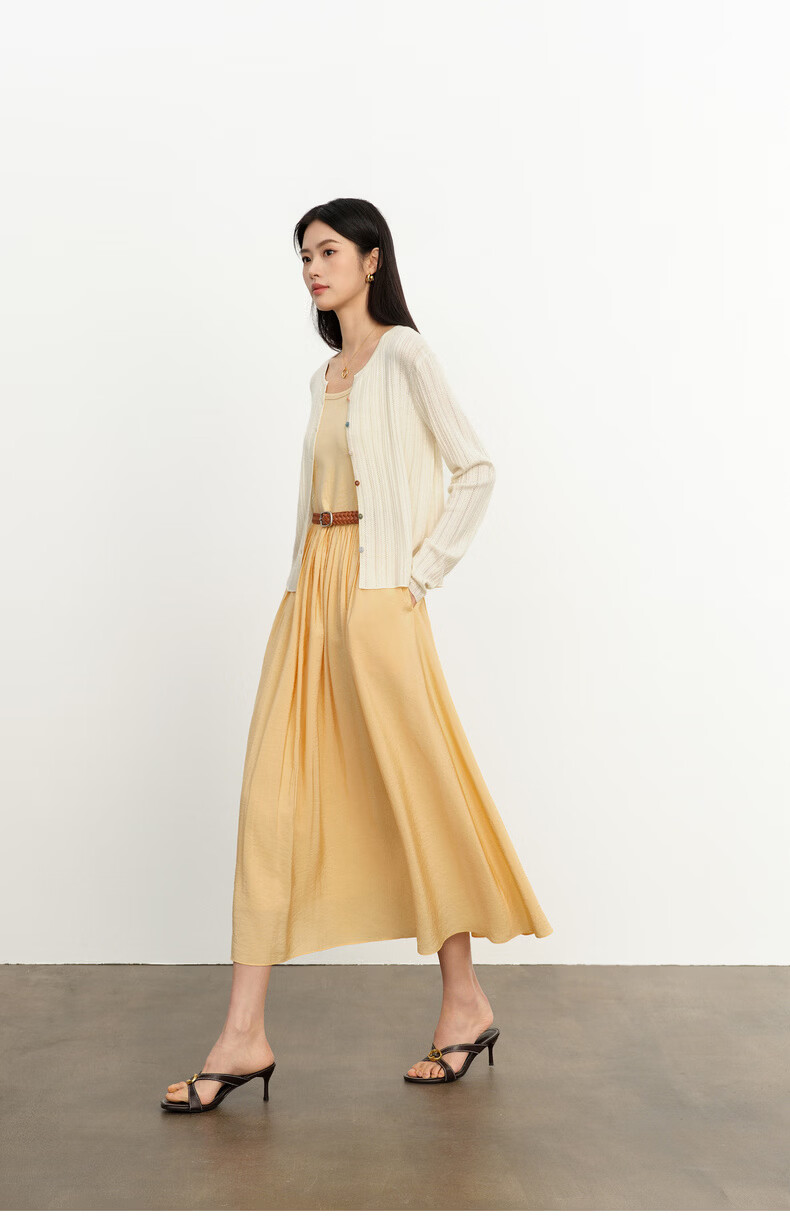 三彩2026春季新款圆领无袖收腰连衣裙三穿A字裙长裙气质优雅M