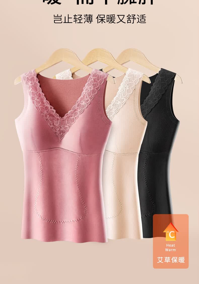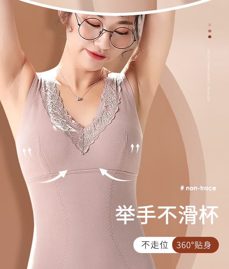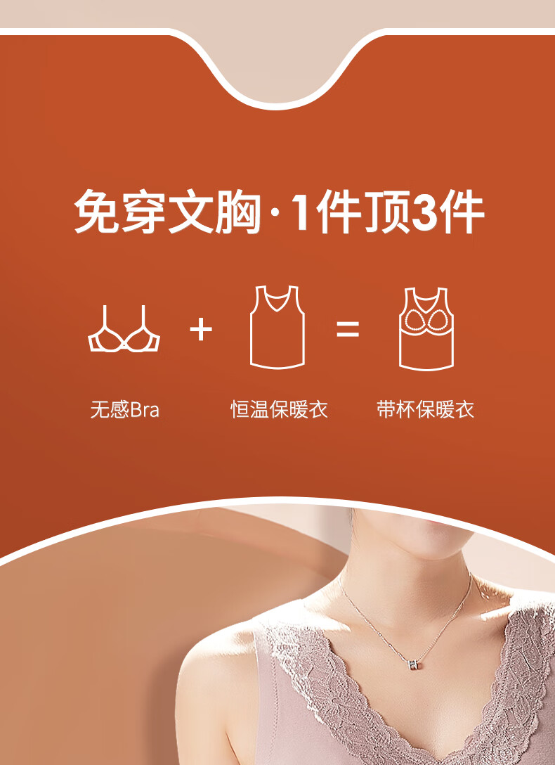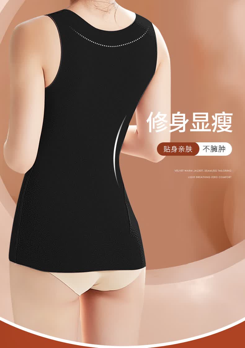 【艾草暖宫】保暖背心女加绒加厚免穿文胸修身保暖内衣秋冬季 1件装:棕色 XL(建议80-100斤)