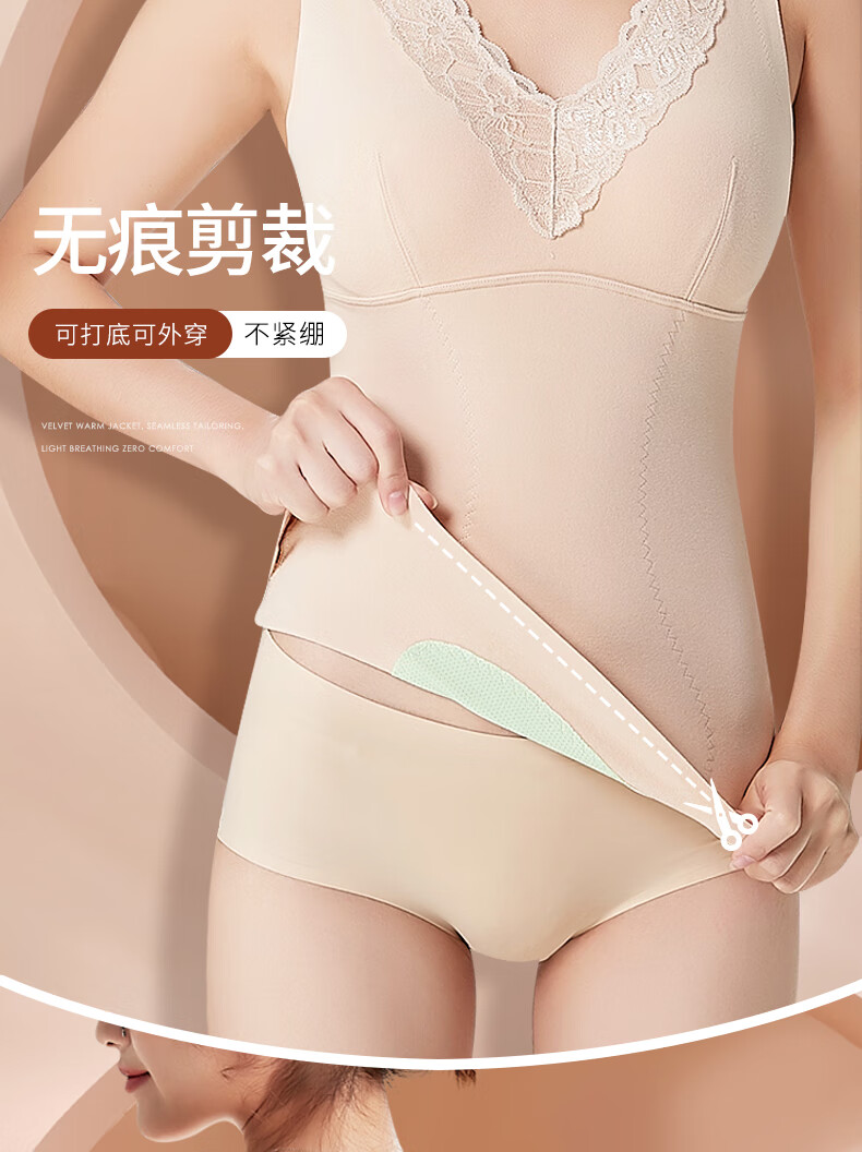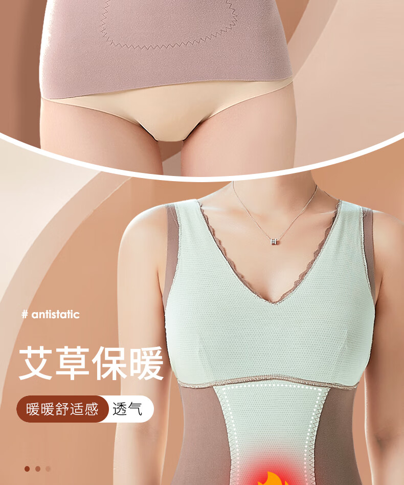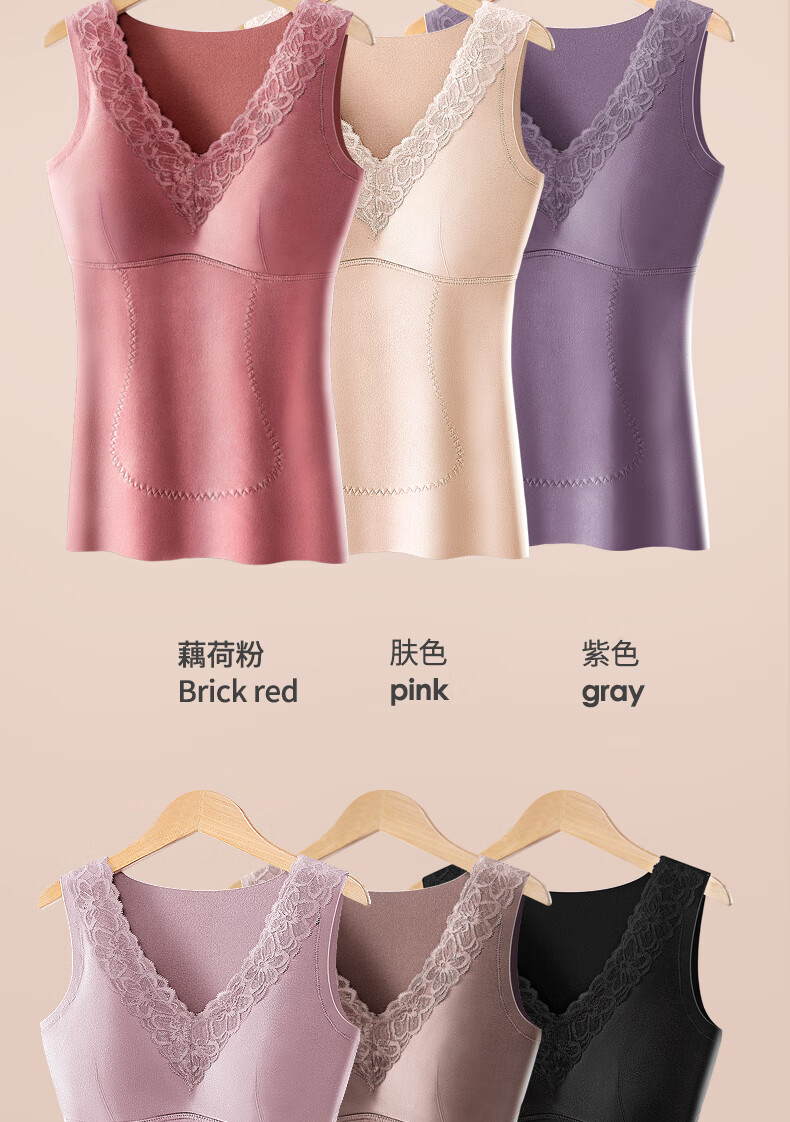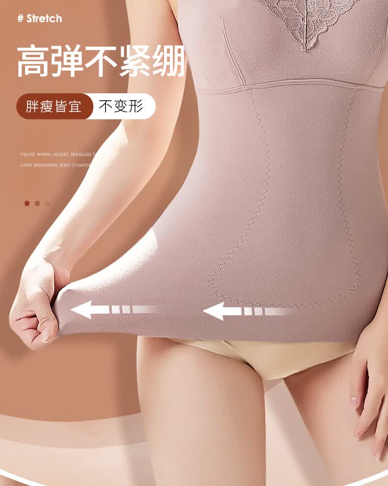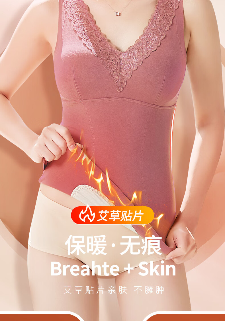 【艾草暖宫】保暖背心女加绒加厚免穿文胸修身保暖内衣秋冬季 1件装:棕色 XL(建议80-100斤)