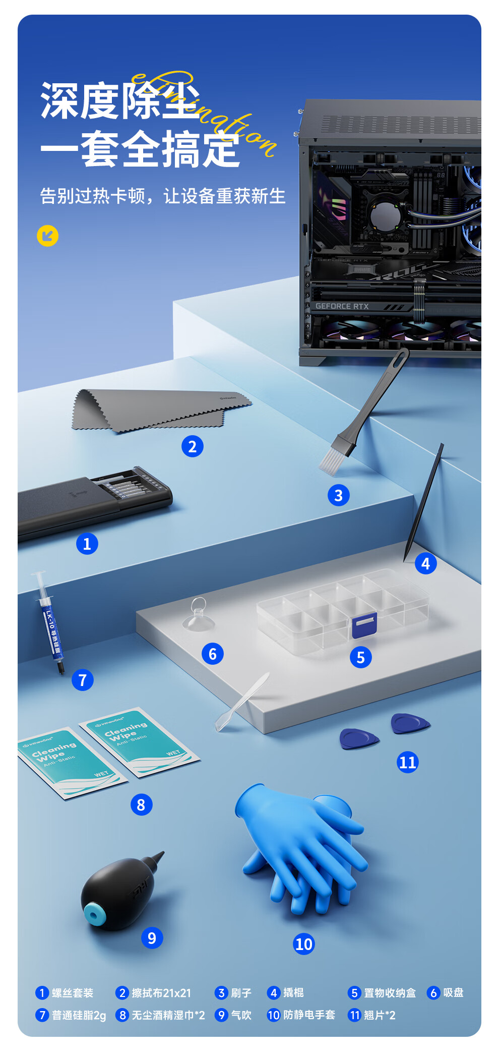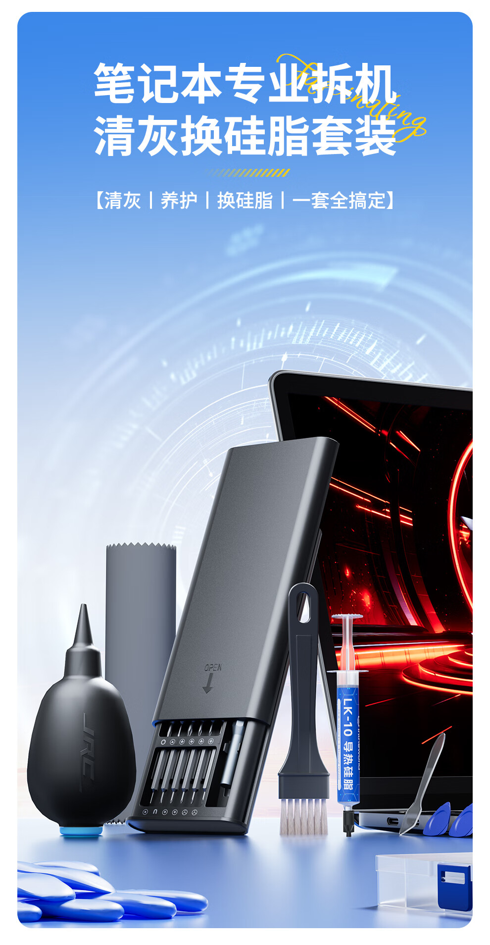 极川 笔记本电脑拆机清灰工具套装加换CPU散热硅脂拆卸游戏本电脑螺丝刀清理风扇灰尘除尘神器防静电