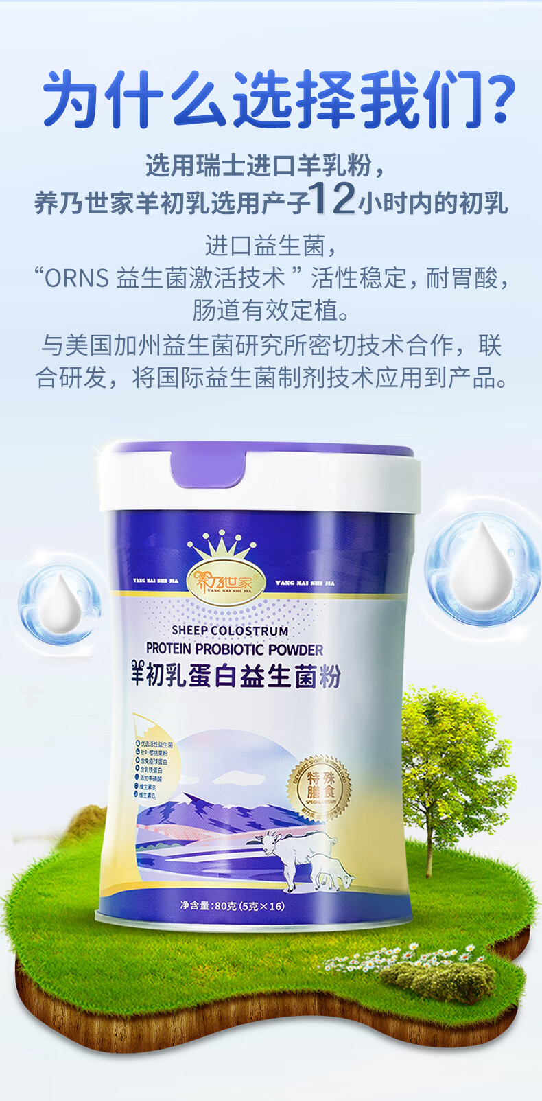 养乃世家羊初乳蛋白益生菌粉中老年成人特殊膳食羊奶粉乳铁蛋白不添加蔗糖