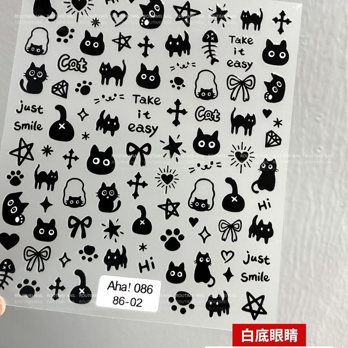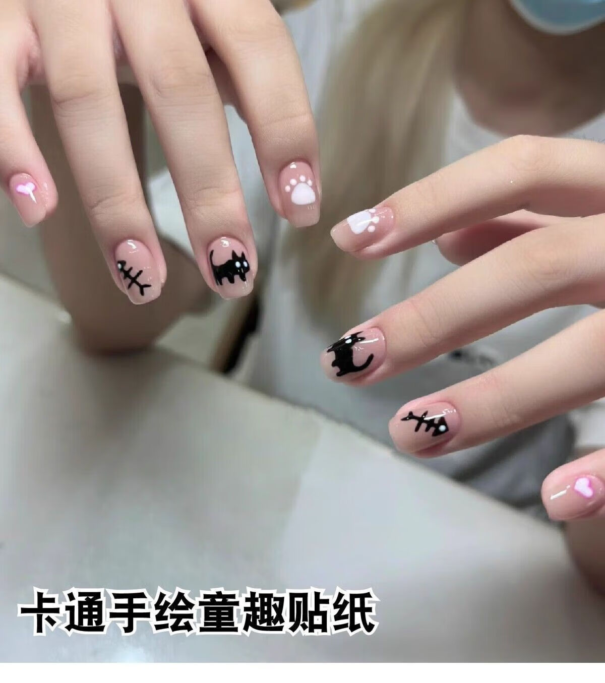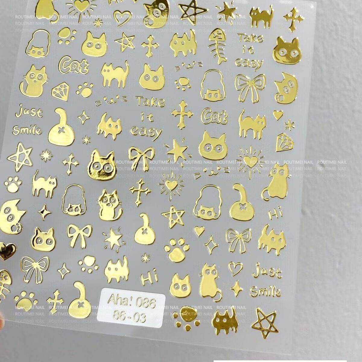 猫咪贴纸美甲新款可爱卡通猫小猫咪背胶美甲贴纸diy玩具贴纸 美甲贴纸 金色猫咪-1张