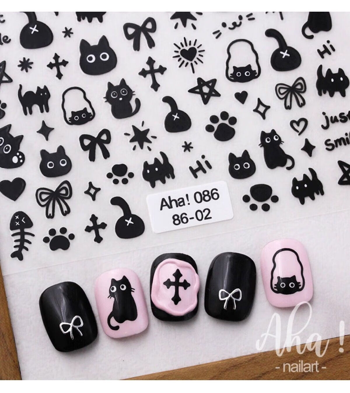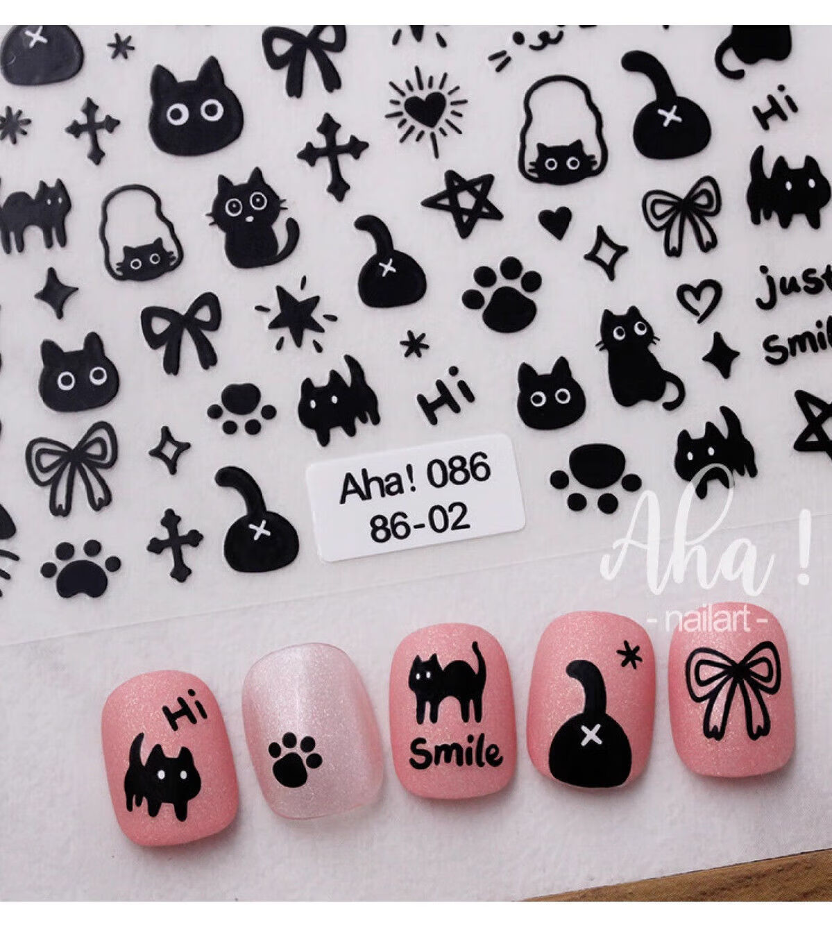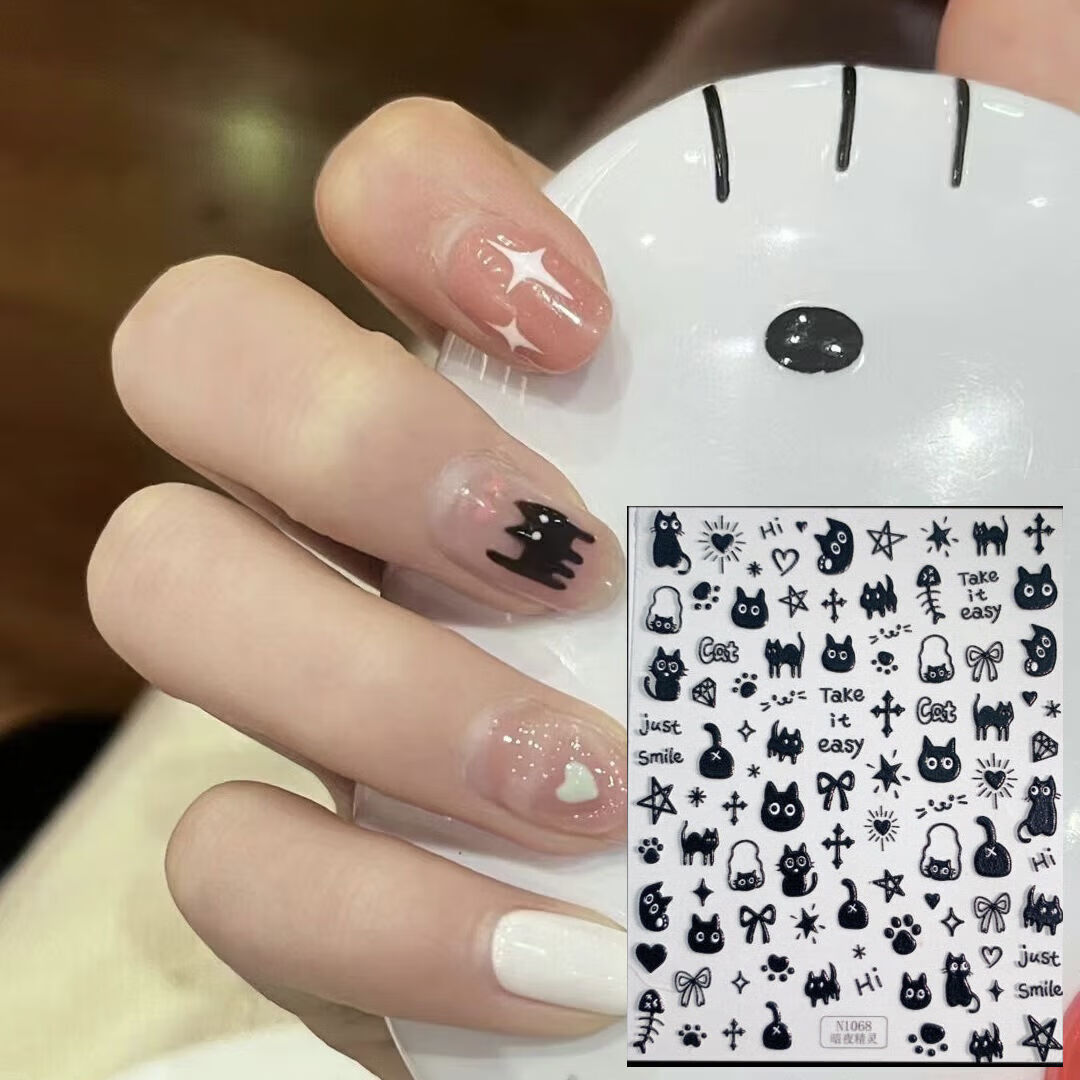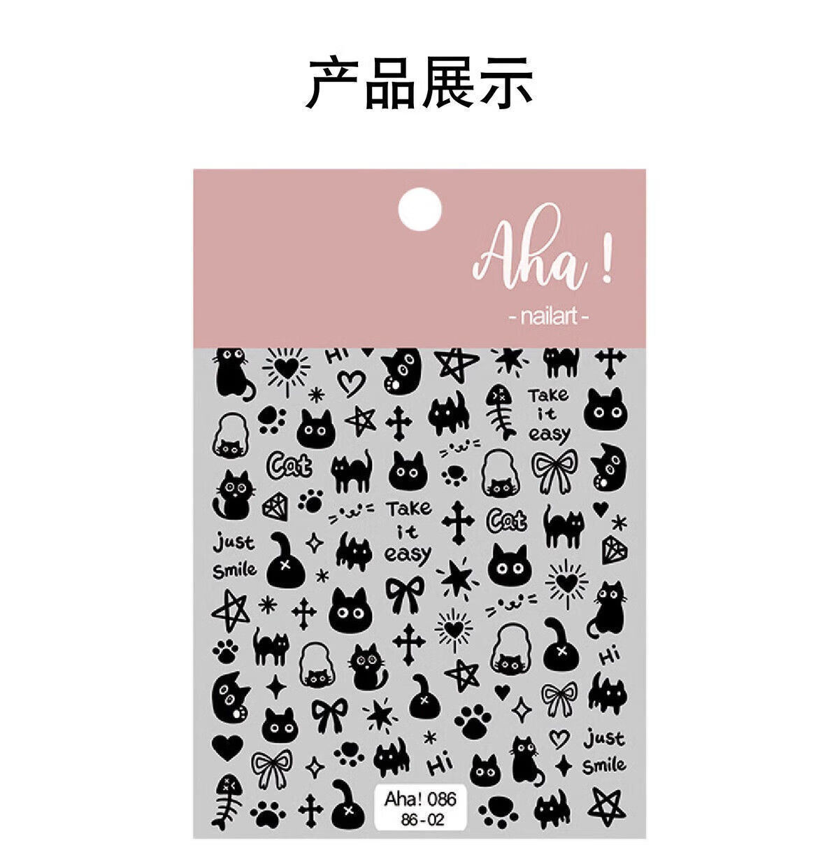 猫咪贴纸美甲新款可爱卡通猫小猫咪背胶美甲贴纸diy玩具贴纸 美甲贴纸 金色猫咪-1张