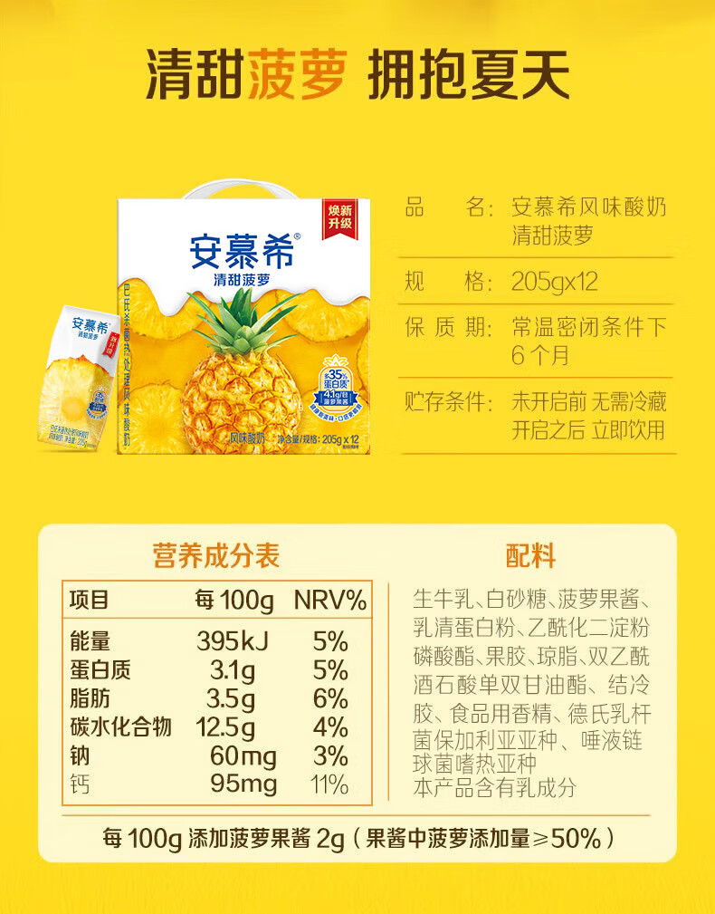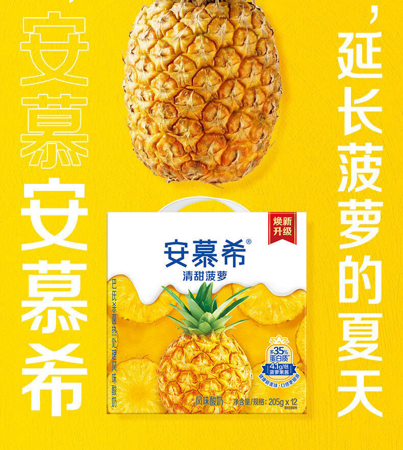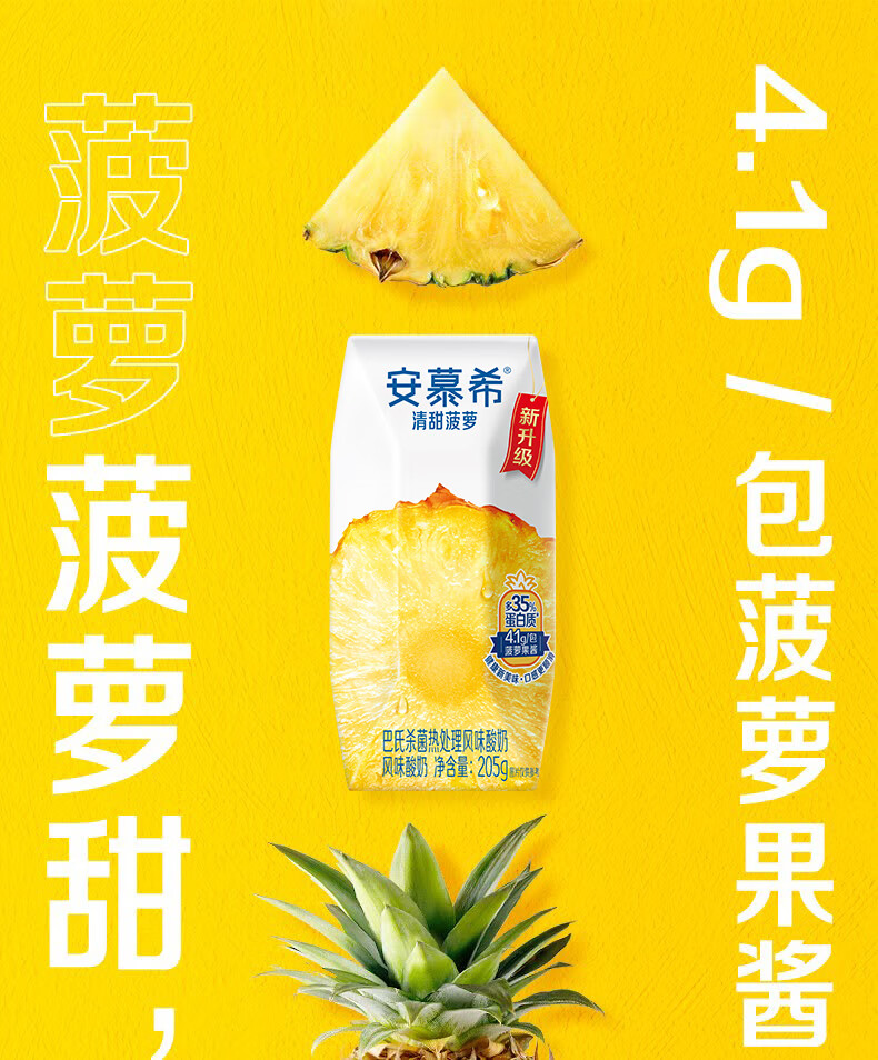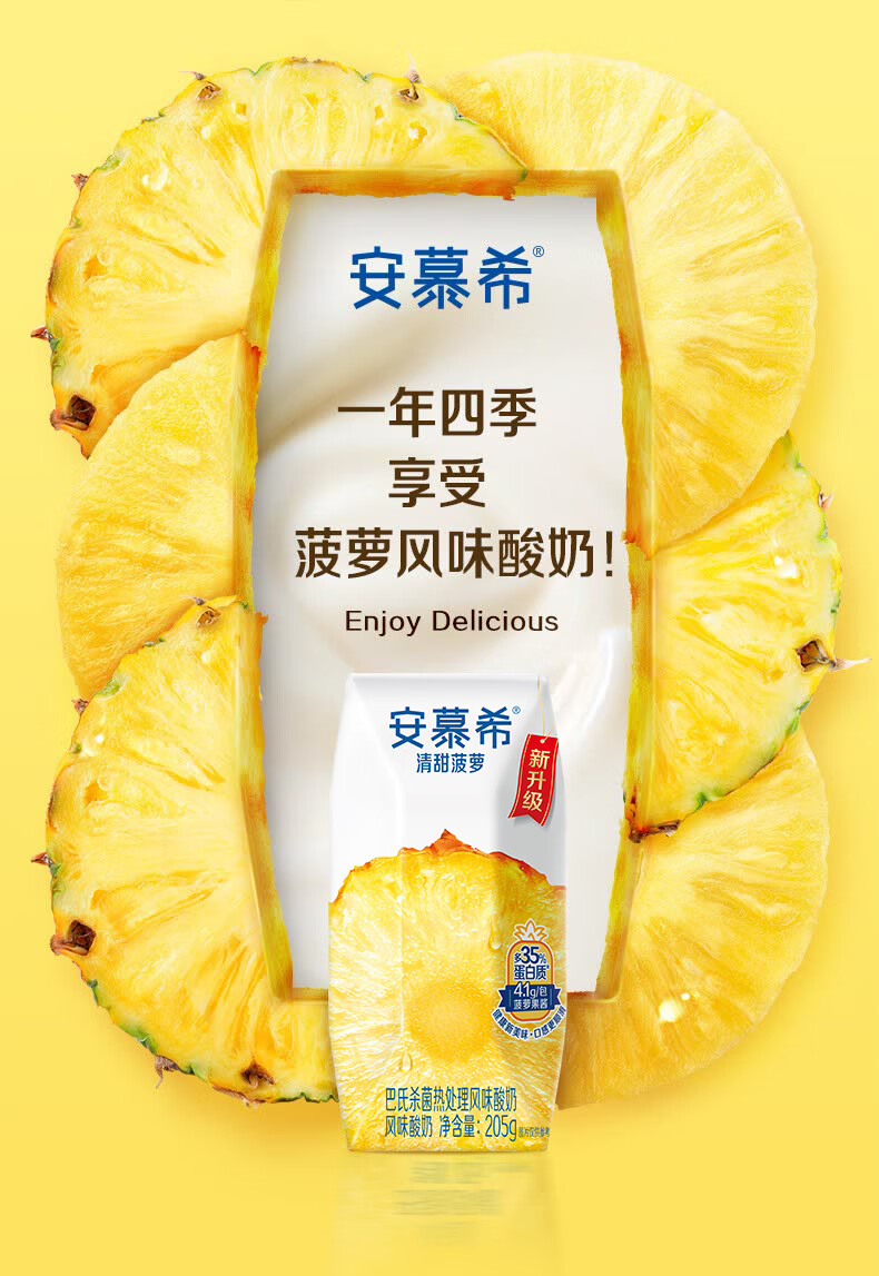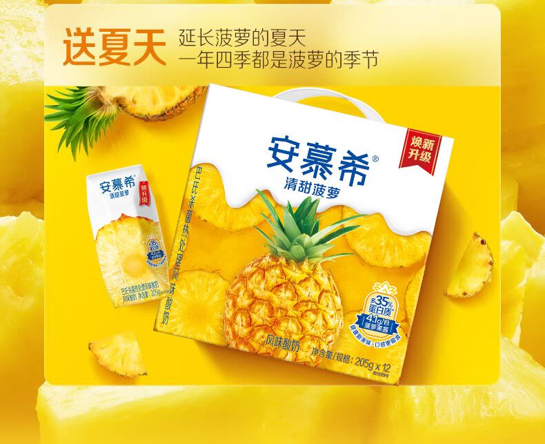 伊利安慕希清甜菠萝味常温酸奶整箱生牛乳牛奶乳品儿童早餐礼品礼盒装 菠萝酸奶205gx12盒x1箱9月产