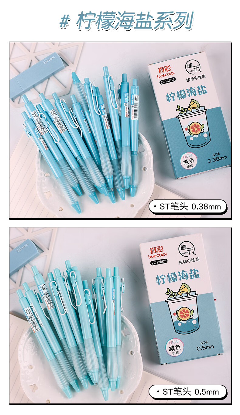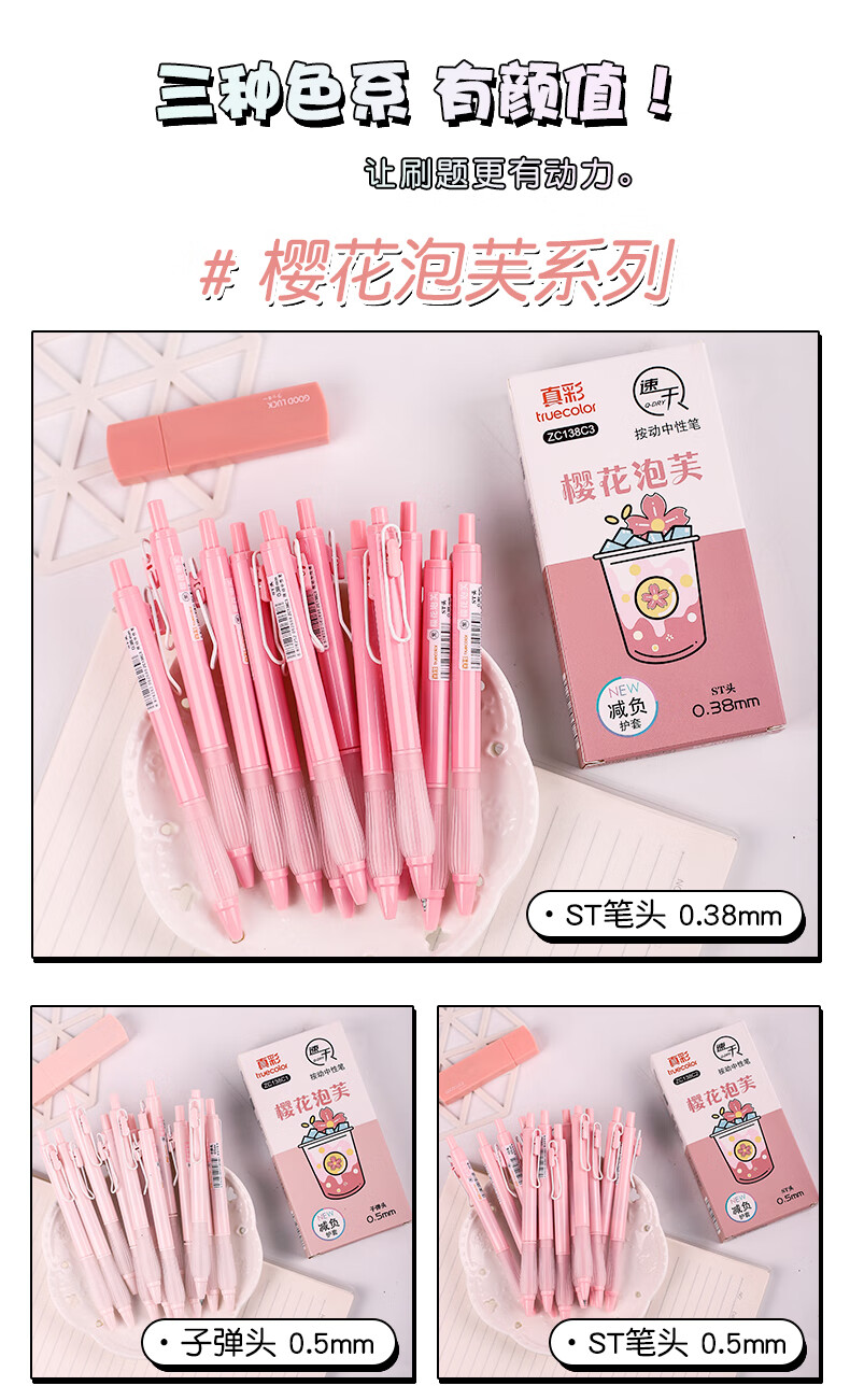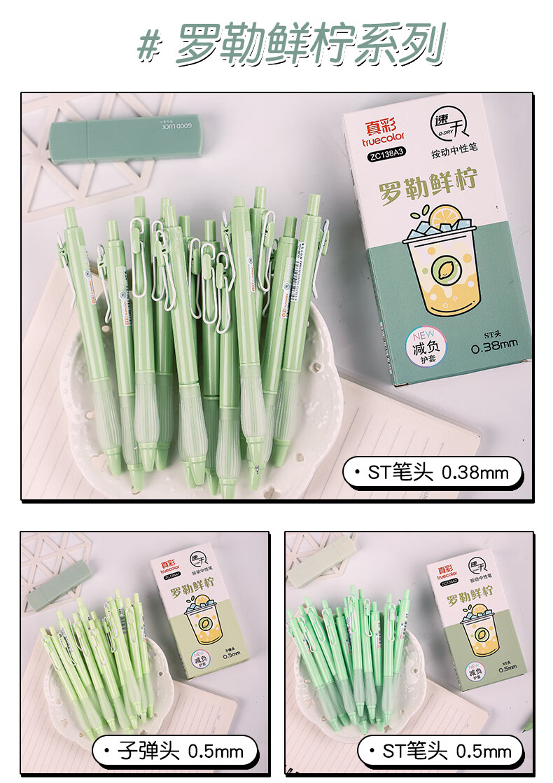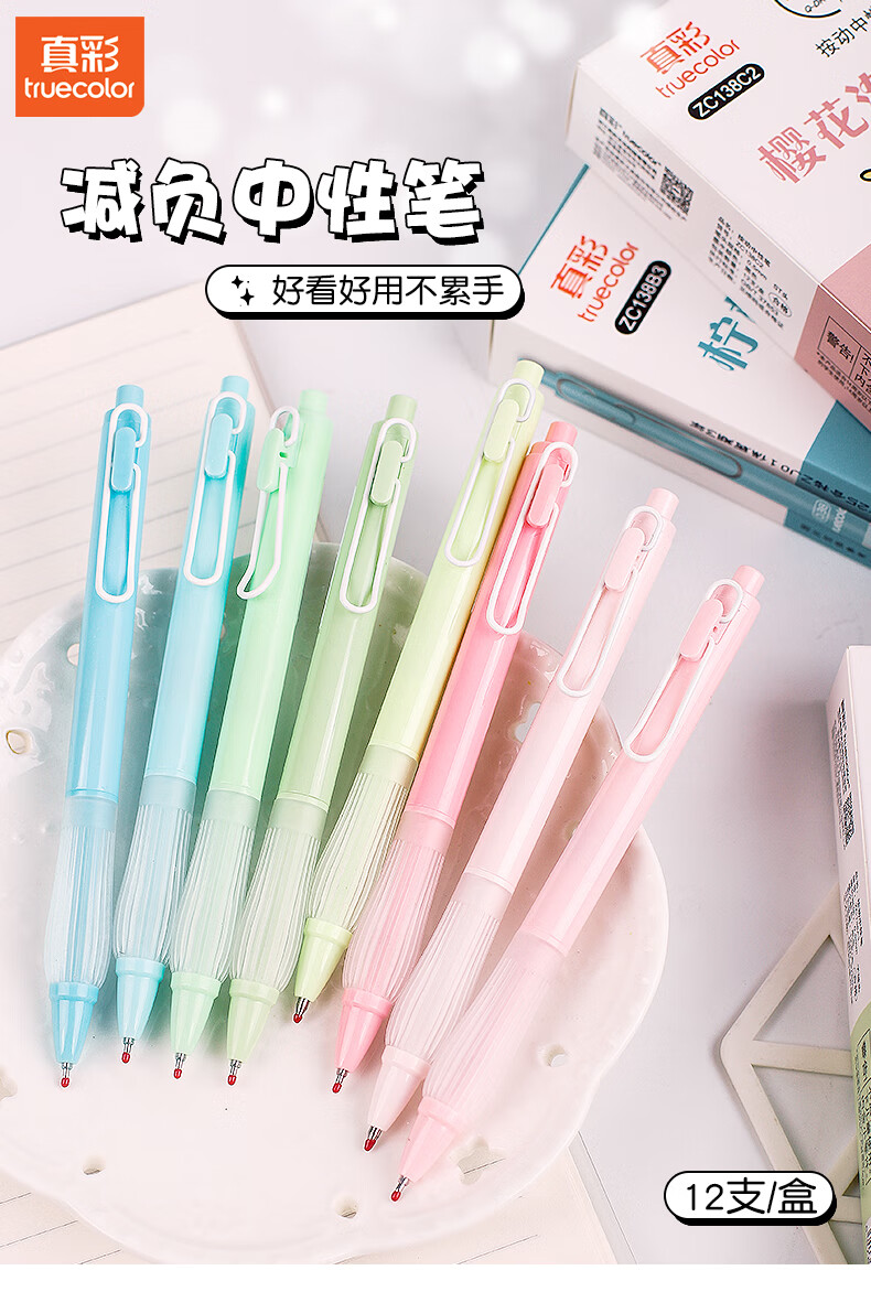 真彩(TRUECOLOR)0.5mm黑色减负笔按动中性笔减压解压学生考试刷题笔签字笔速干ST头日系ins高颜值 3支/盒ZC138A
