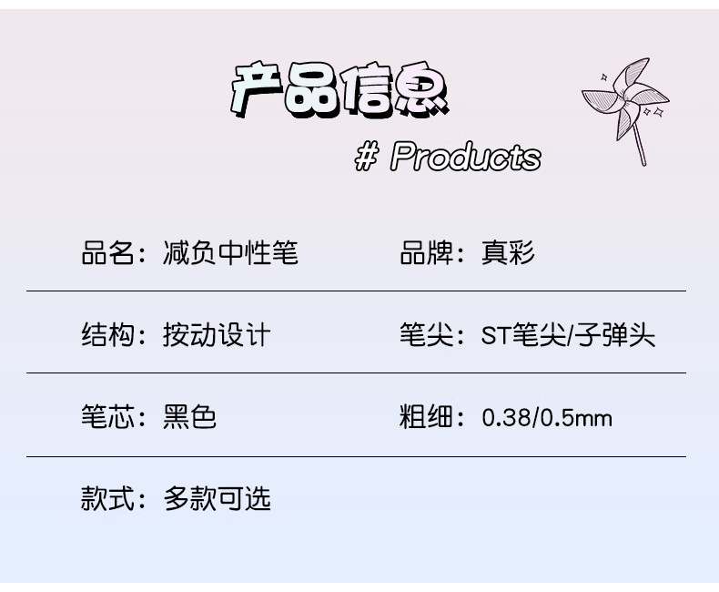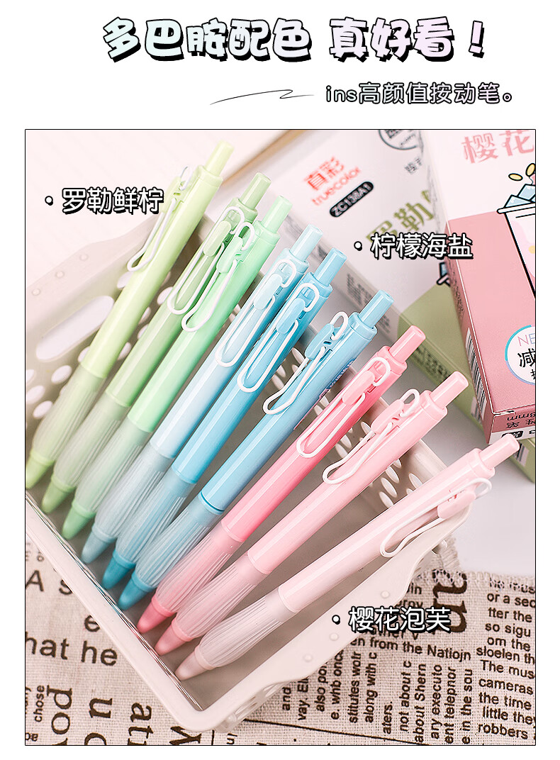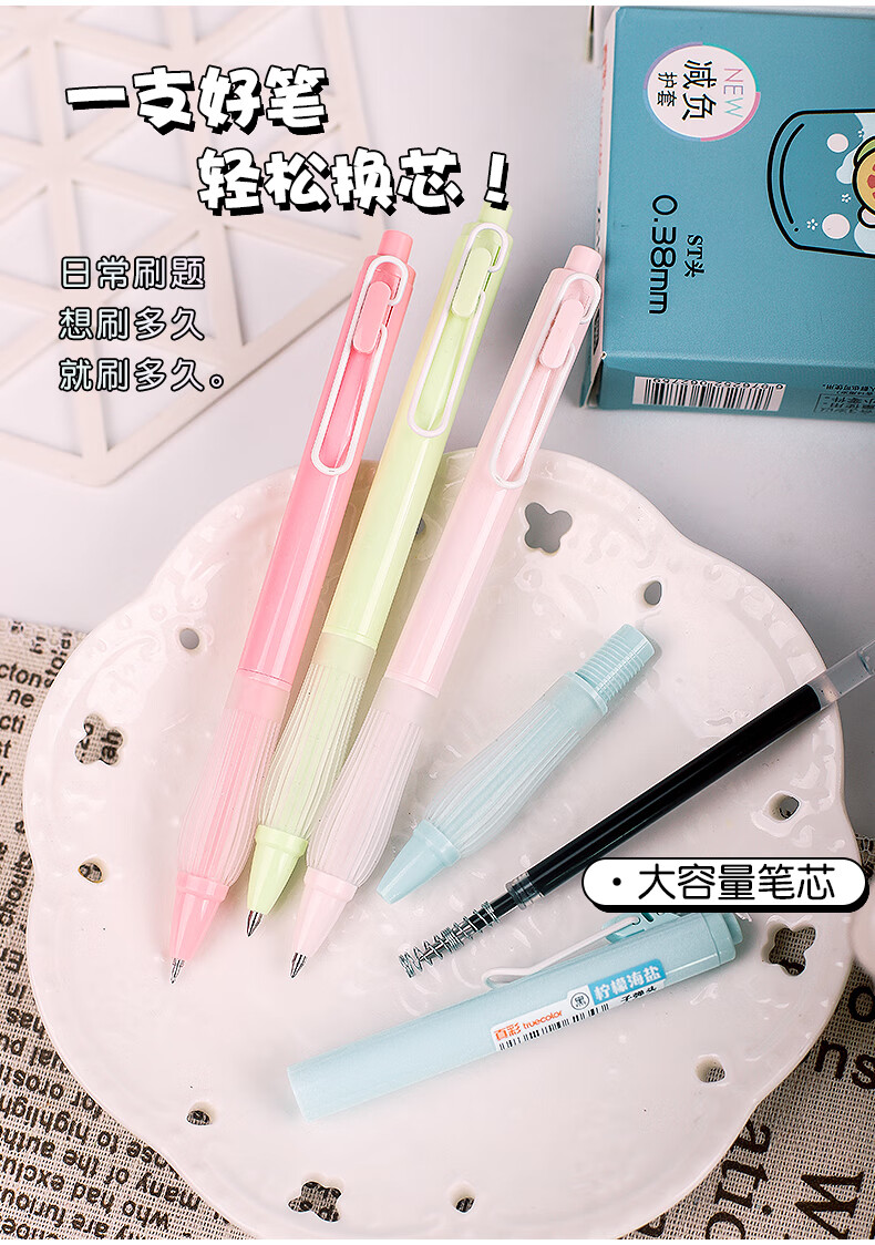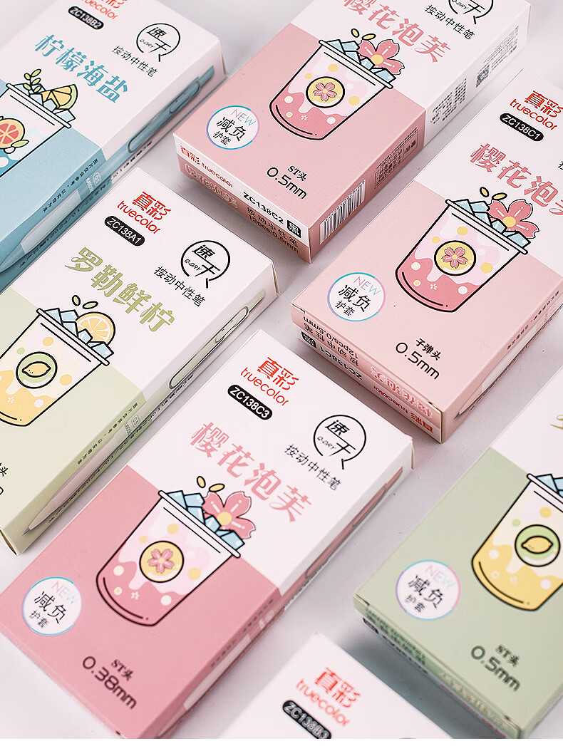 真彩(TRUECOLOR)0.5mm黑色减负笔按动中性笔减压解压学生考试刷题笔签字笔速干ST头日系ins高颜值 3支/盒ZC138A