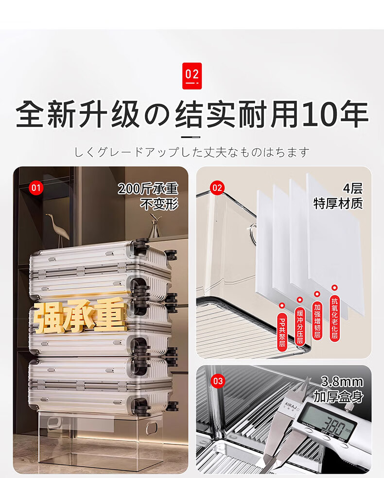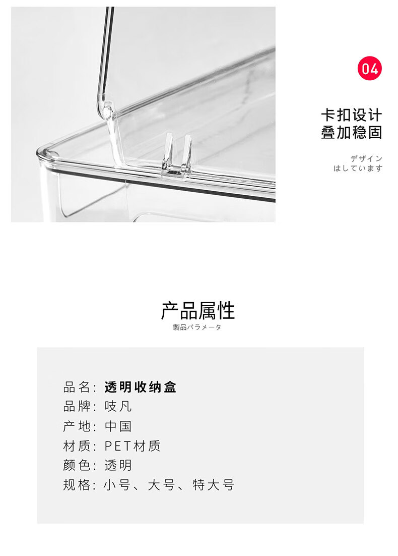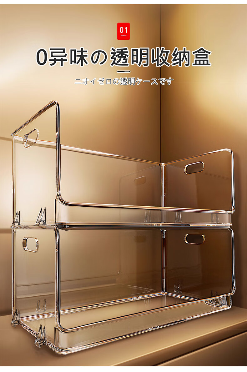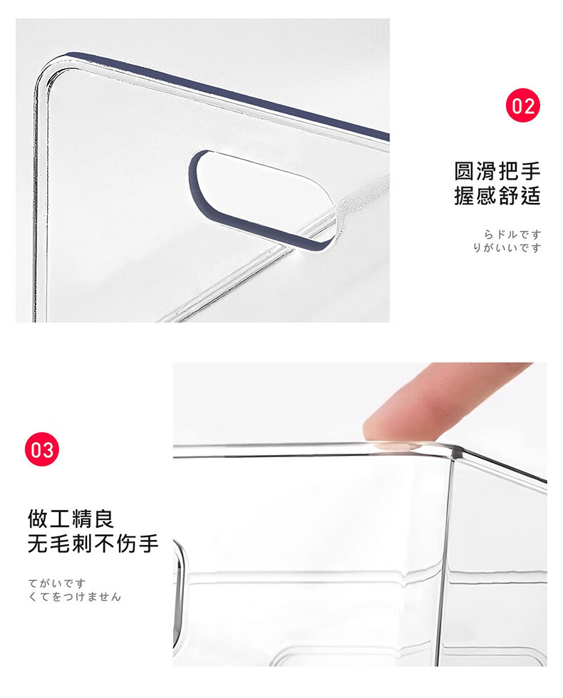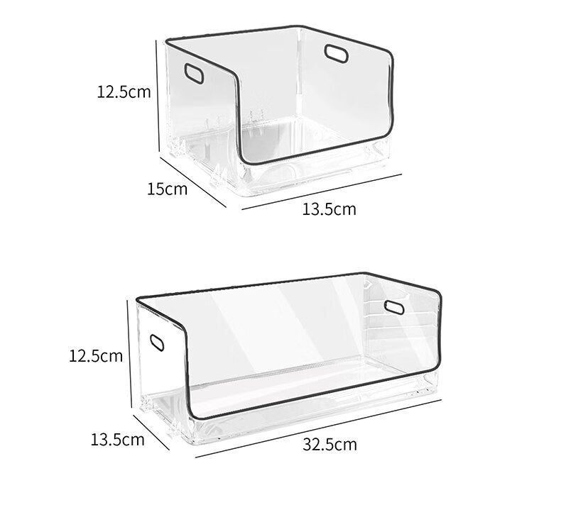 吱凡日本透明收纳盒平口亚克力长方形盒桌面杂物零食化妆品香水收纳筐 【特大号】2个装【特厚】