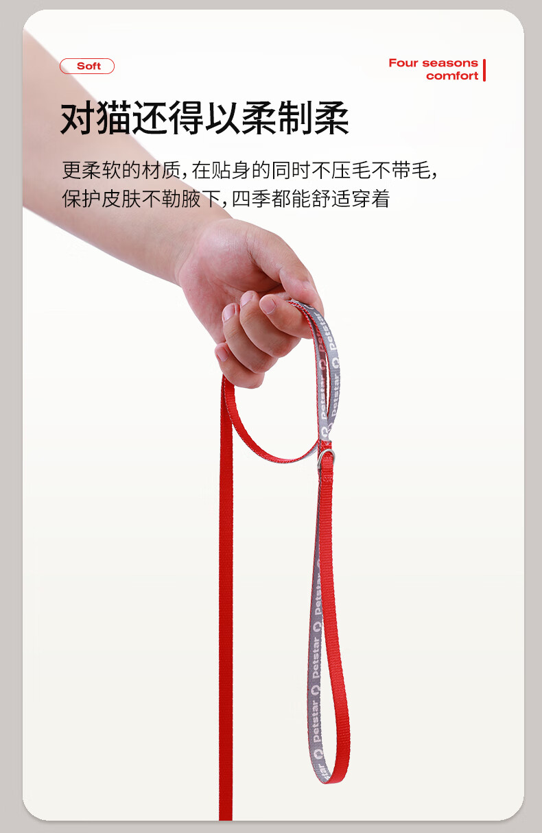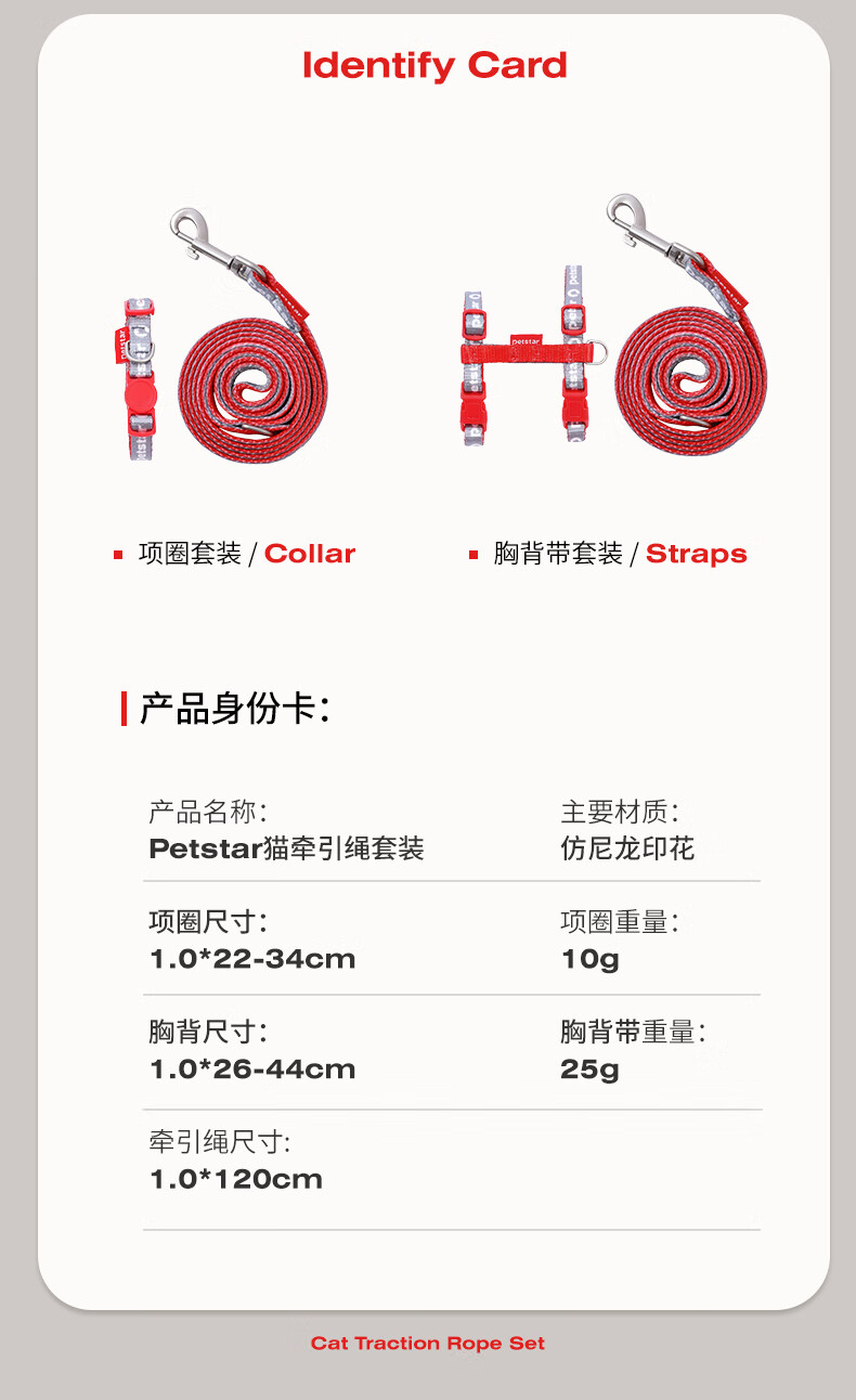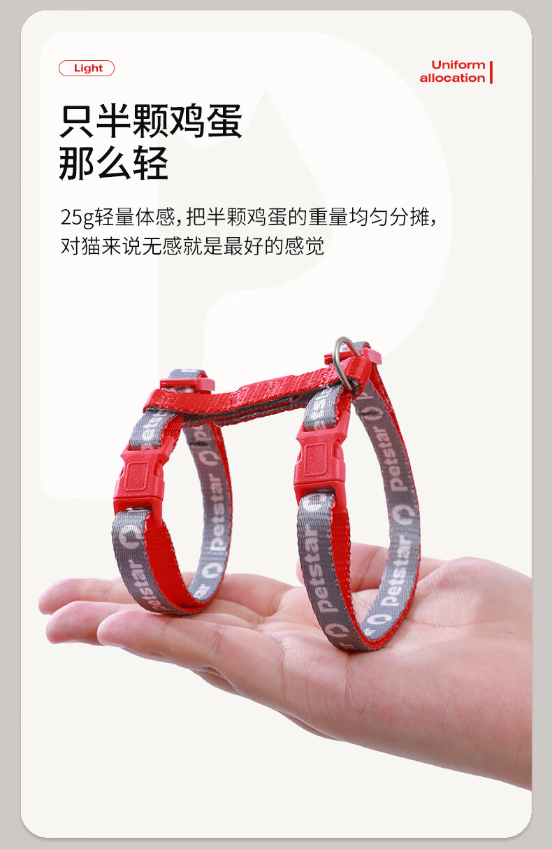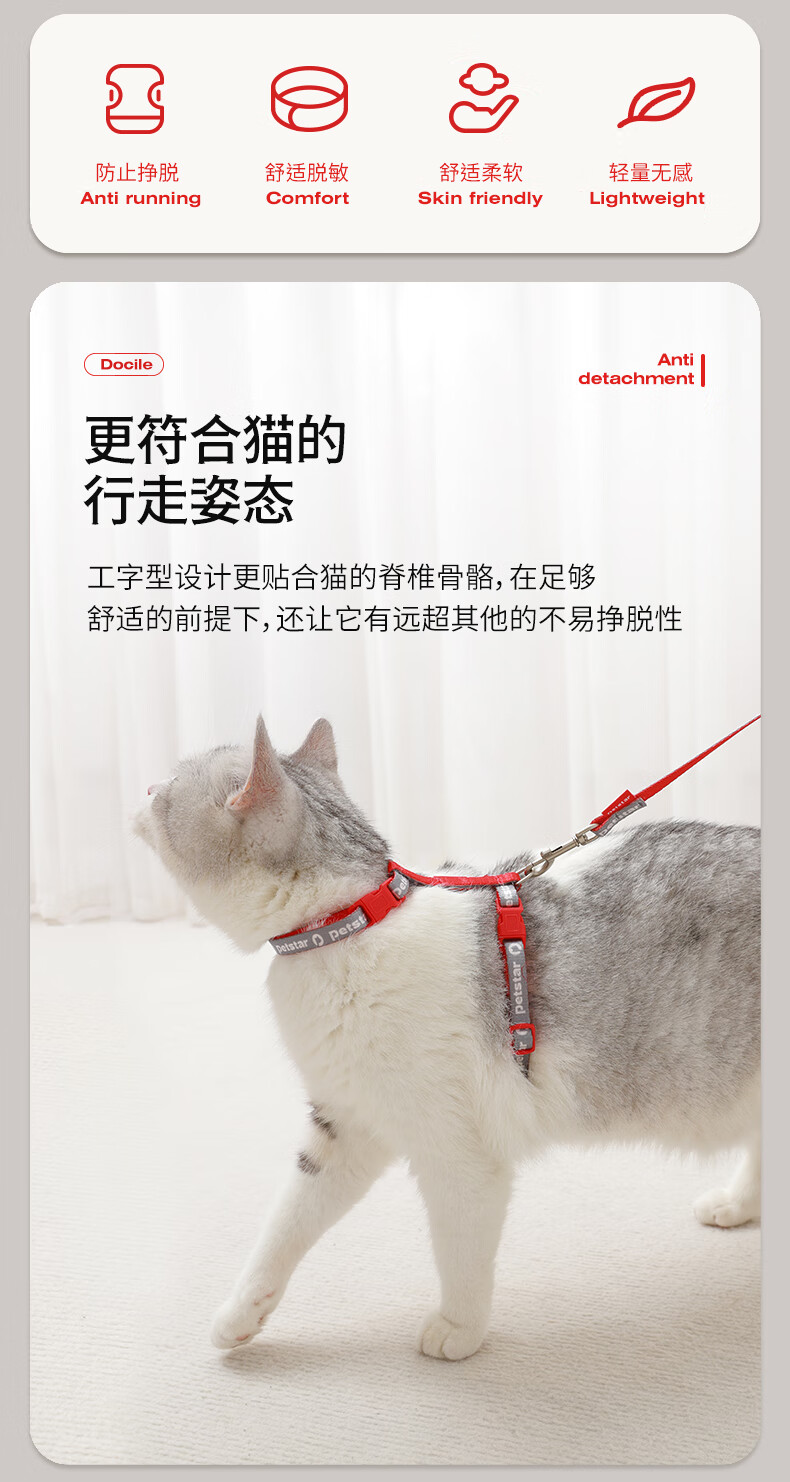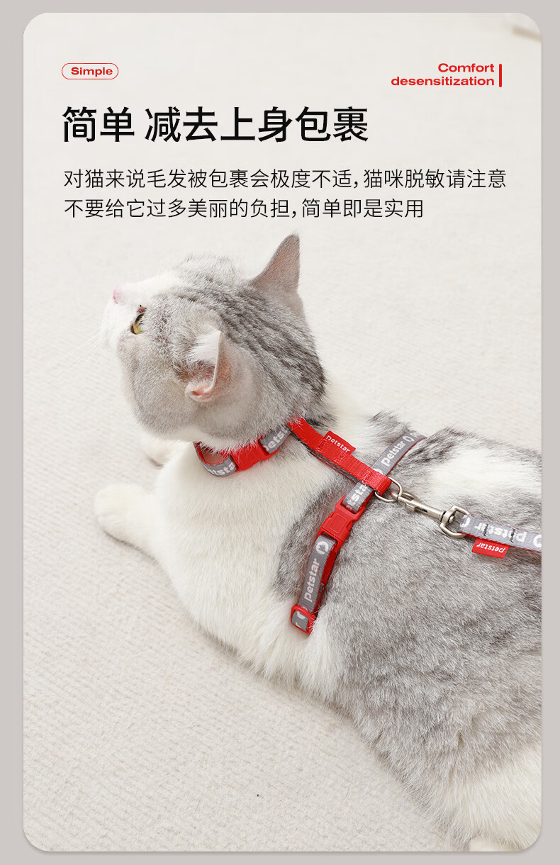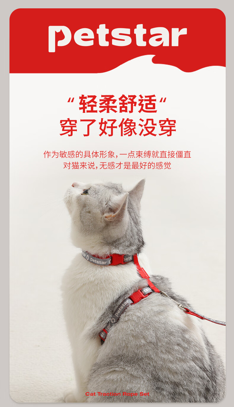 PETSTAR猫咪牵引绳 工字背心胸背带防挣脱外出可调节遛猫绳子