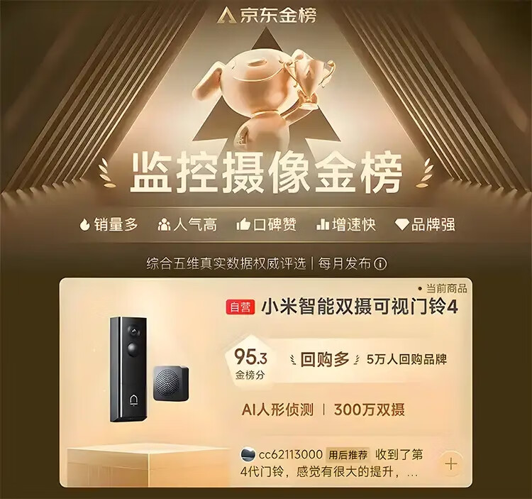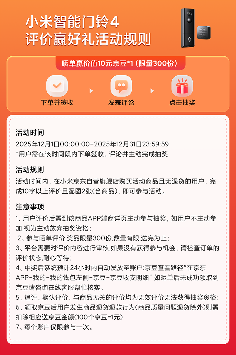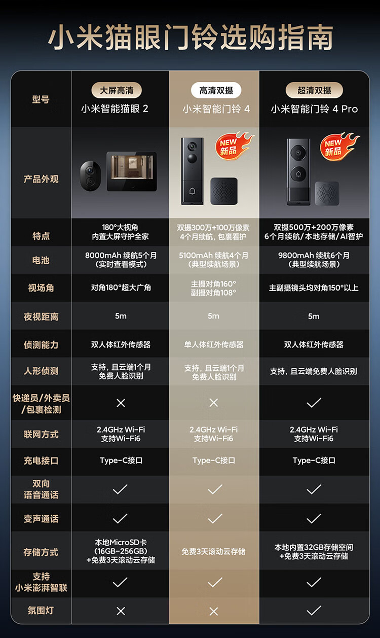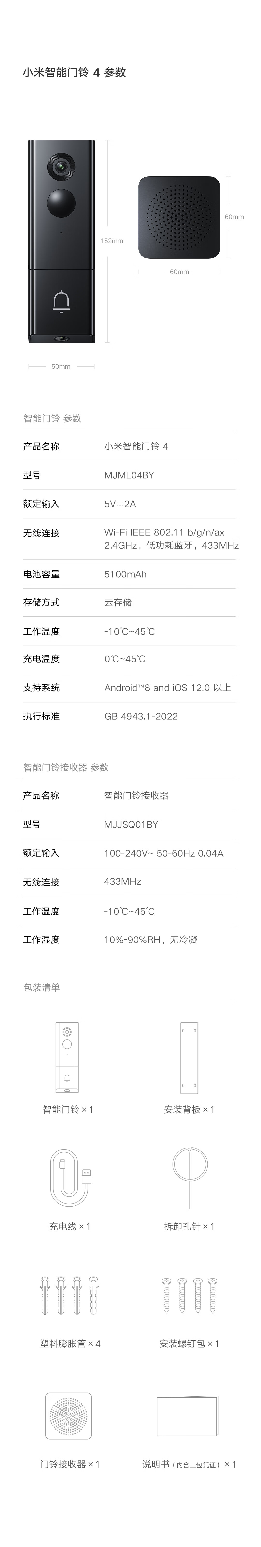 小米智能门铃4监控家用可视门铃猫眼监控摄像头300万+100万高清双摄远程监控夜视对讲监控门口入户门