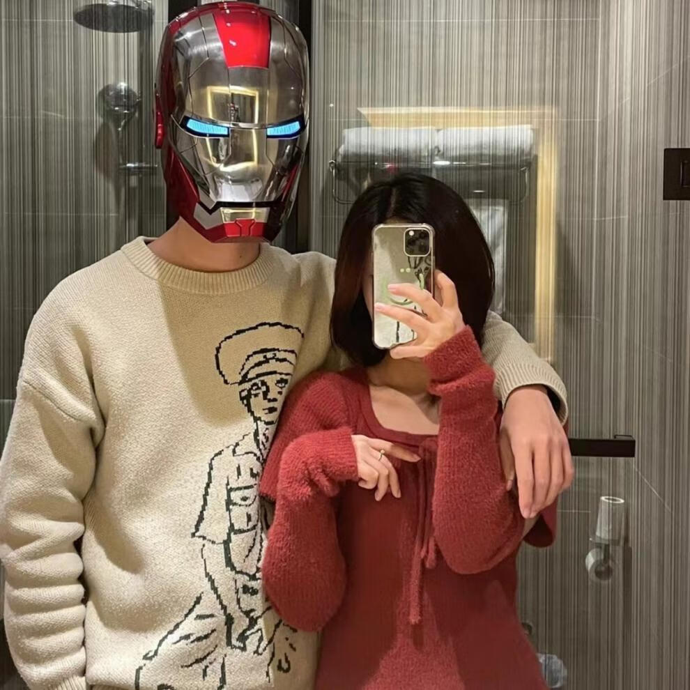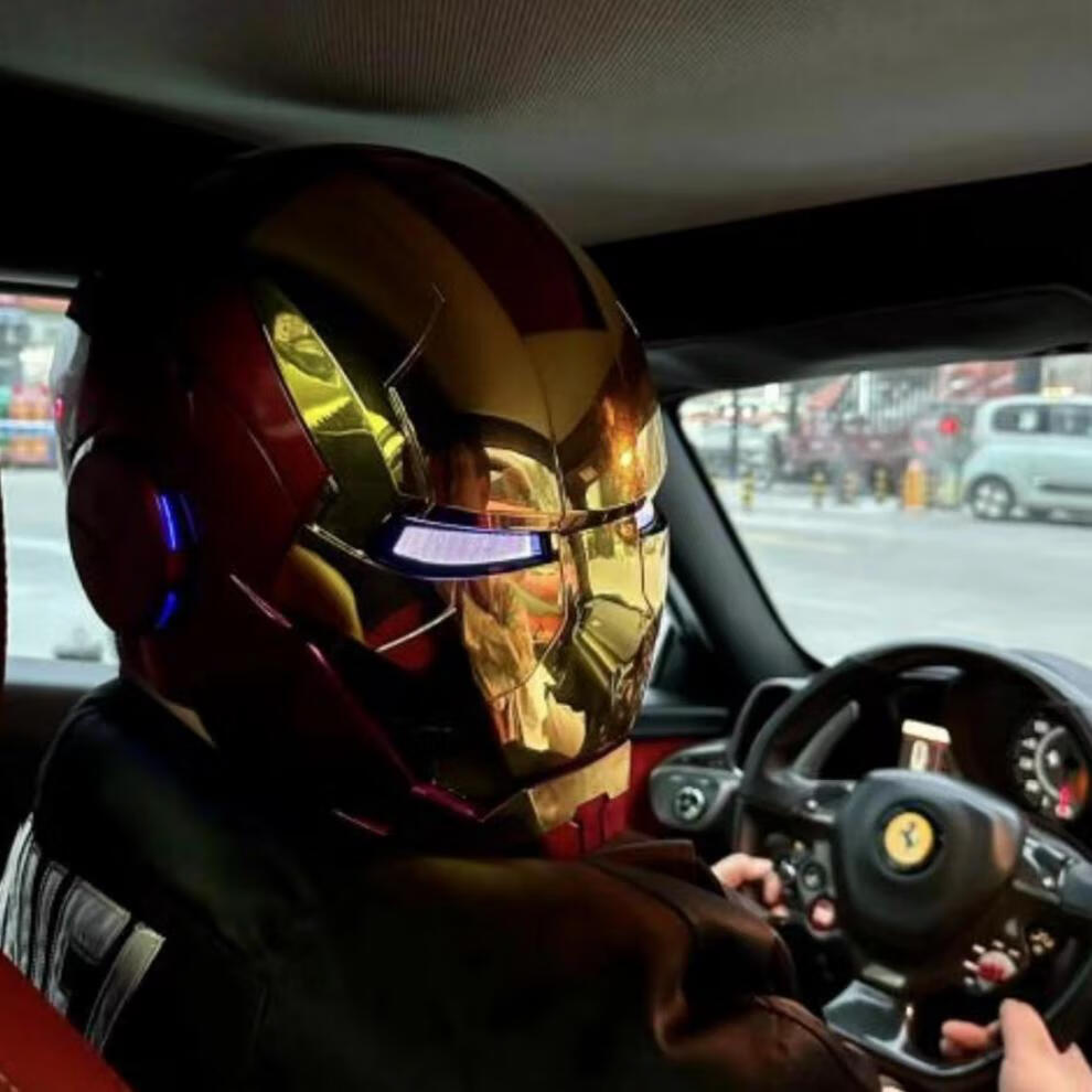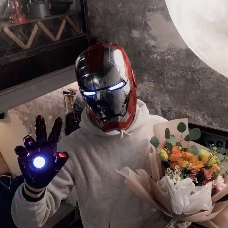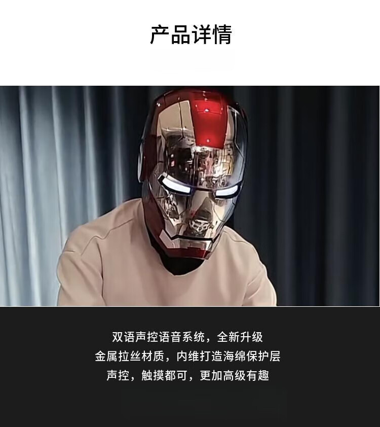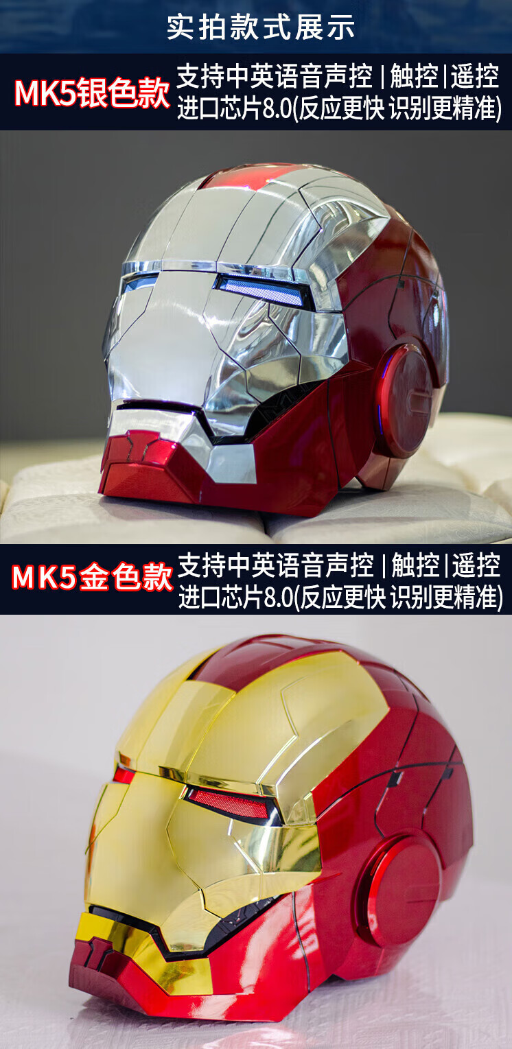 博纳思钢铁侠MK5中英文声控加触摸头盔儿童男朋友礼物潮玩人物模型 中英文语音钢铁侠MK5头盔 金色 金属拉丝 彩盒包装