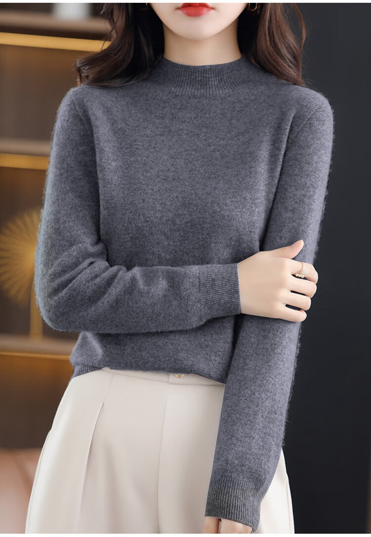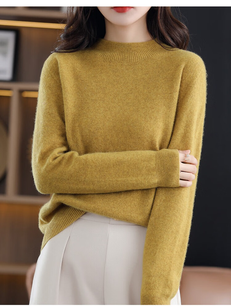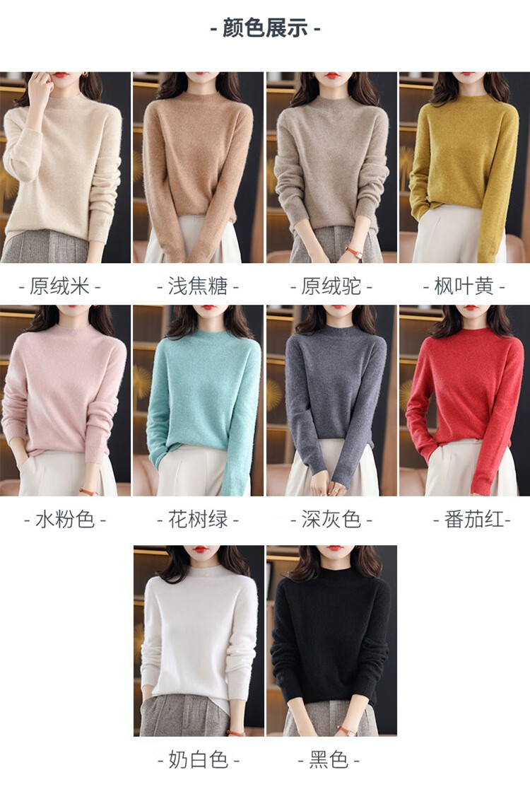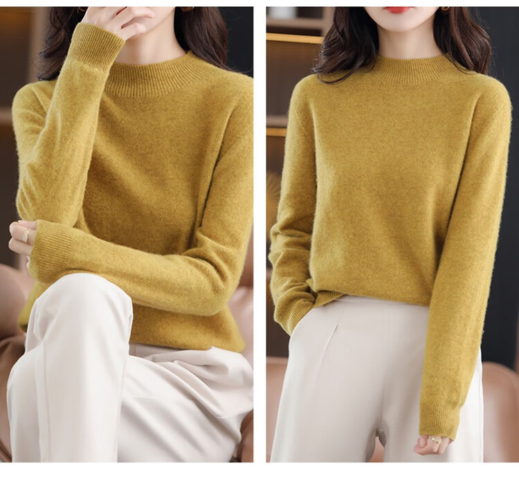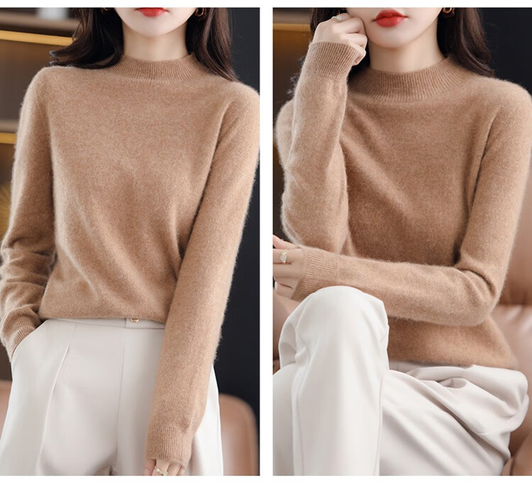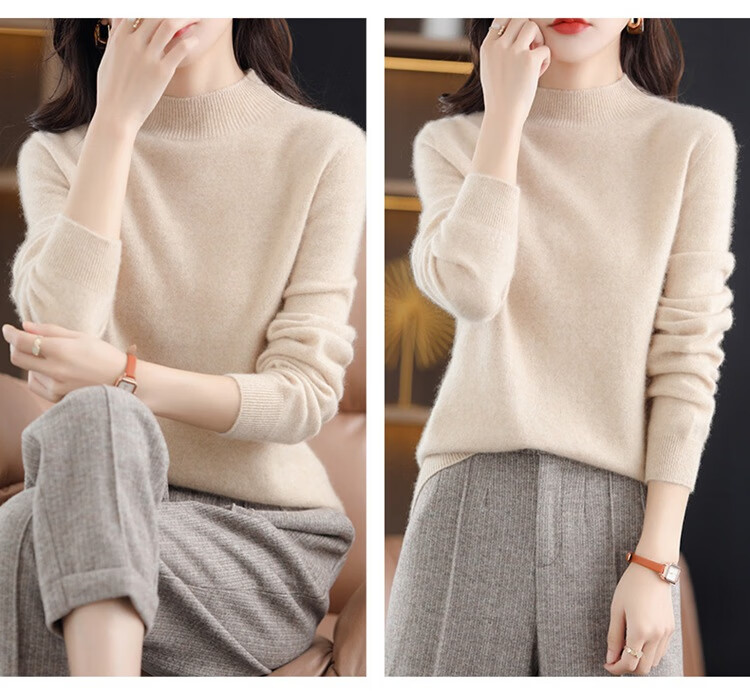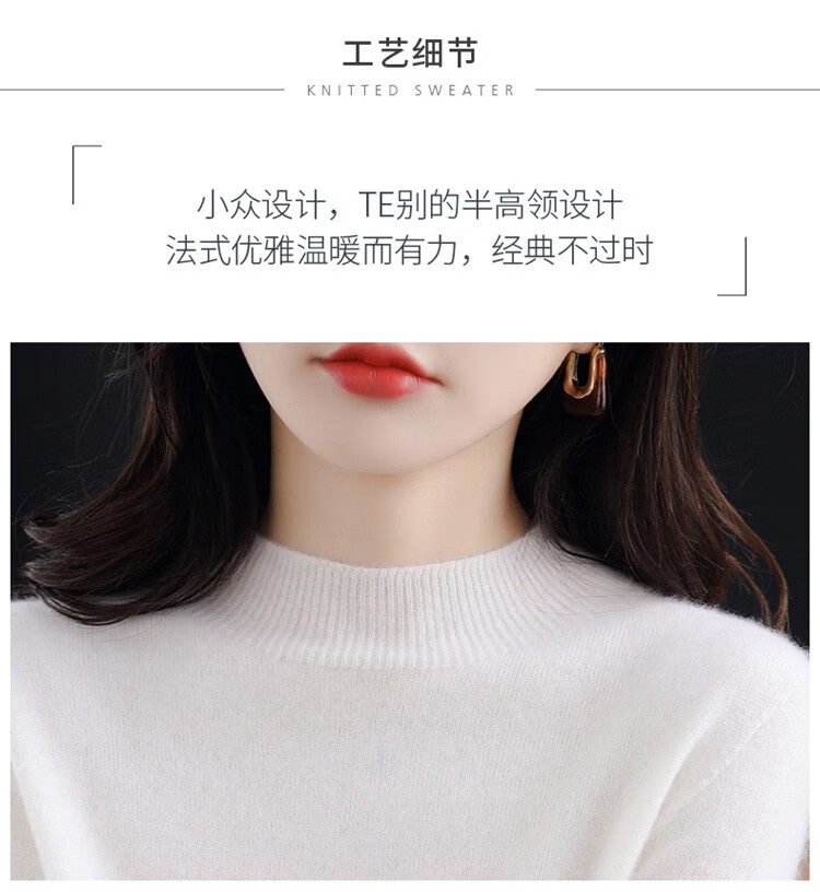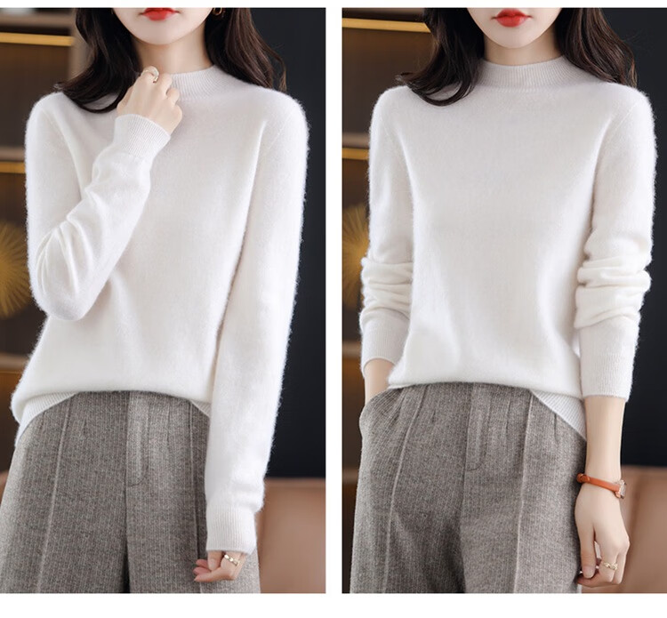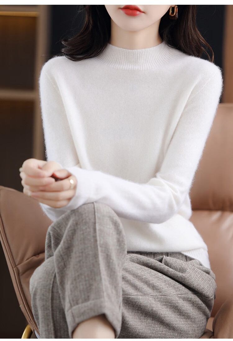 润施【支持检测纯羊毛衫女半高领打底衫宽松针织衫内搭秋冬套头毛衣 奶白色 2XL