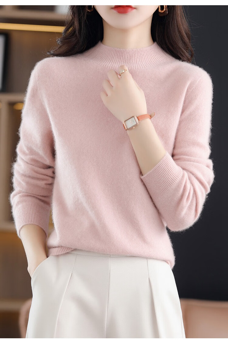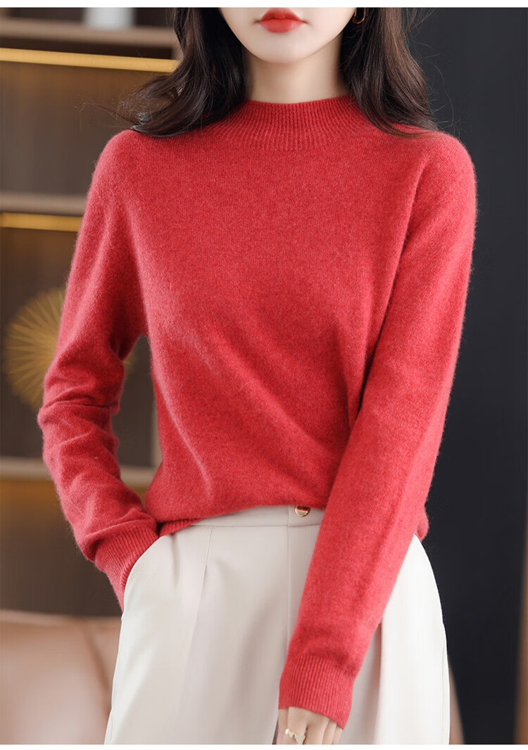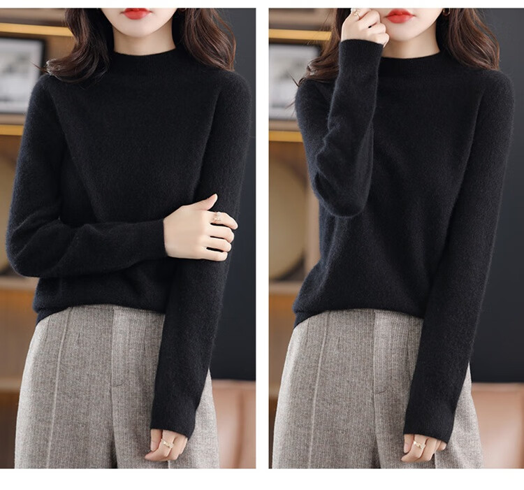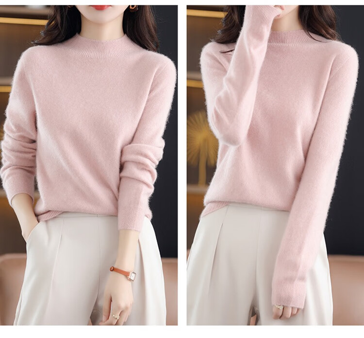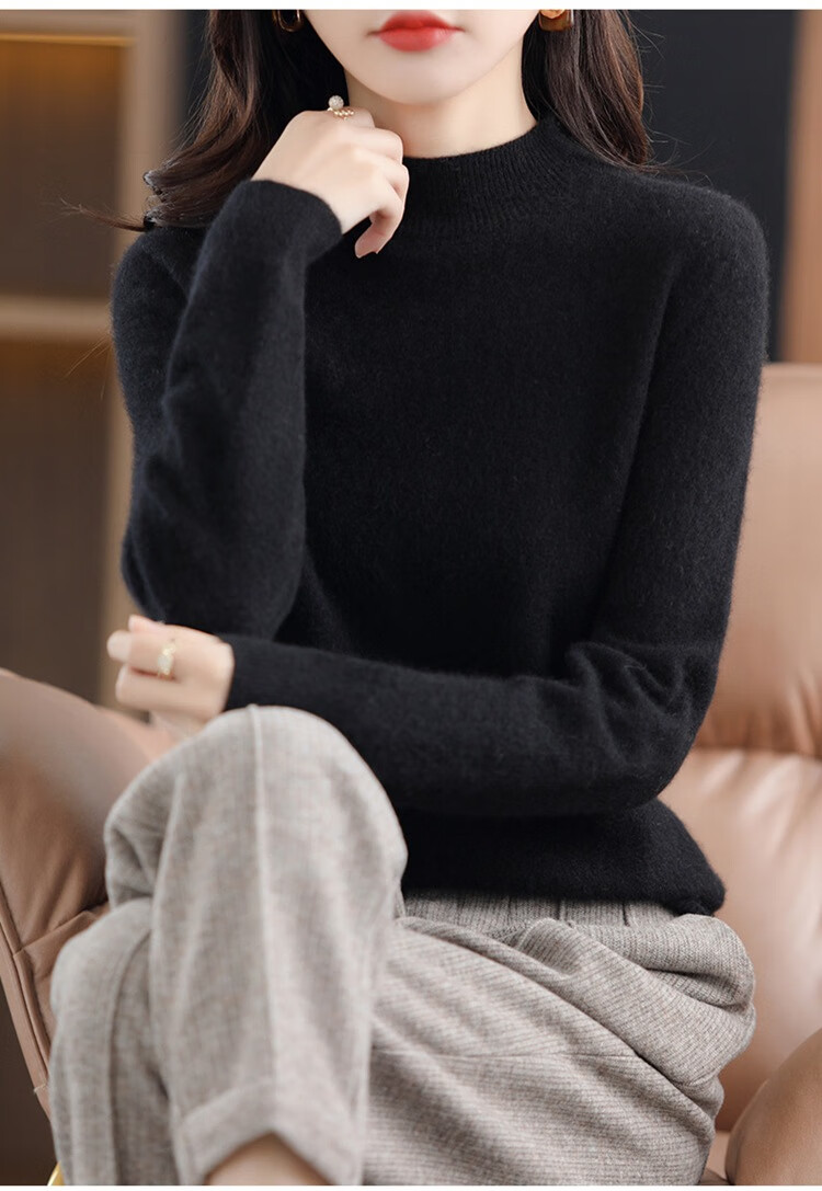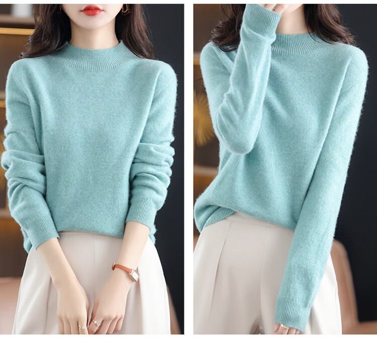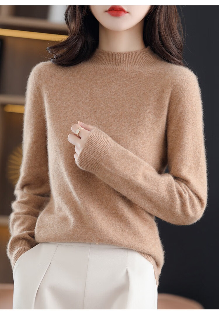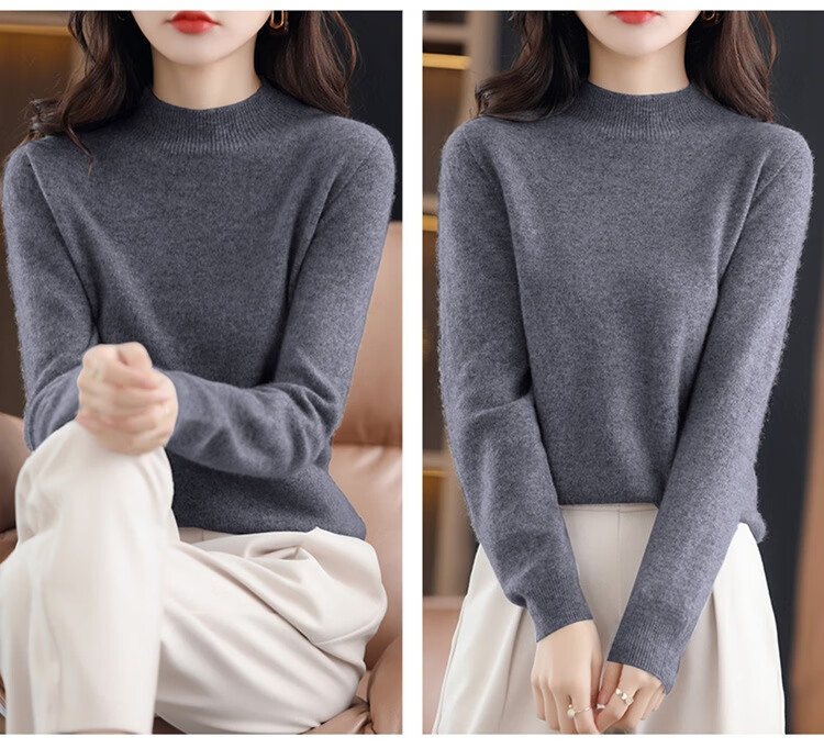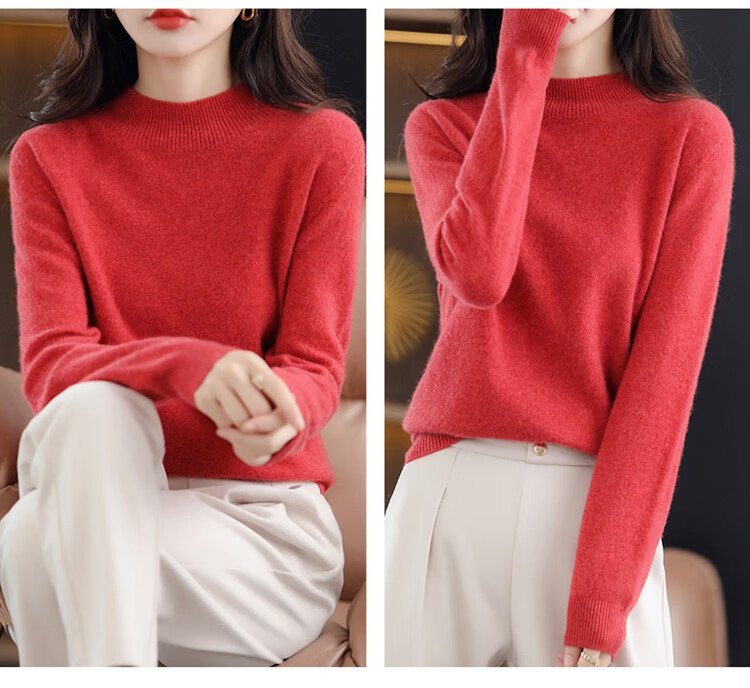 润施【支持检测纯羊毛衫女半高领打底衫宽松针织衫内搭秋冬套头毛衣 奶白色 2XL