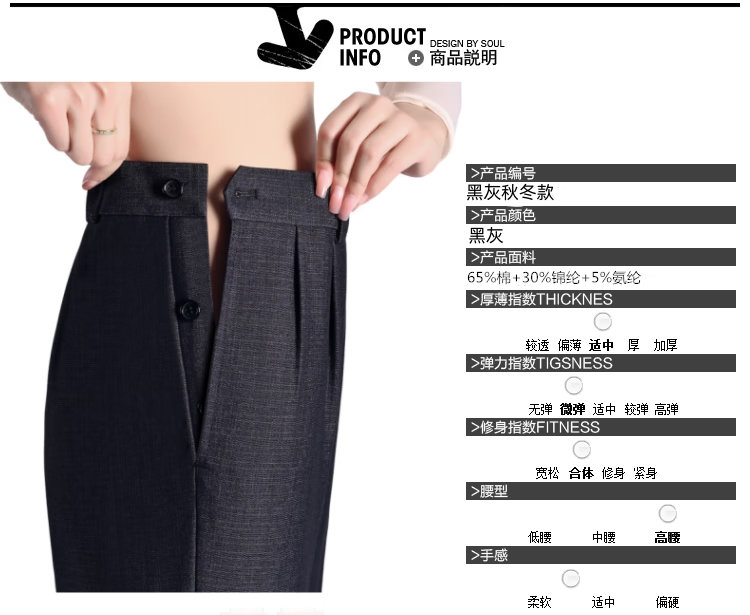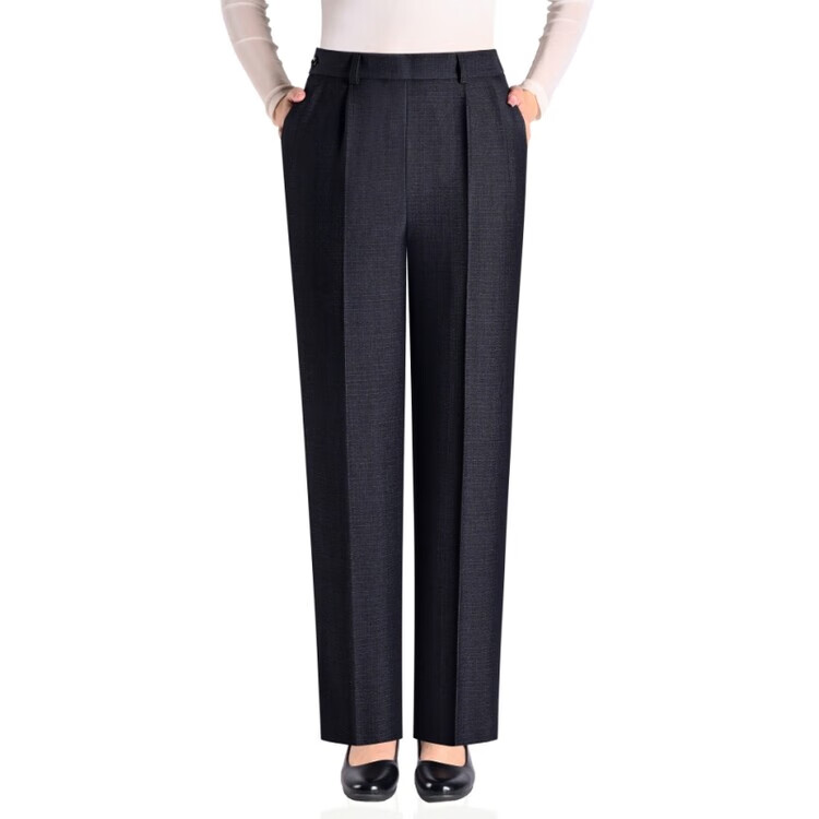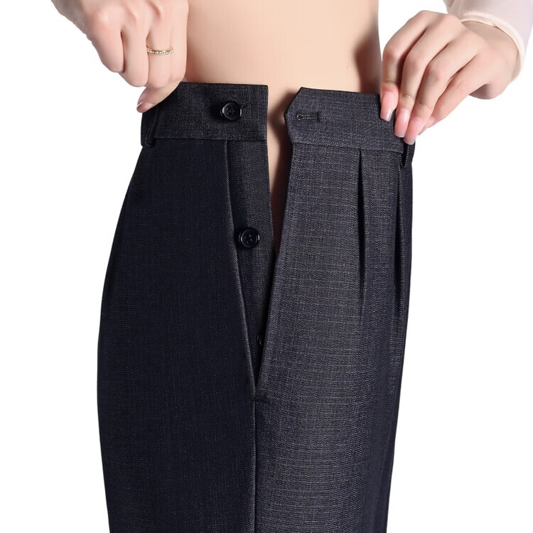 伊玟格格春秋新款旁开扣中老年侧开口大码女装妈妈裤子女西裤老年女裤高腰 深灰色 黑灰秋冬款旁开扣 5XL 2尺9腰围35码(155斤以下穿)