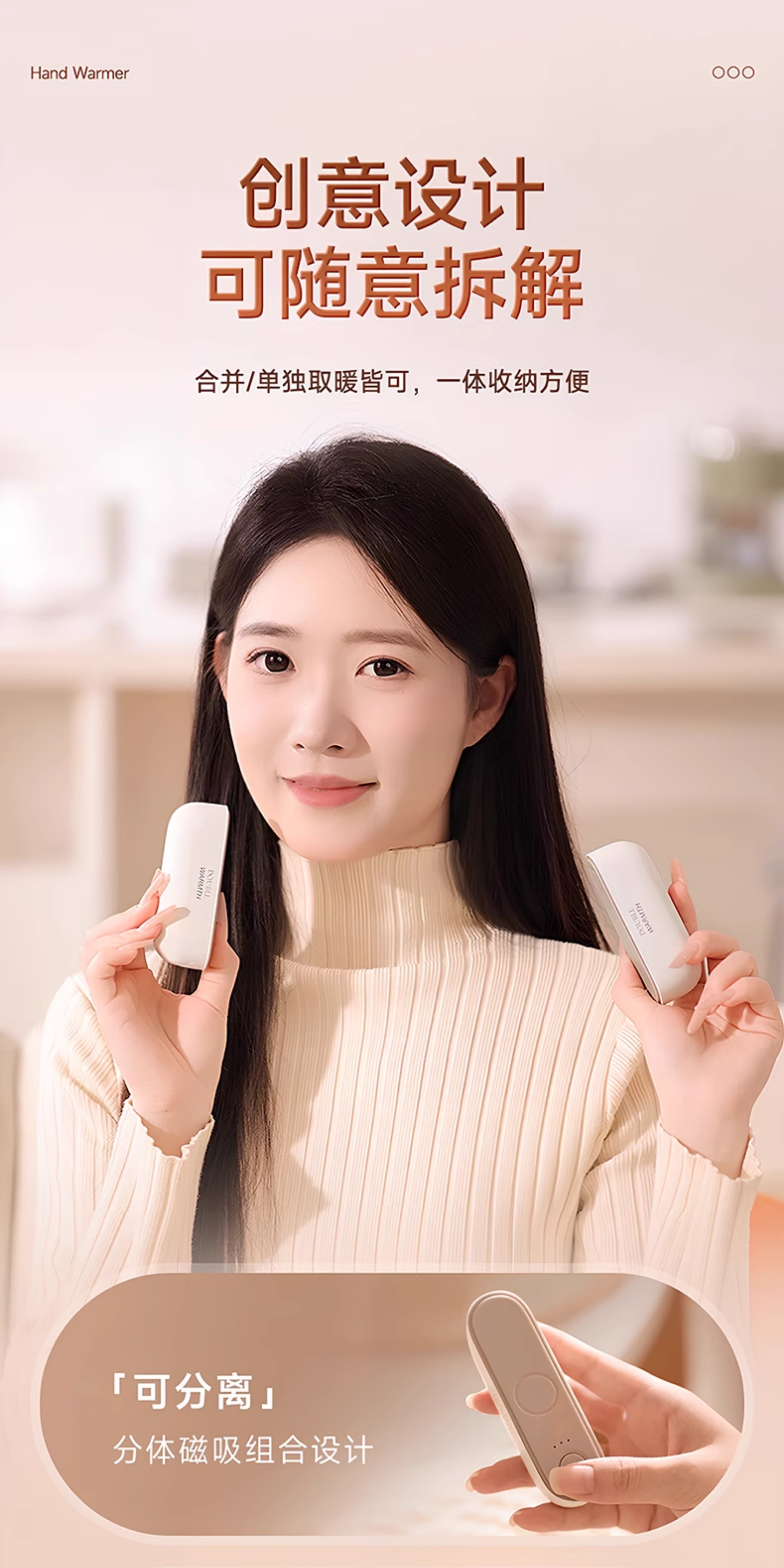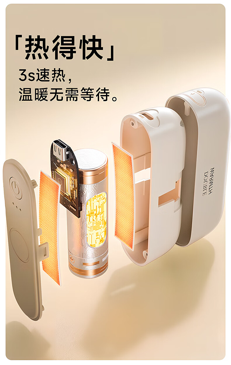 JCZS暖手宝手握分体充电式安全女生暖宝宝三档调节姨妈神器迷你便携秒发热长续航热敷礼物可爱 温润 迷雾粉 【CZS德国进口】