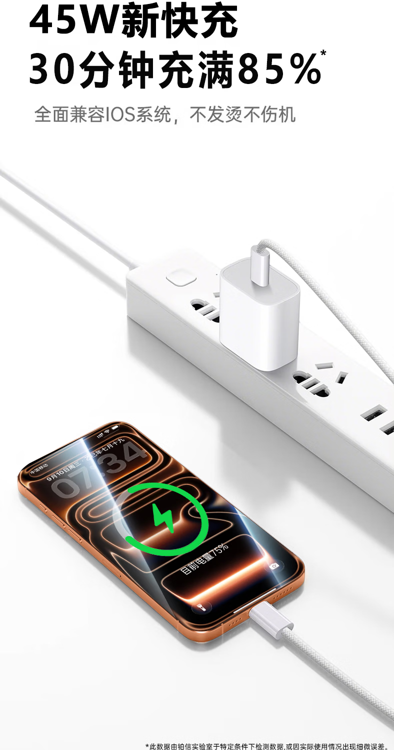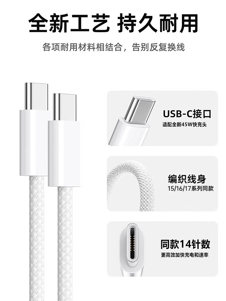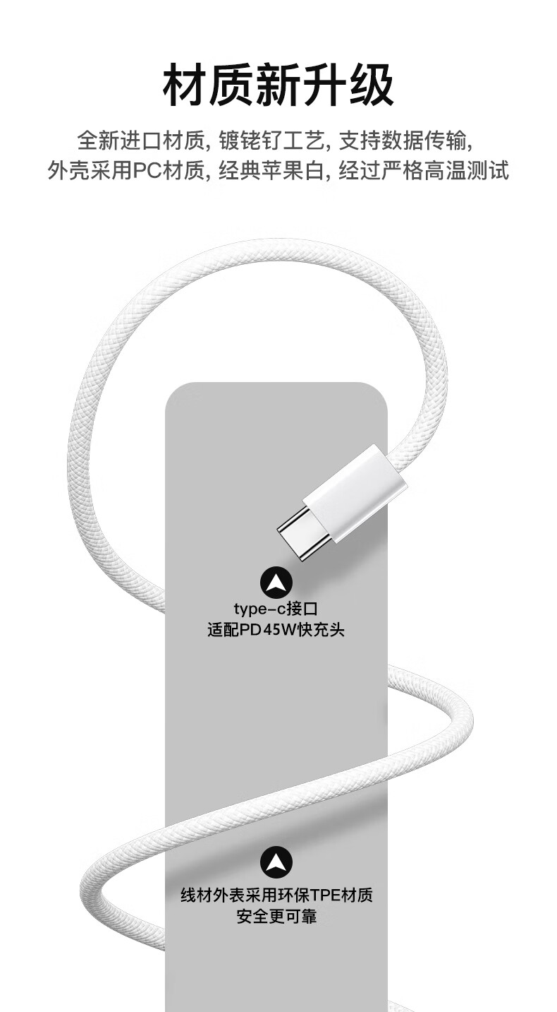 冠杆苹果充电线 数据线 编织线 Type-C快充线 apple PD45W/60W/30Wiphone 充电器可配【多款可选】 【正品PD快充】灰色-苹果8-14充电线 1.5m