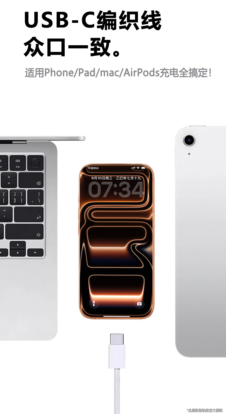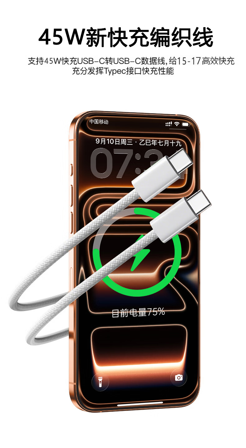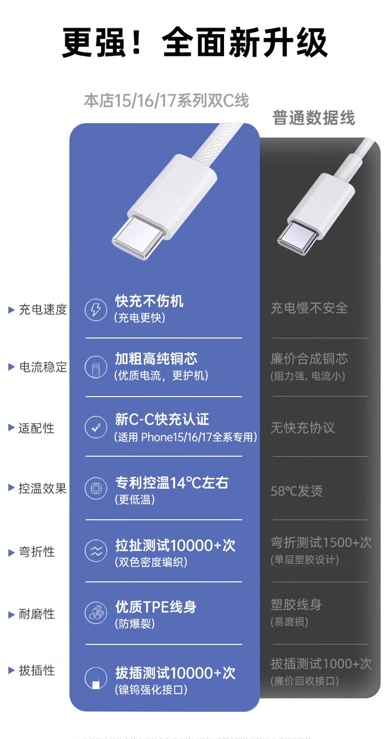 冠杆苹果充电线 数据线 编织线 Type-C快充线 apple PD45W/60W/30Wiphone 充电器可配【多款可选】 【正品PD快充】灰色-苹果8-14充电线 1.5m