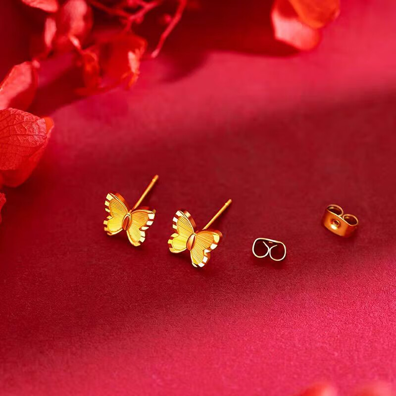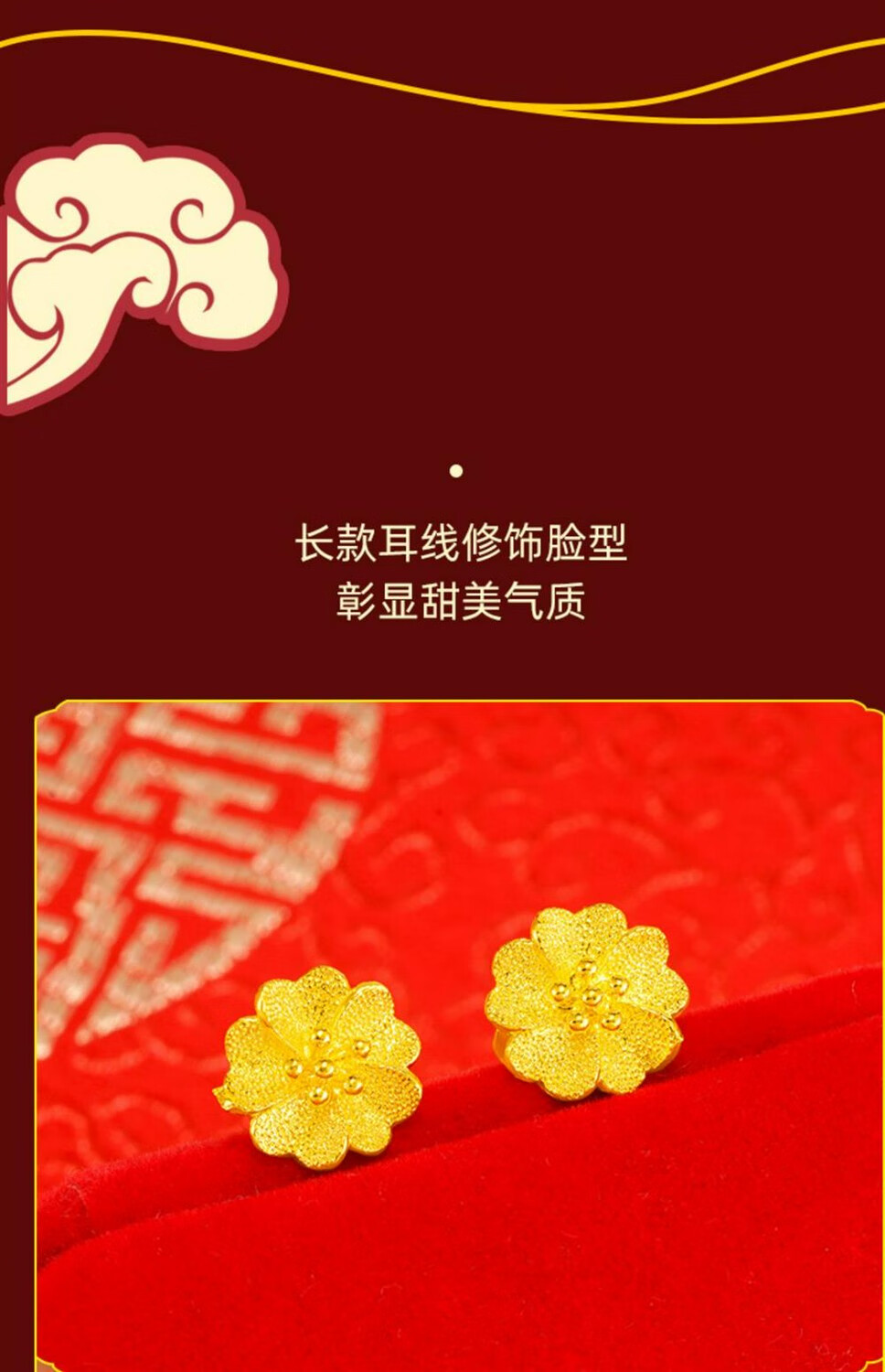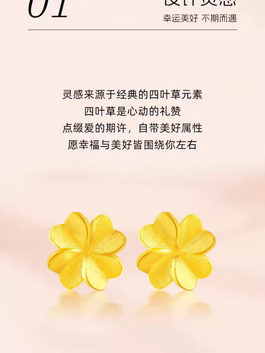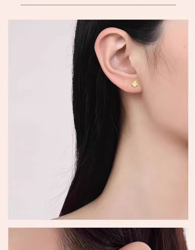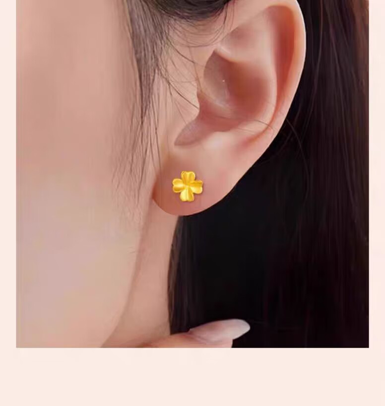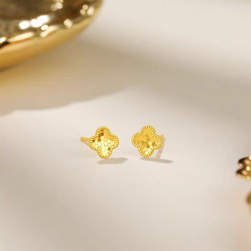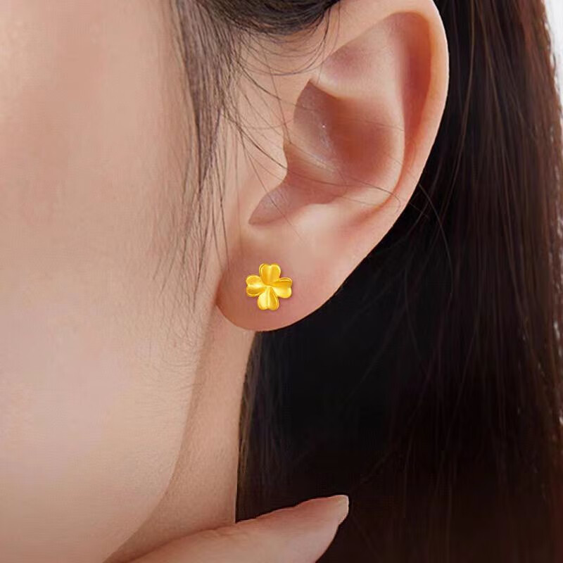 夕迎正七夕新款黄金色双c耳钉耳环18k彩金耳饰四叶草耳环送女朋友 双c直针耳钉 S