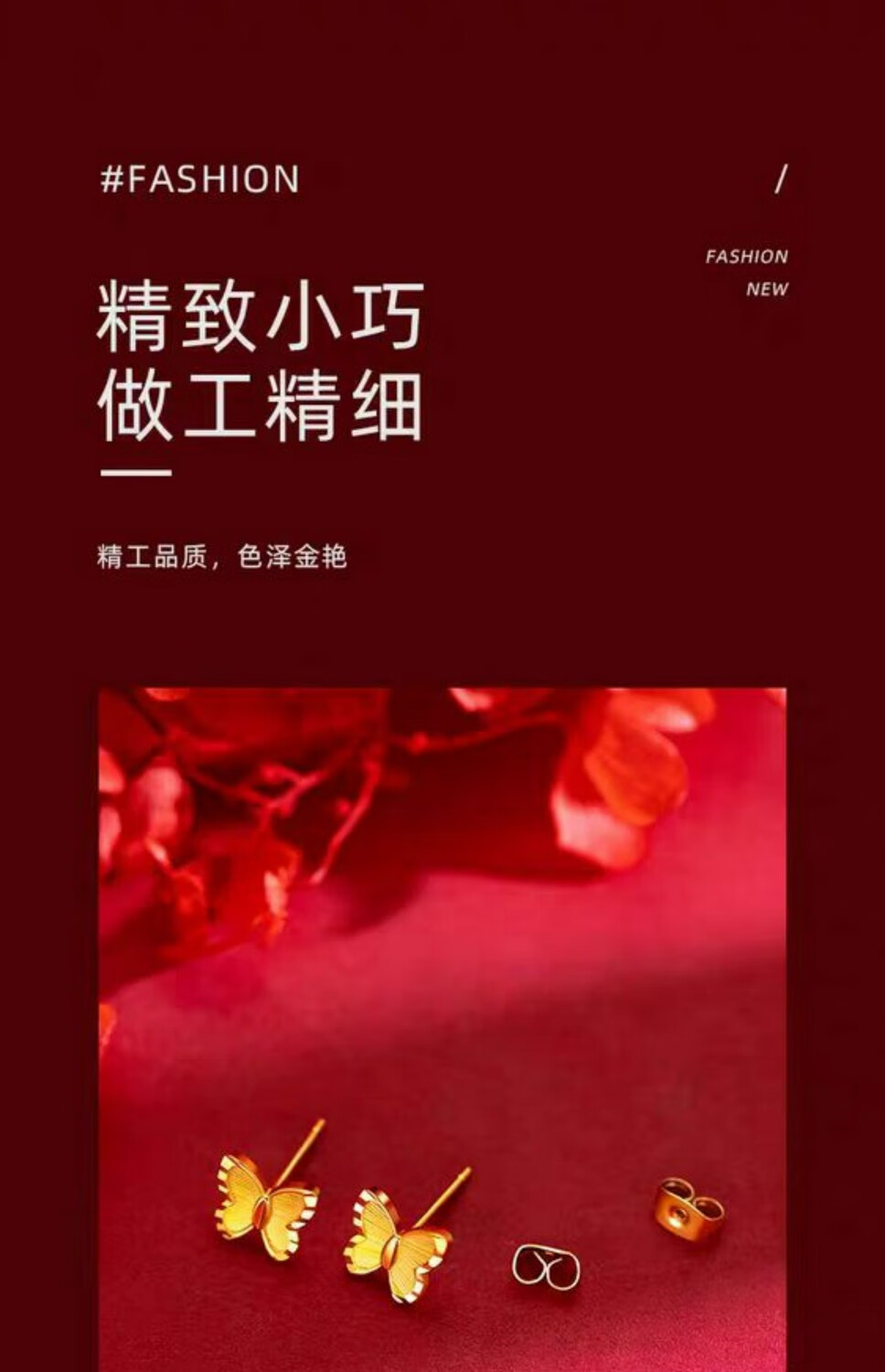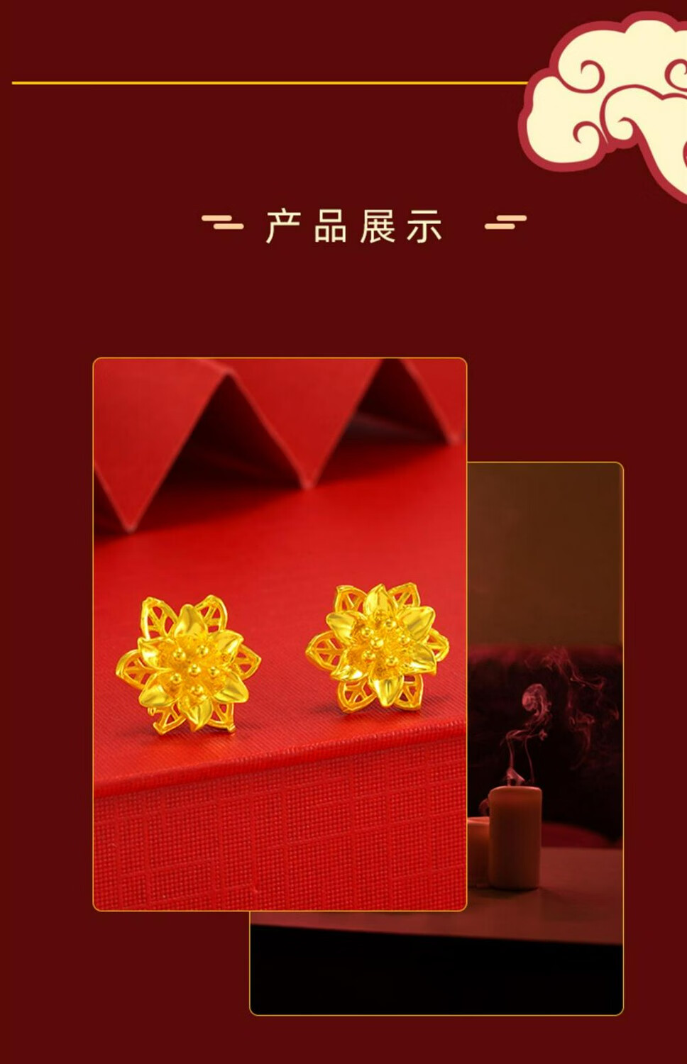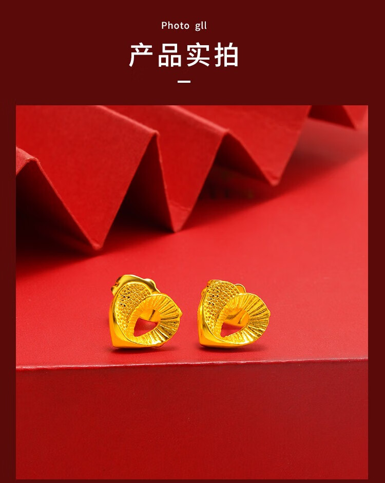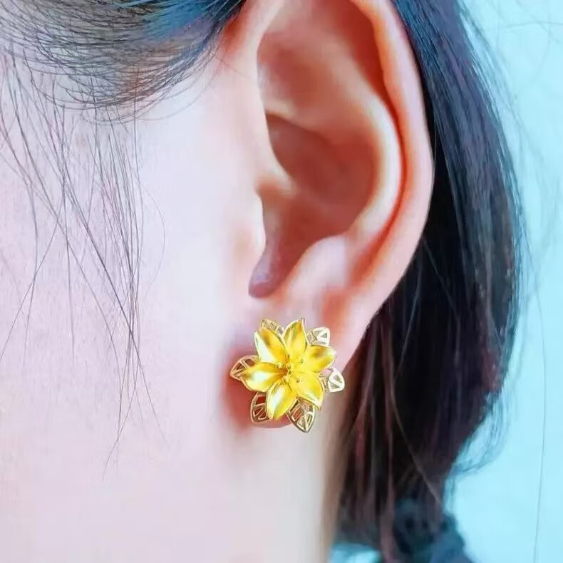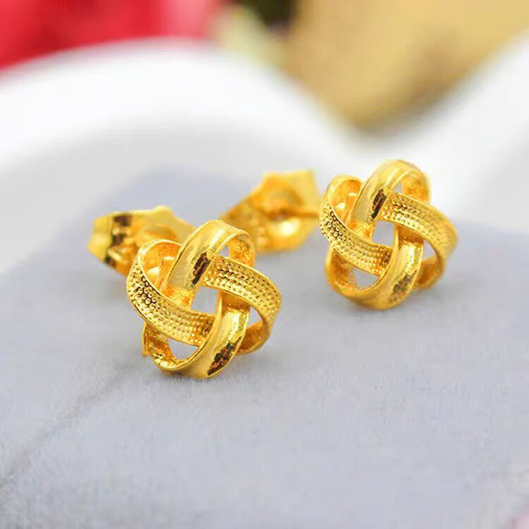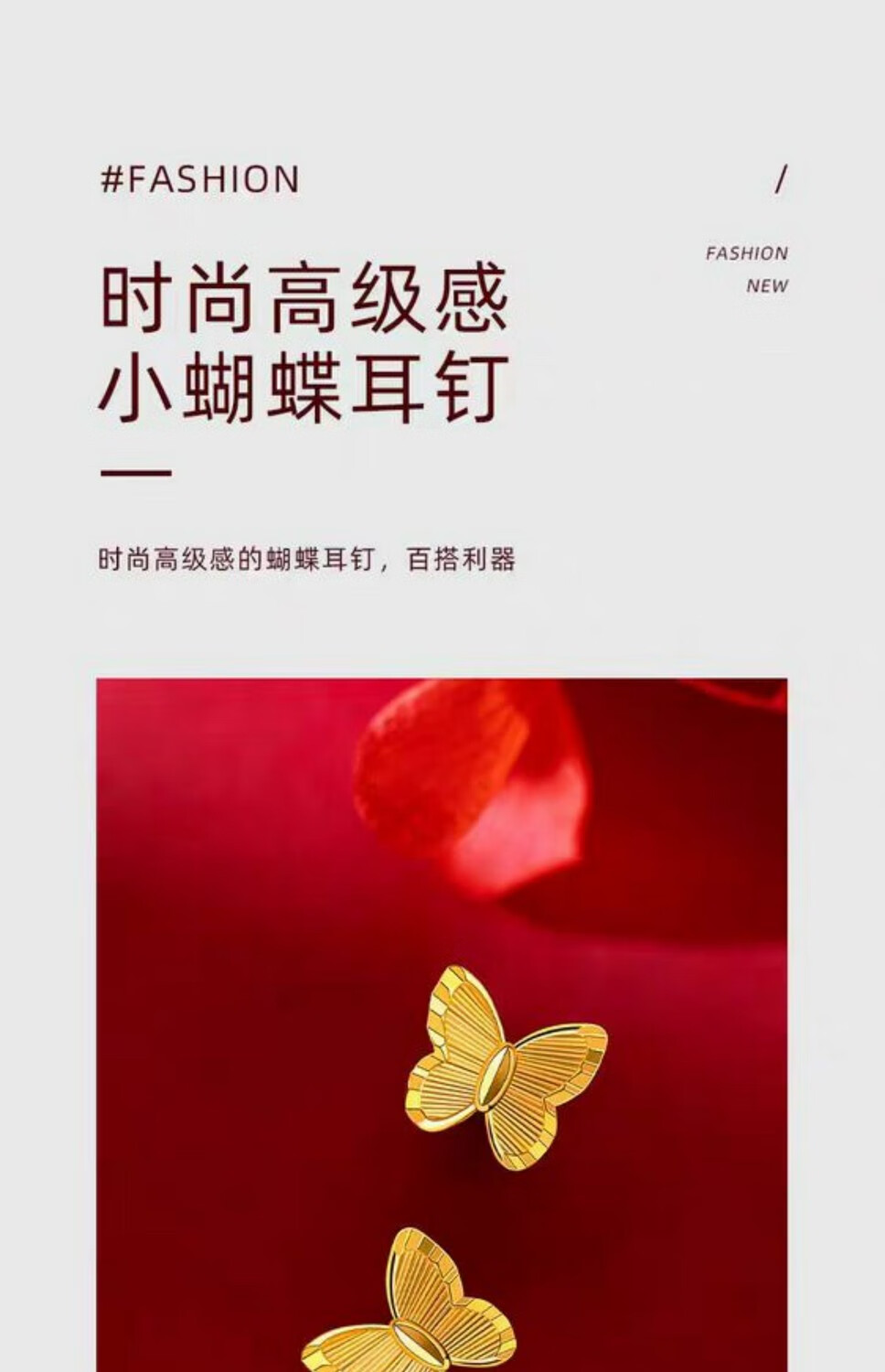 夕迎正七夕新款黄金色双c耳钉耳环18k彩金耳饰四叶草耳环送女朋友 双c直针耳钉 S