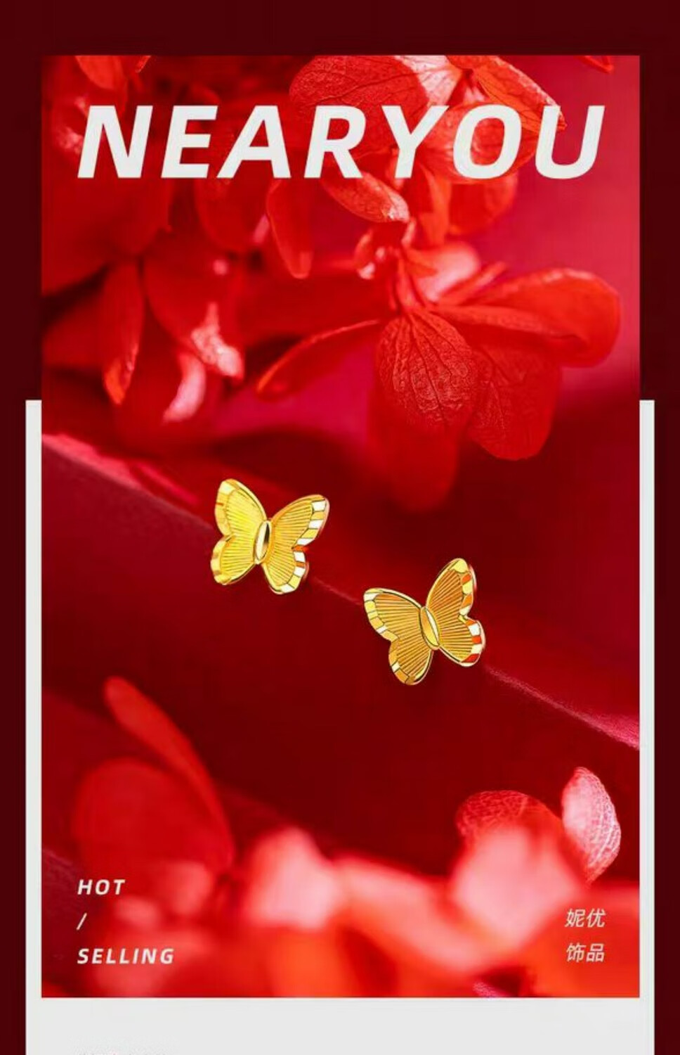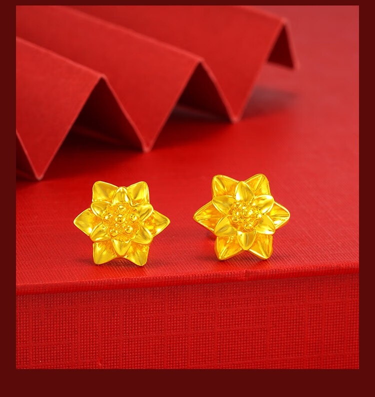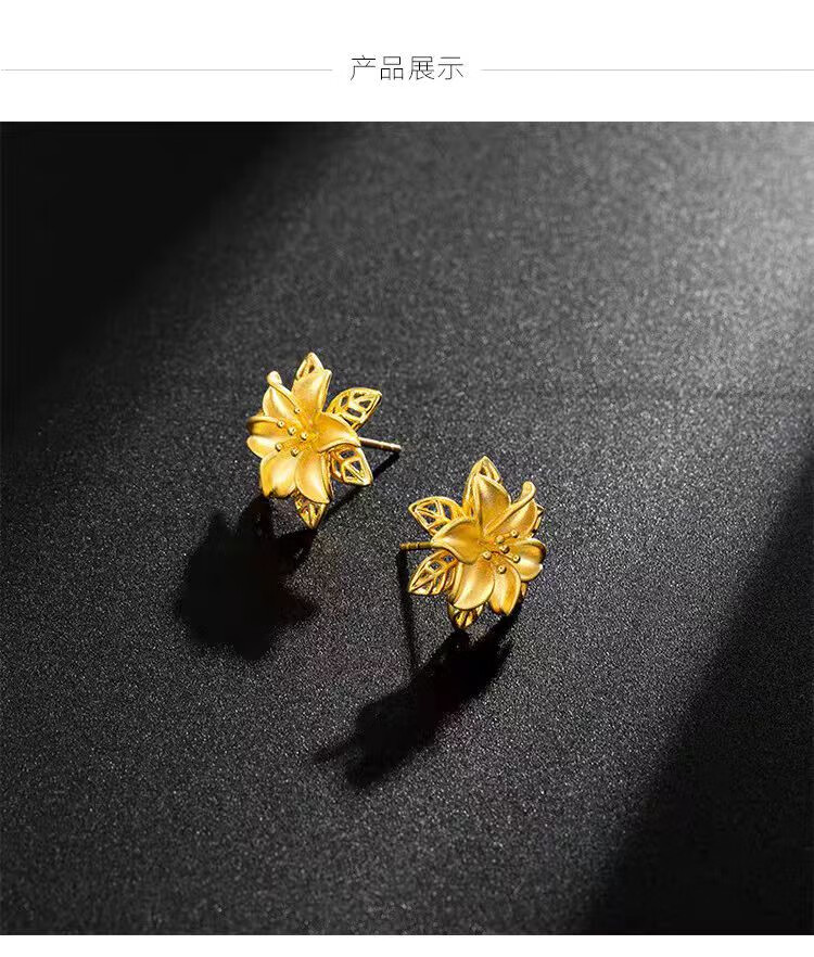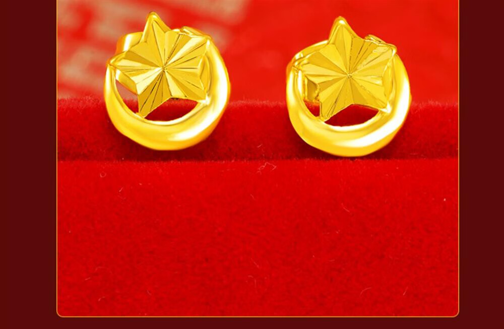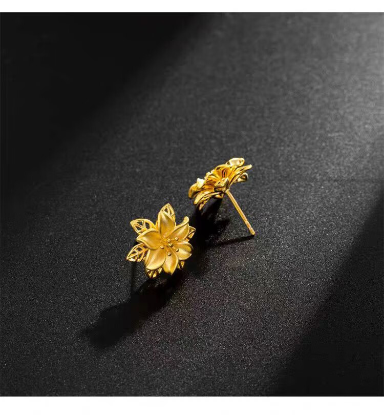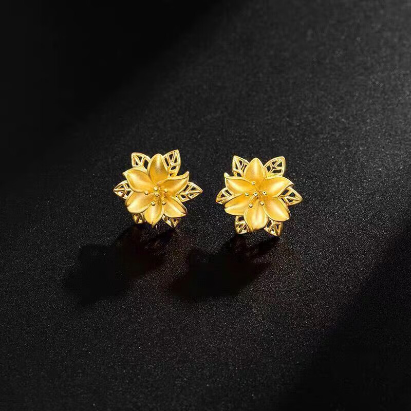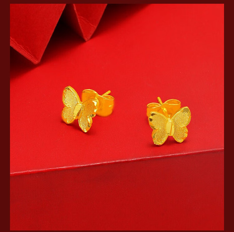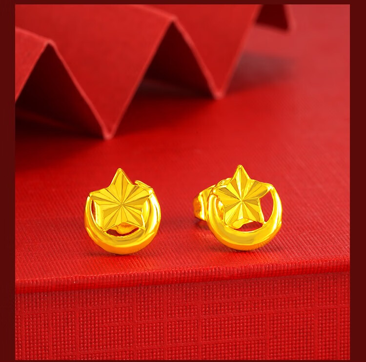 夕迎正七夕新款黄金色双c耳钉耳环18k彩金耳饰四叶草耳环送女朋友 双c直针耳钉 S